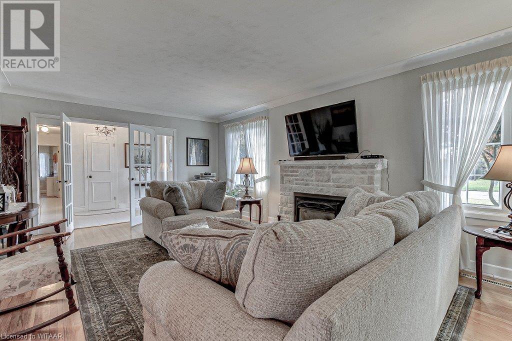 Welcome to 38 Golfdale Road. This beautiful property is located in the most sought-after area of Brantford. This area is well established and is adjacent to the prestigious Brantford Golf and Country Club. The curb appeal of this property is second to none. When you drive up to the property, the first thing to catch your eye is this very cute bungalow with amazing landscaping. Pride of ownership is very evident. The property is fully landscaped, with stunning gardens everywhere you look. The backyard is very tranquil with lots of flowers, a pergola and a fishpond for you and your family to relax and enjoy the outdoors. Inside, this 4 bedroom home has 3 bedrooms on the main floor and one on the lower level. The main floor has the original hardwood in the 3 bedrooms and the living room / dining room areas. Relax in front of one of the 2 gas fireplaces located in the living room and lower family room. This home is well maintained with many updates over the years. This is an amazing property and one you don't want to miss out on! (id:55009)