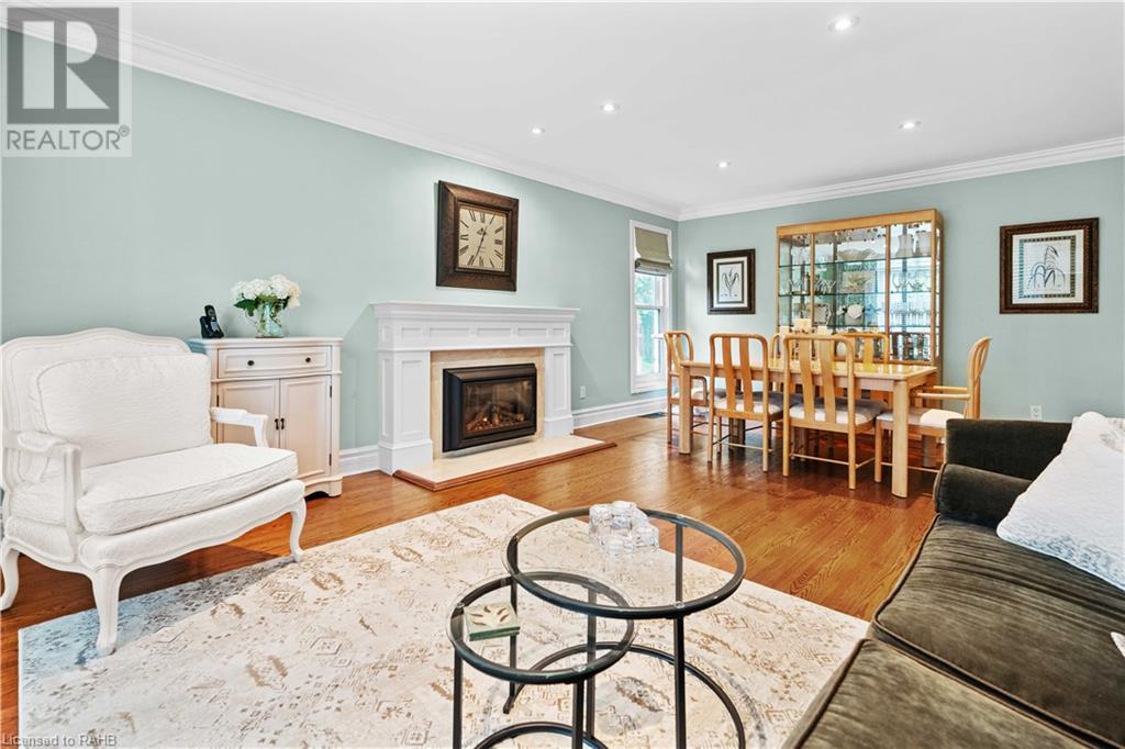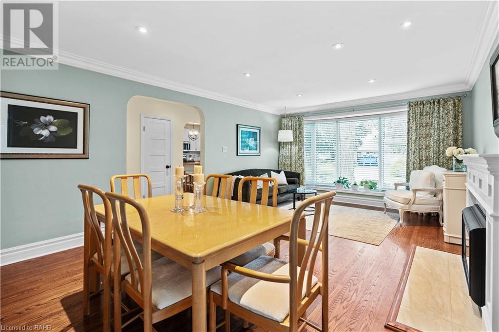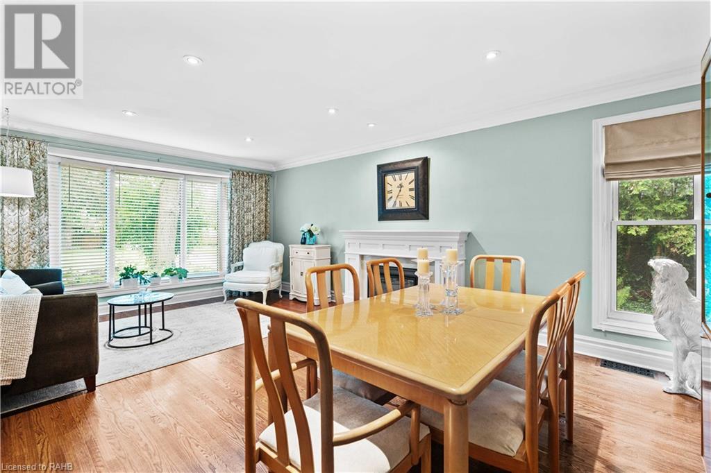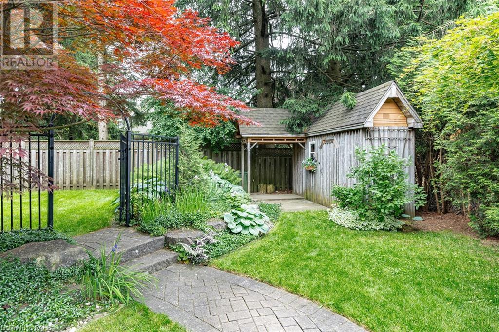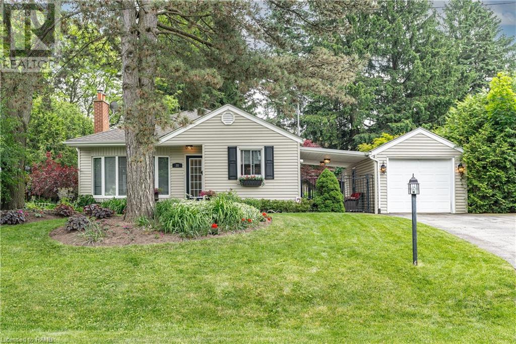 Nestled in Ancaster's prestigious Oakhill neighbourhood, this charming home sits on a stunning 80' x 100' mature lot with meticulously maintained grounds. Feat 3+1 bdrms & 2 baths, this residence offers ample space and is loaded w/ feat. The main lvl boasts beautiful hardwood flrs, an open-concept liv/din rm w/ a gas FP & crown moulding. The attractive kitch is equipped w/ white cab, S/S app, & granite. The primary bdrm feat built-in cab & sliding drs leading to the rear yard. The 2nd bdrm is adorned w/ a large bay window, while the 3rd bdrm provides generous space. The updated 4-pc bath incl a stylish glass shower. The f-fin lower lvl offers plush broadloom, a lrg rec rm, a 4th bdrm, & a 4-pc bath w/ jetted tub & corner shower. Add int feat incl large windows for abundant natural light, upgraded lighting fix, pot lighting, an alarm sys, & more. Outside, enjoy exceptionally manicured grounds w/ interlock walkways and patios, a rear storage shed, and lush foliage. Mechanical upd in '15 incl roof shing, furn, gas FP, & attic insulation. This prime location provides easy access to the Dundas Valley Conservation Area, parks, schools, the shops, restaurants, & amenities of Ancaster's village core, and major transportation routes. Plus, there's a single-car grg w/ a covered walkway to the side door and surfaced parking for multiple vehicles. (id:55009)