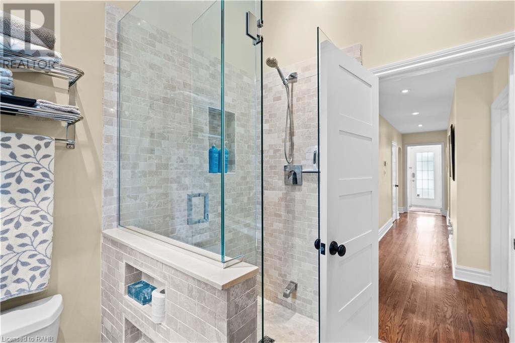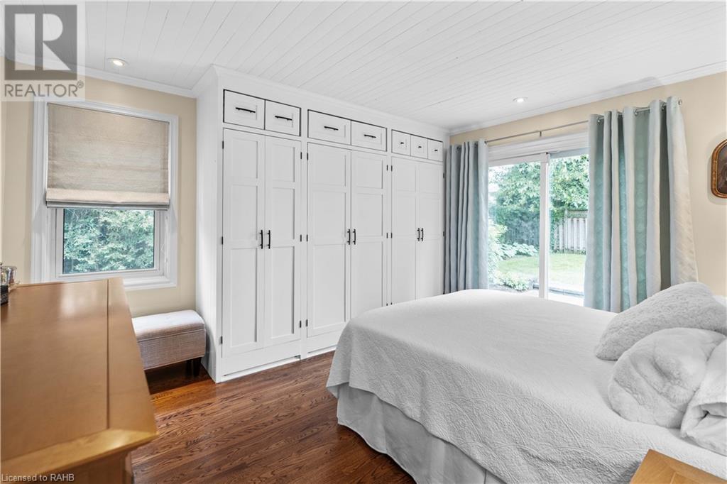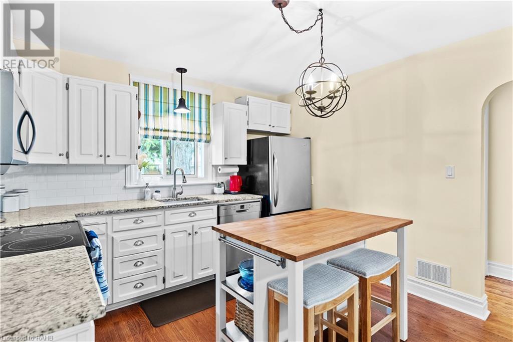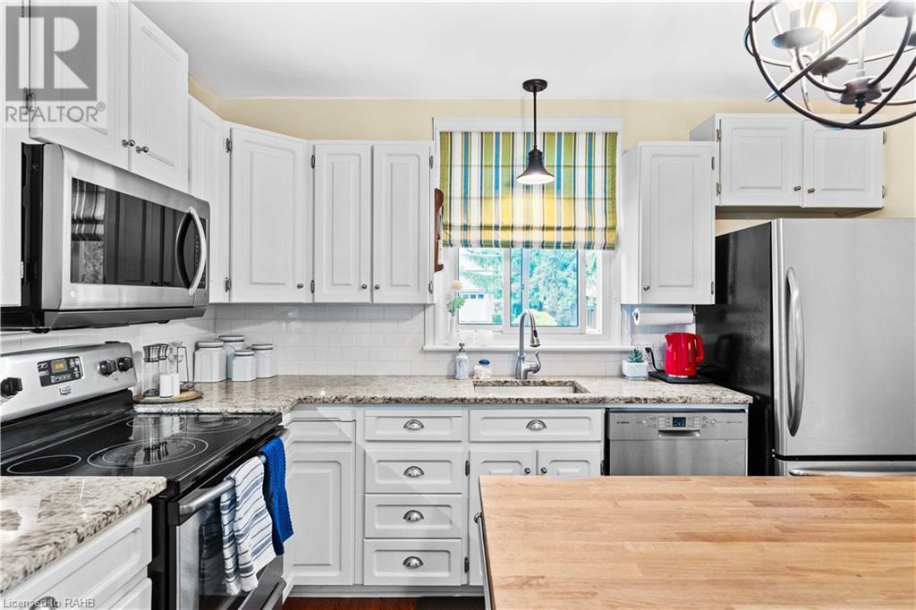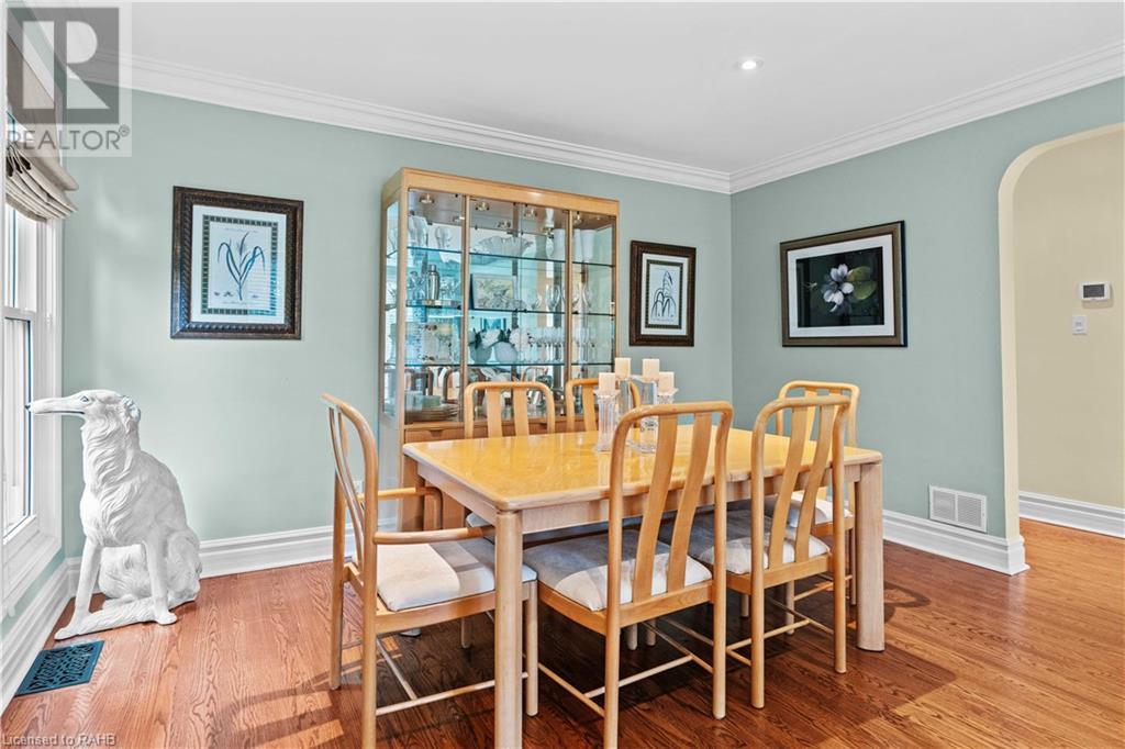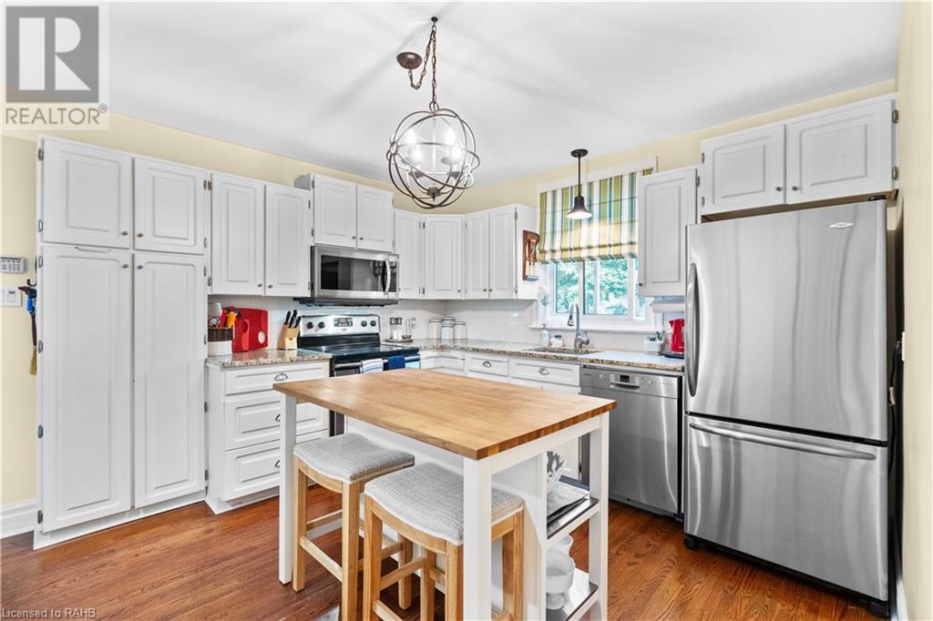 Nestled in Ancaster's prestigious Oakhill neighbourhood, this charming home sits on a stunning 80' x 100' mature lot with meticulously maintained grounds. Feat 3+1 bdrms & 2 baths, this residence offers ample space and is loaded w/ feat. The main lvl boasts beautiful hardwood flrs, an open-concept liv/din rm w/ a gas FP & crown moulding. The attractive kitch is equipped w/ white cab, S/S app, & granite. The primary bdrm feat built-in cab & sliding drs leading to the rear yard. The 2nd bdrm is adorned w/ a large bay window, while the 3rd bdrm provides generous space. The updated 4-pc bath incl a stylish glass shower. The f-fin lower lvl offers plush broadloom, a lrg rec rm, a 4th bdrm, & a 4-pc bath w/ jetted tub & corner shower. Add int feat incl large windows for abundant natural light, upgraded lighting fix, pot lighting, an alarm sys, & more. Outside, enjoy exceptionally manicured grounds w/ interlock walkways and patios, a rear storage shed, and lush foliage. Mechanical upd in '15 incl roof shing, furn, gas FP, & attic insulation. This prime location provides easy access to the Dundas Valley Conservation Area, parks, schools, the shops, restaurants, & amenities of Ancaster's village core, and major transportation routes. Plus, there's a single-car grg w/ a covered walkway to the side door and surfaced parking for multiple vehicles. (id:55009)