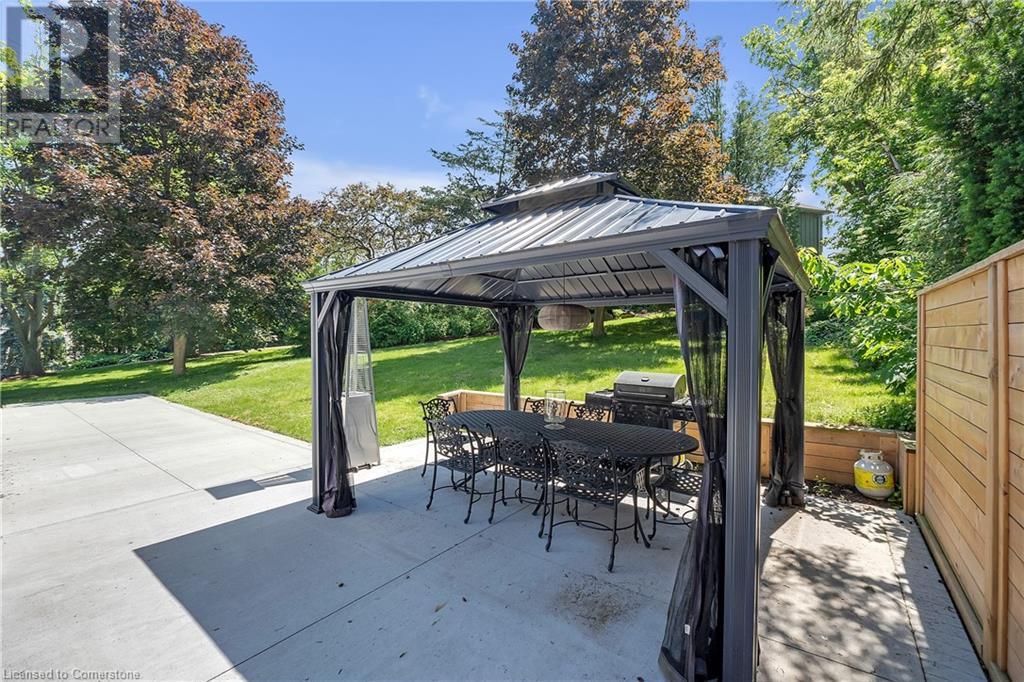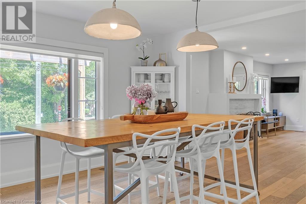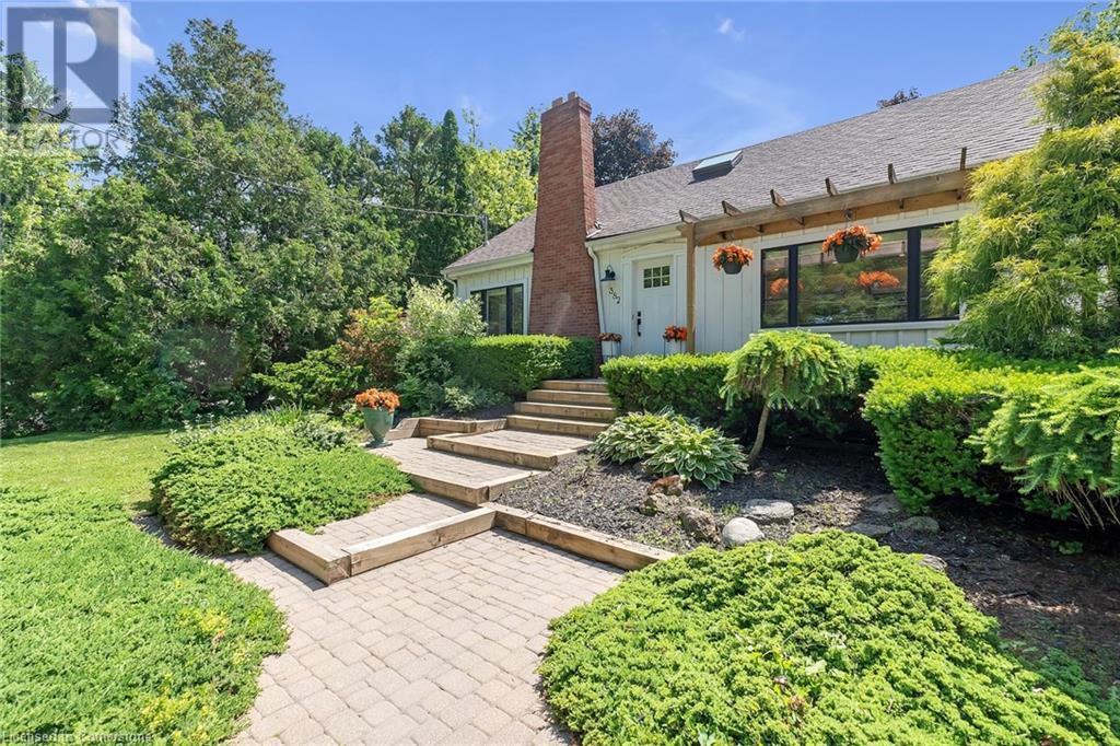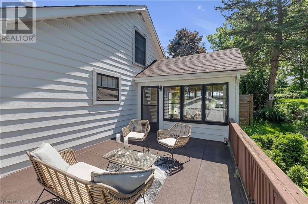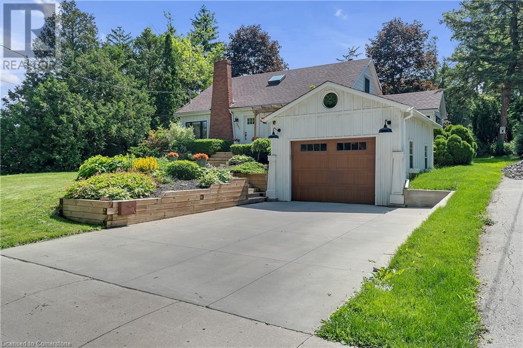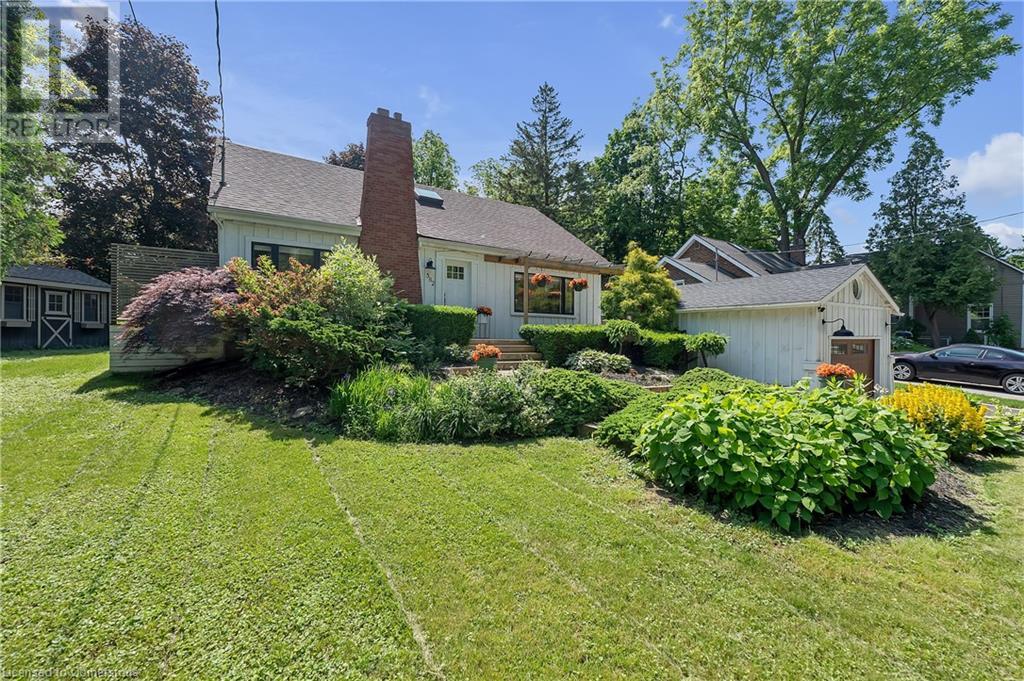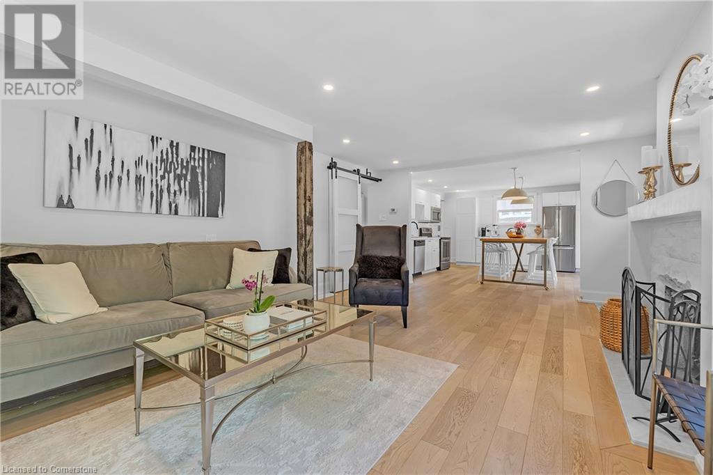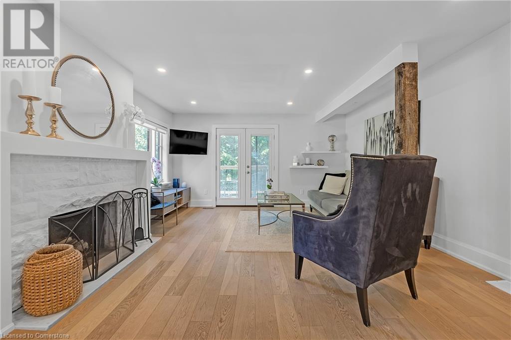 Discover this charming Ancaster home, ideally located near Wilson St's restaurants and shops and steps from the tennis club, library, and Village Green Park with a splash pad-perfect for young families. Situated on a large lot with a newly done concrete patio and gazebo, this residence features a spacious open concept kitchen, living, and dining area with hardwood floors throughout. The living room boasts a beautiful original wood-burning fireplace. Two main floor bedrooms and a newly renovated bathroom offer comfort. Enjoy morning coffees on the small balcony or entertain in the beautiful sunroom with access to a private front terrace. Upstairs, the primary bedroom impresses with an ensuite bath, walk-in closet, and gas fireplace. The finished basement includes a large rec area with brand new flooring, pot lights, and a shiplap feature wall with built-in cabinetry, plus space for a home gym, laundry/utility room, and a garage walk-out, offering potential for an in-law suite. This home blends Ancaster heritage with modern elegance-a true one of a kind gem! (id:55009)