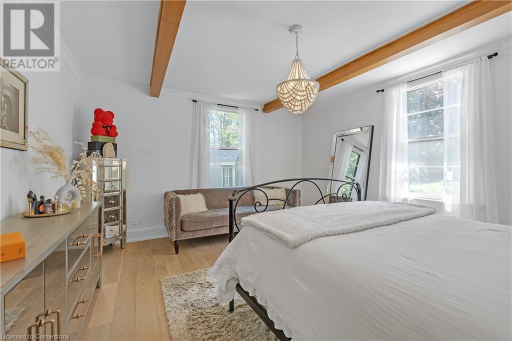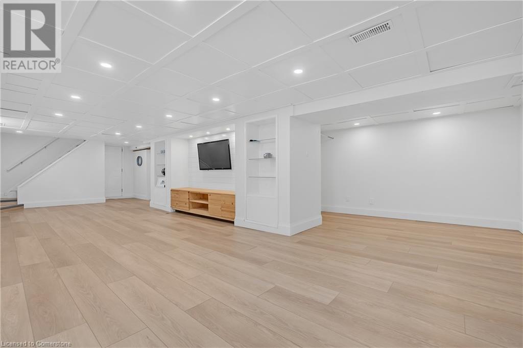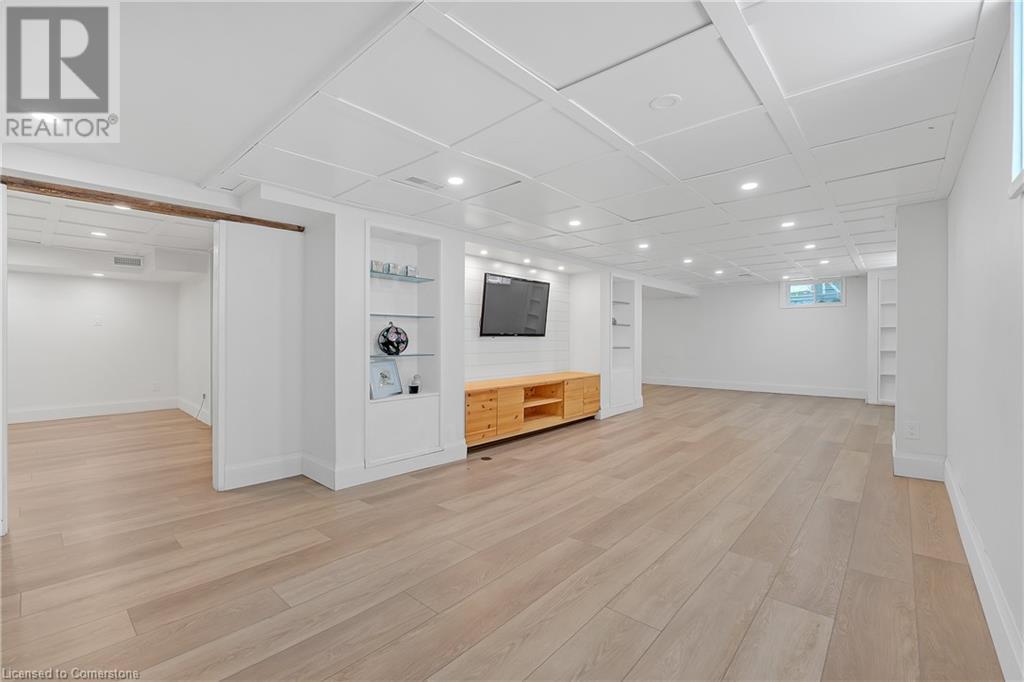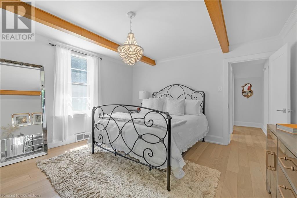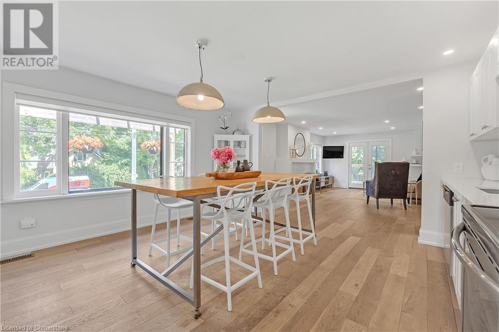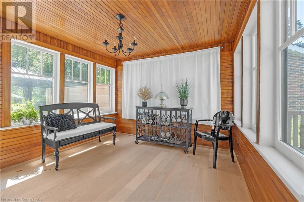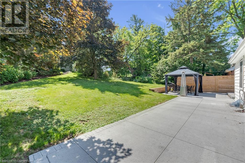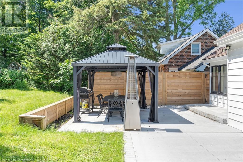 Discover this charming Ancaster home, ideally located near Wilson St's restaurants and shops and steps from the tennis club, library, and Village Green Park with a splash pad-perfect for young families. Situated on a large lot with a newly done concrete patio and gazebo, this residence features a spacious open concept kitchen, living, and dining area with hardwood floors throughout. The living room boasts a beautiful original wood-burning fireplace. Two main floor bedrooms and a newly renovated bathroom offer comfort. Enjoy morning coffees on the small balcony or entertain in the beautiful sunroom with access to a private front terrace. Upstairs, the primary bedroom impresses with an ensuite bath, walk-in closet, and gas fireplace. The finished basement includes a large rec area with brand new flooring, pot lights, and a shiplap feature wall with built-in cabinetry, plus space for a home gym, laundry/utility room, and a garage walk-out, offering potential for an in-law suite. This home blends Ancaster heritage with modern elegance-a true one of a kind gem! (id:55009)