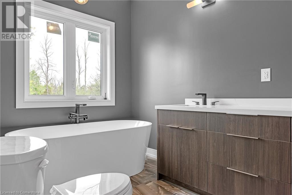Experience the pinnacle of modern living in this brand new 1,660 sq ft bungalow, where sophistication meets comfort. This beautifully designed home offers three spacious bedrooms and two bathrooms, perfect for relaxed, effortless living. Hardwood floors run throughout the open-concept design, enhancing the home’s sleek, contemporary feel. The gourmet kitchen is a chef's dream, featuring custom cabinetry, quartz countertops, and pullout storage. The spa-like ensuite offers a luxurious retreat, complete with a glass-enclosed shower and premium fixtures. Soaring ceilings and large windows fill the space with natural light, creating a bright and airy atmosphere. Outside, the deep lot provides plenty of space for outdoor enjoyment and landscaping options. With the added security of a Tarion warranty, your investment is protected for years to come. Luxurious living starts here! (id:55009)