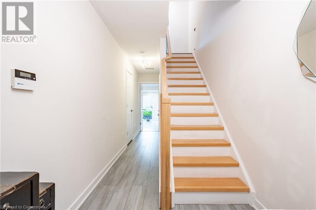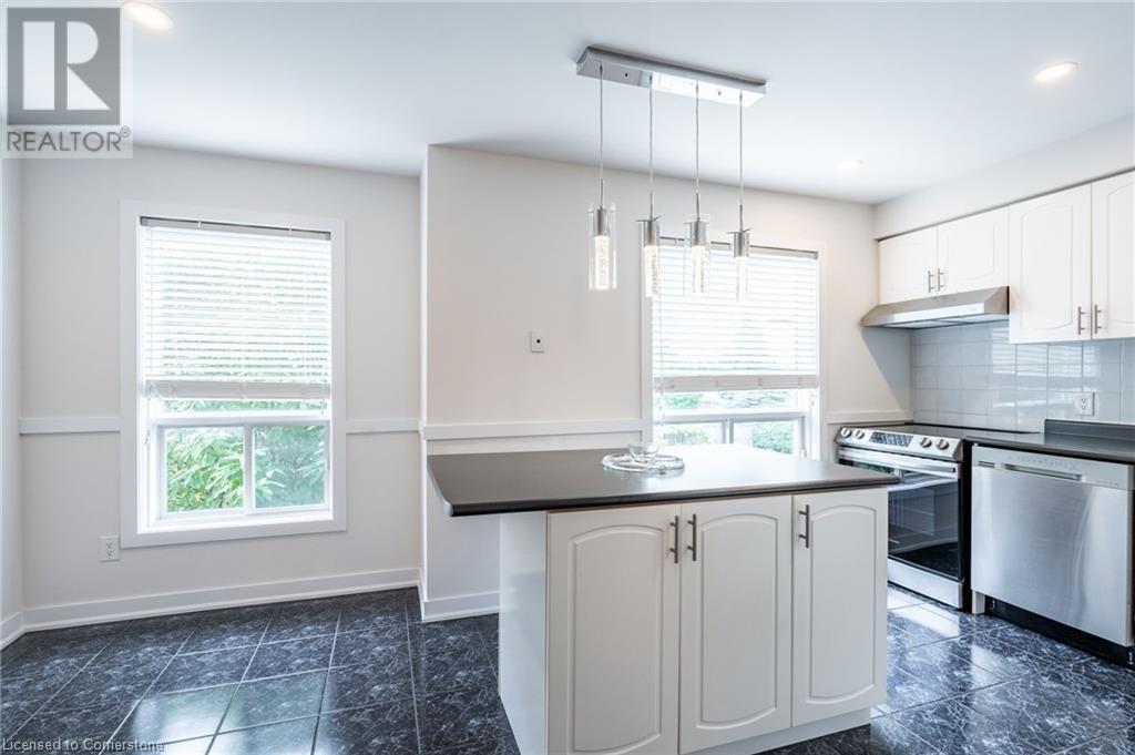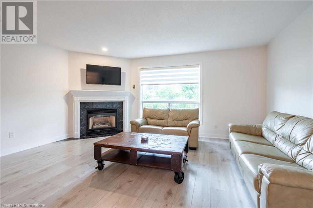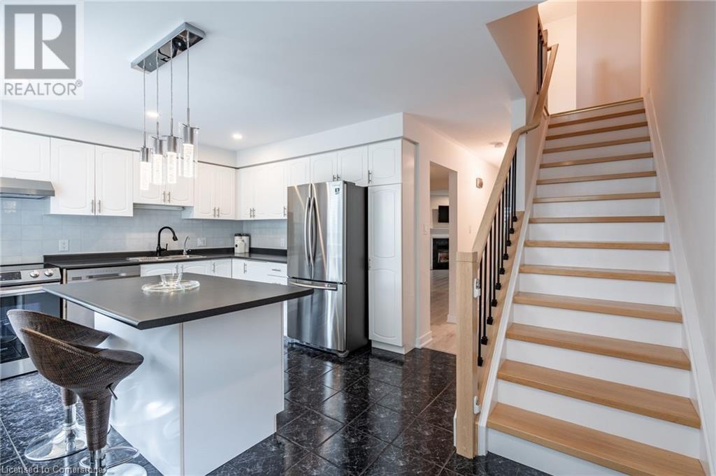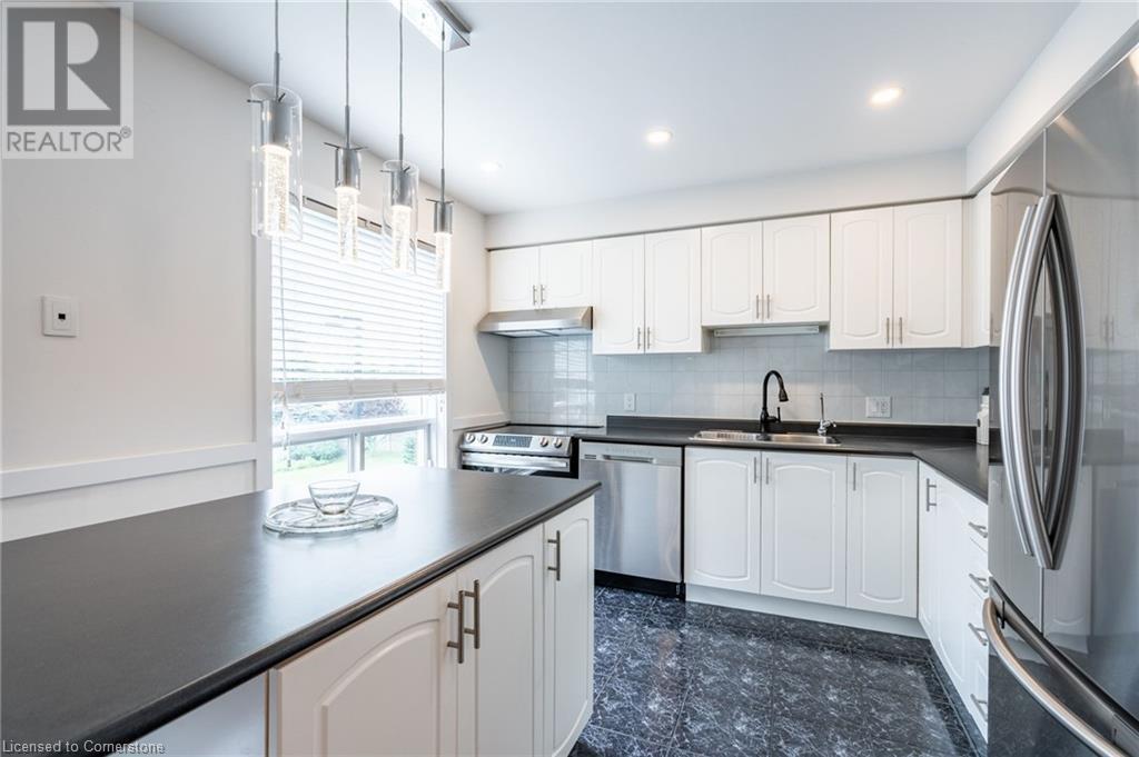 $580 MonthlyLovely updated end unit townhouse, features 3 bedrooms with a primary 3-piece ensuite and walk-in closet as well as a sophisticated yet functional floor layout with over 1600 square feet of living space. Carpet free throughout. All new bathrooms with beautiful modern finishes. A gas fireplace and upgraded lighting create a cosy atmosphere in the second floor living room. Large kitchen with breakfast bar and SS appliances. Bright ground level family room can easily serve as an office, kids playroom or home gym with walk-out access to backyard. Attached single car garage and front drive way parking. Fair maintenance fees include water plus lawn, snow and exterior window maintenance. Savour the convenience this location offers, a short walk from Limeridge Mall and just minutes to the LINC. (id:55009)