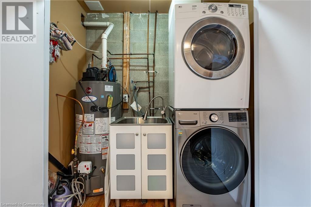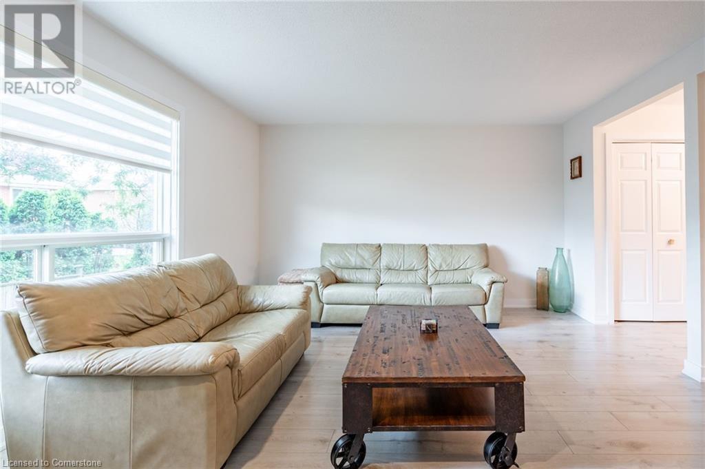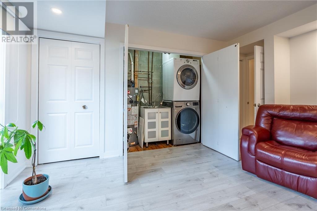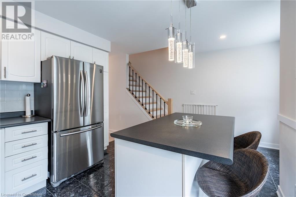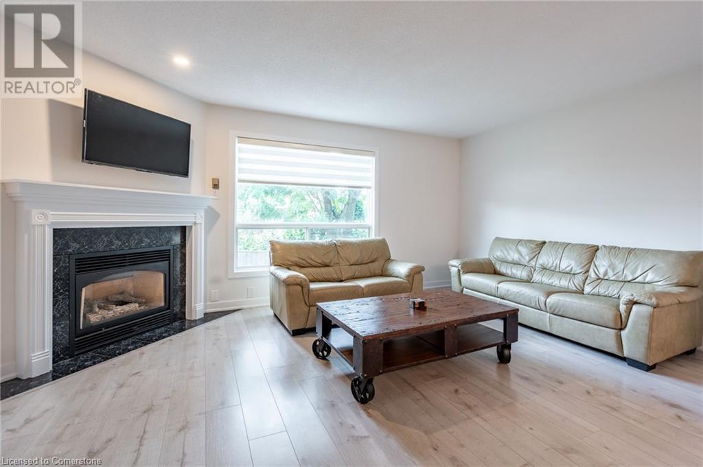 $580 MonthlyLovely updated end unit townhouse, features 3 bedrooms with a primary 3-piece ensuite and walk-in closet as well as a sophisticated yet functional floor layout with over 1600 square feet of living space. Carpet free throughout. All new bathrooms with beautiful modern finishes. A gas fireplace and upgraded lighting create a cosy atmosphere in the second floor living room. Large kitchen with breakfast bar and SS appliances. Bright ground level family room can easily serve as an office, kids playroom or home gym with walk-out access to backyard. Attached single car garage and front drive way parking. Fair maintenance fees include water plus lawn, snow and exterior window maintenance. Savour the convenience this location offers, a short walk from Limeridge Mall and just minutes to the LINC. (id:55009)