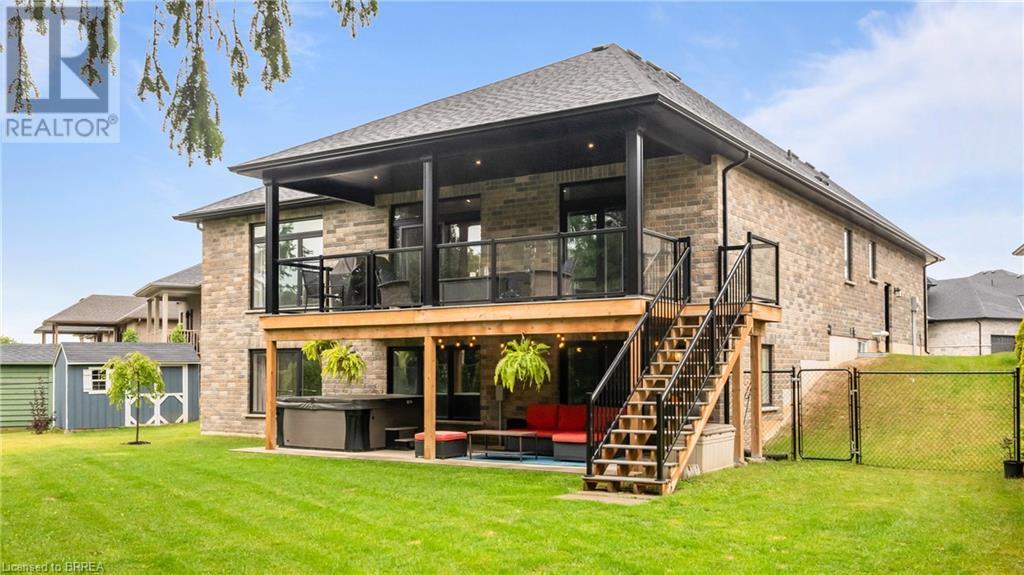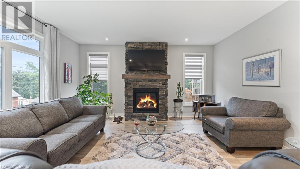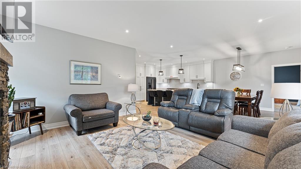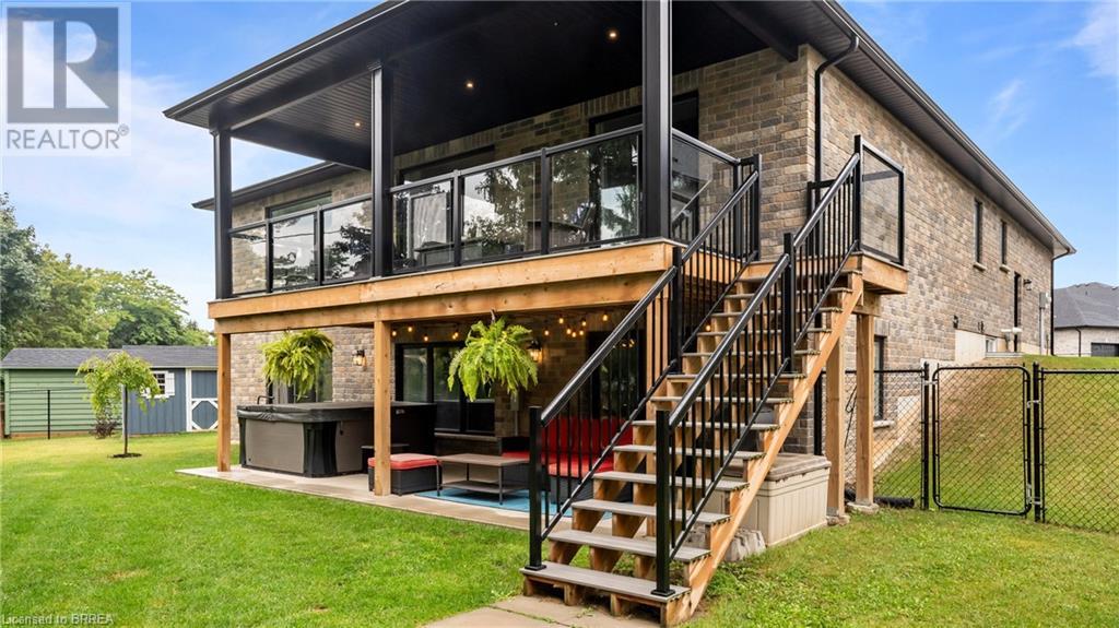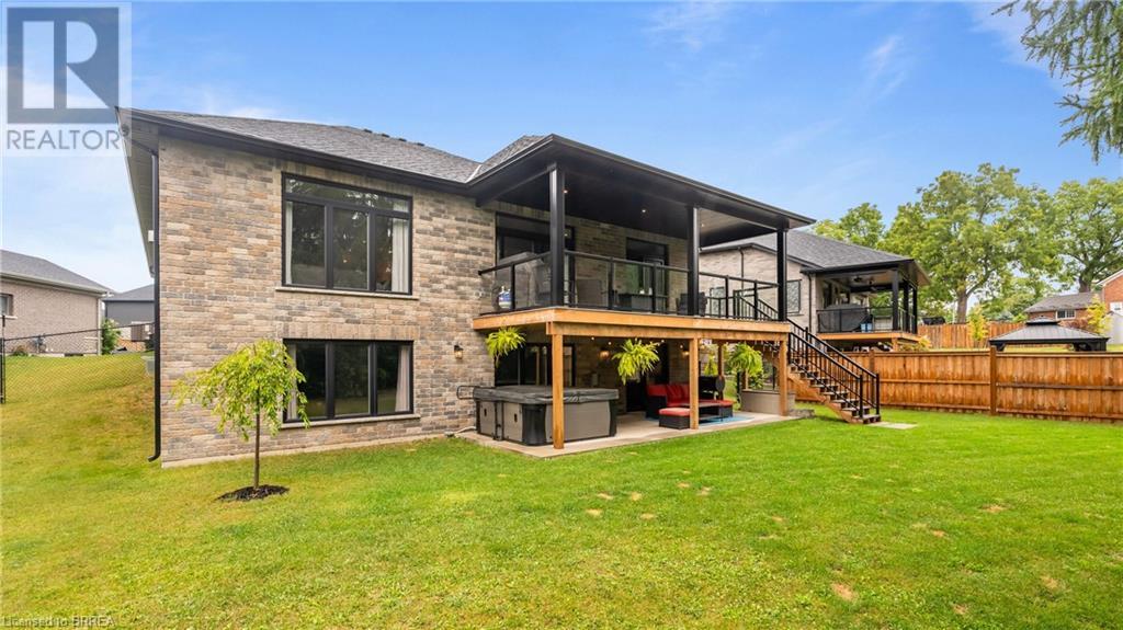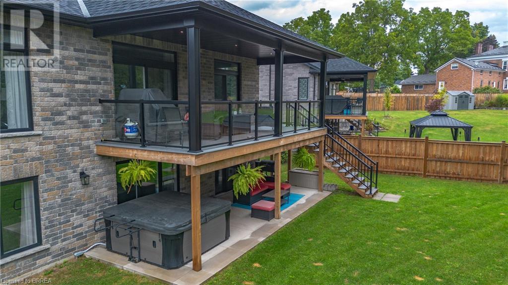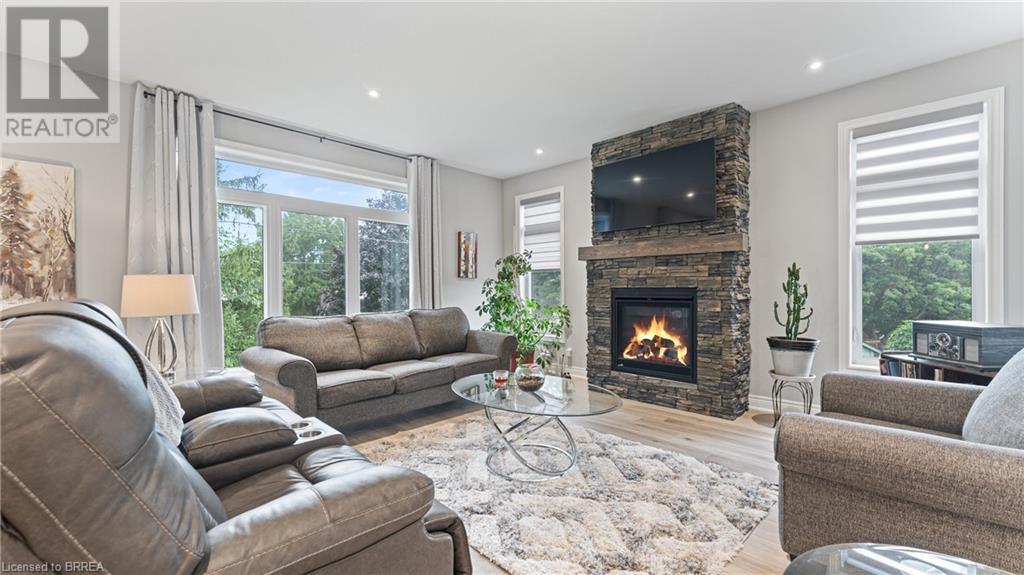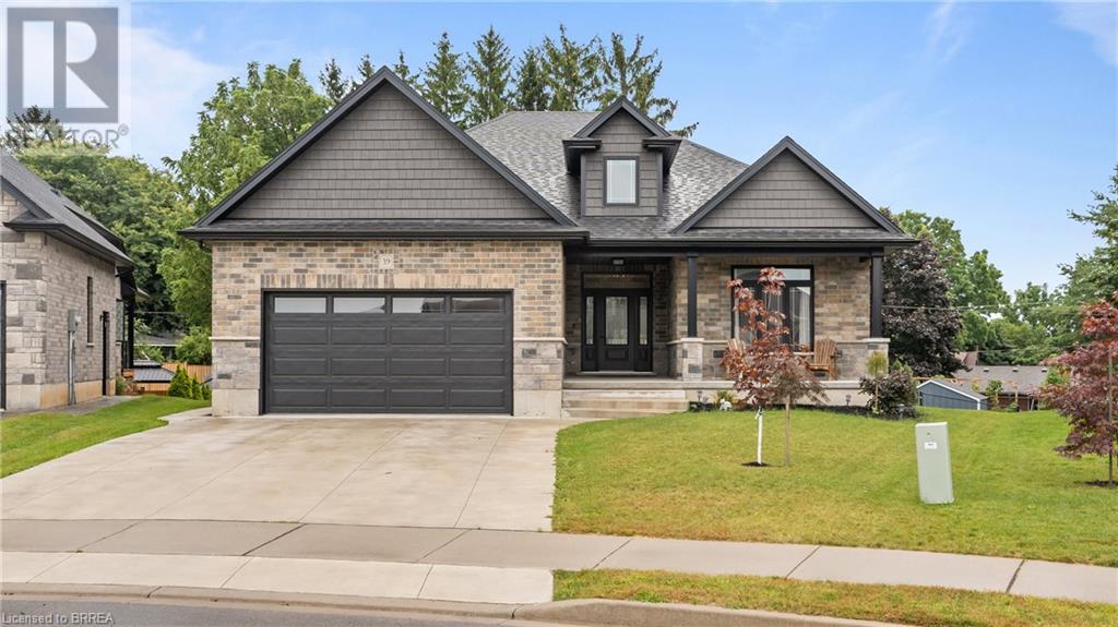 Welcome to 39 Gibbons Street in the charming village of Waterford. This beautiful executive style bungalow home is situated on a pie shaped lot with a large fully fenced backyard and boasts beautiful finishes throughout. Offering 3+1 bedrooms, 3 bathrooms, a fully finished walk-out basement. Just off the entryway is a bedroom - that could be perfect for those who want a dedicated work space not in the basement. As you make your way into the home, this beautiful open concept shows beautifully throughout. Absolutely stunning kitchen with white cabinetry, subway tiled backsplash, quartz countertops, dark stainless appliances, large island, built-in range hood and plenty of cupboard and counter space for cooking! The living room features a gorgeous floor to ceiling stone hearth with gas fireplace and built in receptacle for TV installation. An abundance of natural light and plenty of room for hosting large family gatherings. Just off the main living space is the very spacious primary bedroom with sliding patio door access to the covered deck. Featuring hotel-like amenities with large en-suite, dual sink vanity and large walk-in shower with rainfall shower head. An additional spacious bedroom is also located just down the hall as well as a 4 piece bathroom. Main floor tiled mudroom/laundry room with easy access to the garage and dual storage closets. Finished lower level is the entertainer's dream! Recessed potlighting, stone hearth with gas fireplace. Plenty of room for multi use spaces with walk-out to the backyard. This open concept lower level is perfect for a family looking for dedicated spaces for adults and kids. Also on the lower level is an additional 3 piece bathroom and bedroom. The backyard boasts a concrete pad, hot tub and plenty of green space! Plenty of room for a pool or the opportunity to transform this into your own backyard oasis. Amazing opportunity to live in a great location close to schools, parks, trails, breweries, wineries and more. (id:55009)