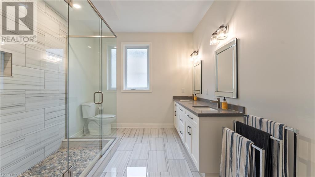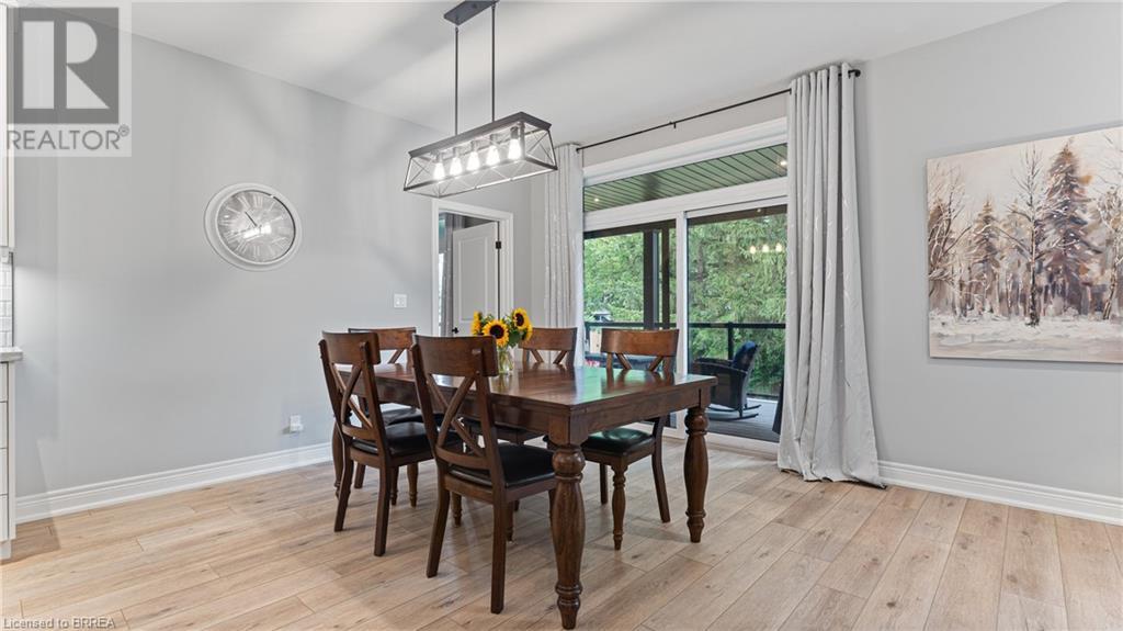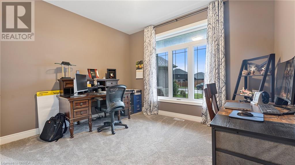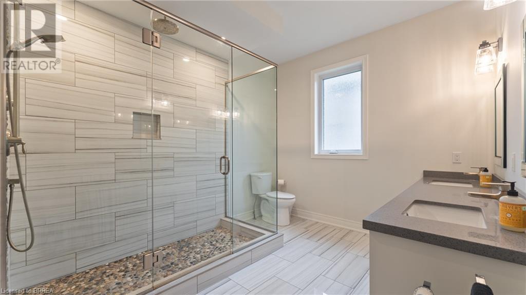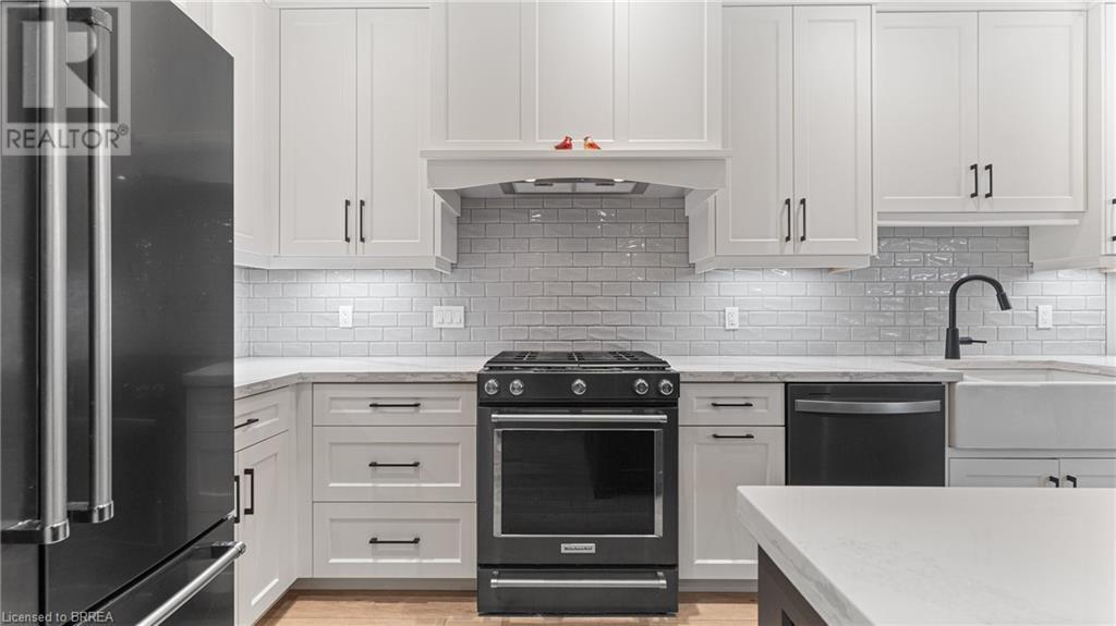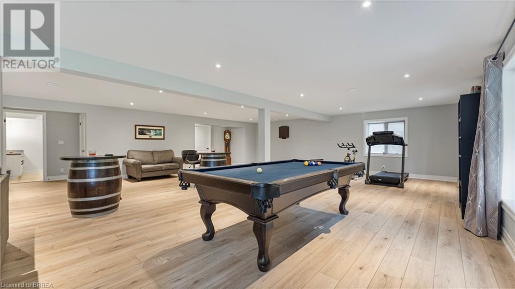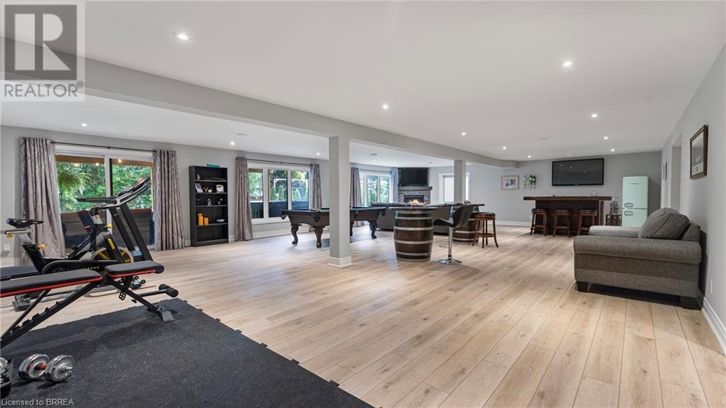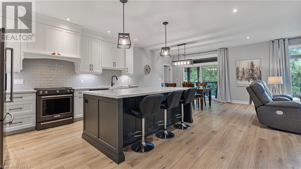 Welcome to 39 Gibbons Street in the charming village of Waterford. This beautiful executive style bungalow home is situated on a pie shaped lot with a large fully fenced backyard and boasts beautiful finishes throughout. Offering 3+1 bedrooms, 3 bathrooms, a fully finished walk-out basement. Just off the entryway is a bedroom - that could be perfect for those who want a dedicated work space not in the basement. As you make your way into the home, this beautiful open concept shows beautifully throughout. Absolutely stunning kitchen with white cabinetry, subway tiled backsplash, quartz countertops, dark stainless appliances, large island, built-in range hood and plenty of cupboard and counter space for cooking! The living room features a gorgeous floor to ceiling stone hearth with gas fireplace and built in receptacle for TV installation. An abundance of natural light and plenty of room for hosting large family gatherings. Just off the main living space is the very spacious primary bedroom with sliding patio door access to the covered deck. Featuring hotel-like amenities with large en-suite, dual sink vanity and large walk-in shower with rainfall shower head. An additional spacious bedroom is also located just down the hall as well as a 4 piece bathroom. Main floor tiled mudroom/laundry room with easy access to the garage and dual storage closets. Finished lower level is the entertainer's dream! Recessed potlighting, stone hearth with gas fireplace. Plenty of room for multi use spaces with walk-out to the backyard. This open concept lower level is perfect for a family looking for dedicated spaces for adults and kids. Also on the lower level is an additional 3 piece bathroom and bedroom. The backyard boasts a concrete pad, hot tub and plenty of green space! Plenty of room for a pool or the opportunity to transform this into your own backyard oasis. Amazing opportunity to live in a great location close to schools, parks, trails, breweries, wineries and more. (id:55009)