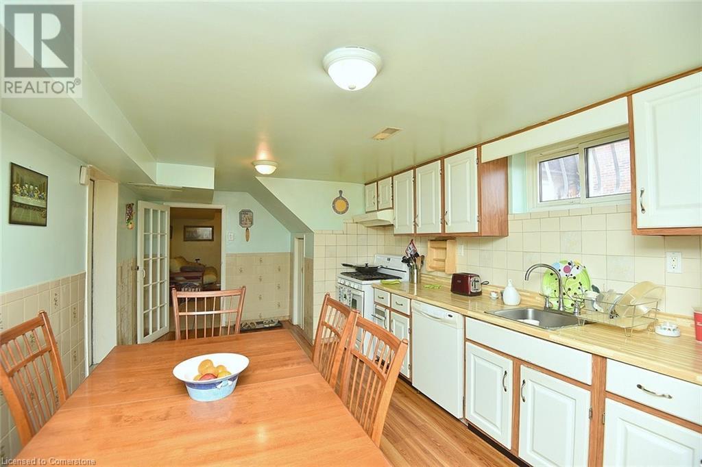 Great opportunity for growing or extended family in sought after location close to schools, recreation, James Street shops, GO Station and the waterfront. This spacious home in the popular north end has been well maintained in the same family for many years. Upper level features beautiful hardwood flooring in the formal livingroom, kitchen/dining area, 4 good sized bedrooms, a familyroom. Four piece bath completes this area. A separate entrance leads to the lower level with a large eat-in kitchen, another familyroom plus den, a large laundry/storage area and 4 piece bath. The large covered front concrete porch provides great space to sit our and relax. Huge lot 48.3 x 147.5 feet, great for children to play or for a family BBQ. Bring your ideas! (id:55009)