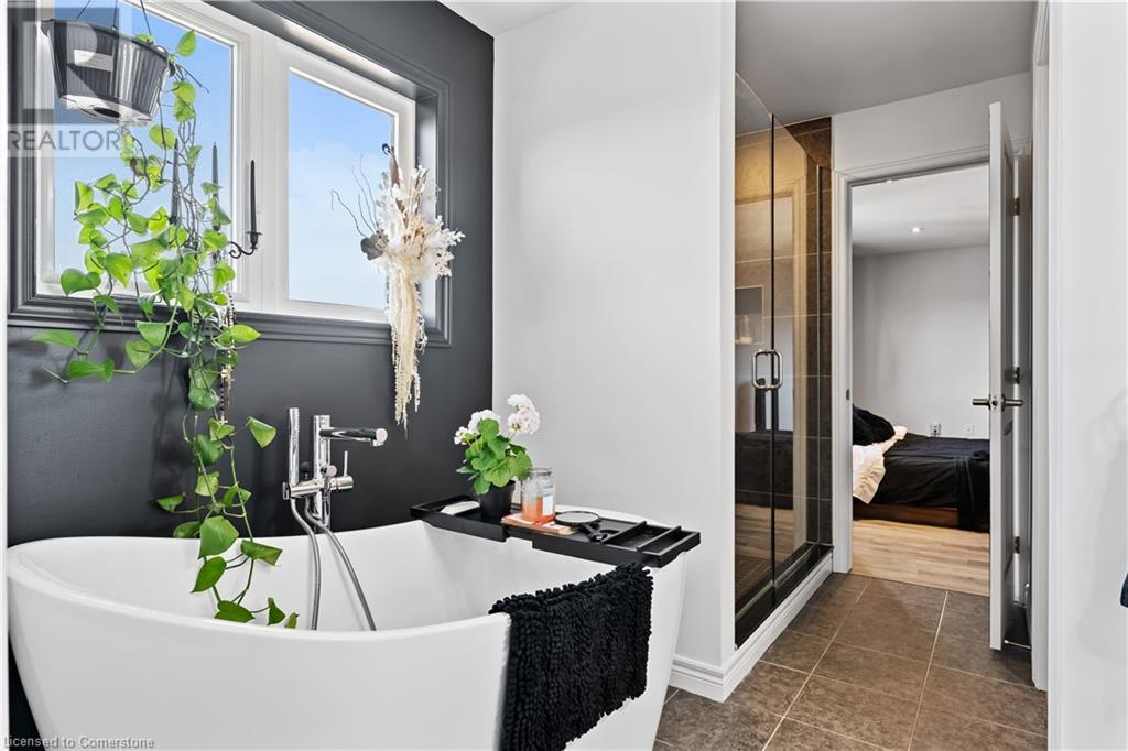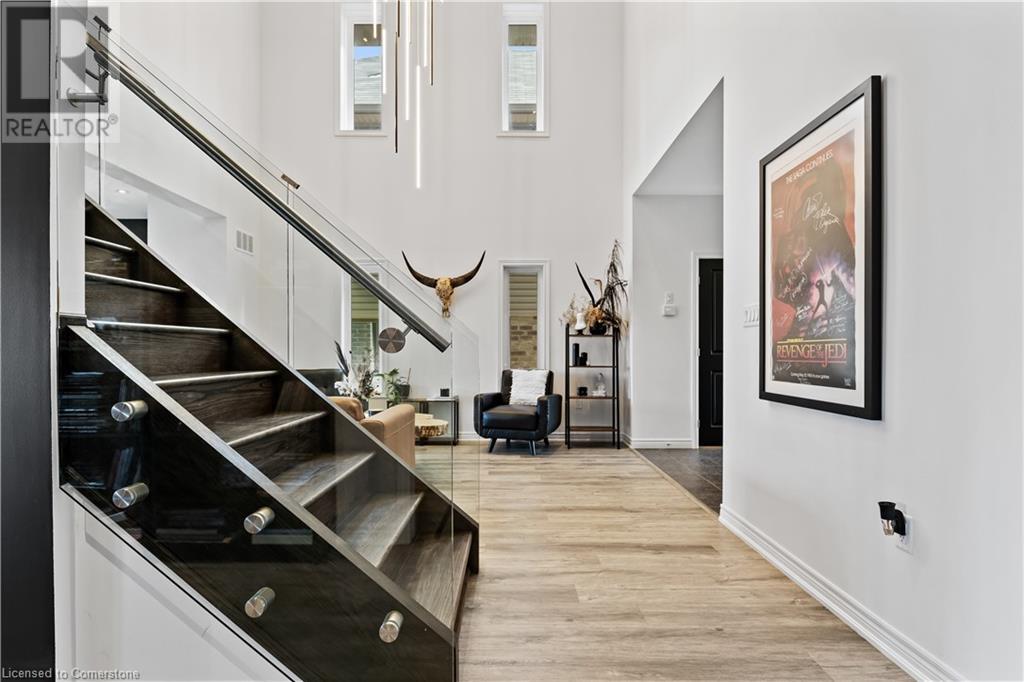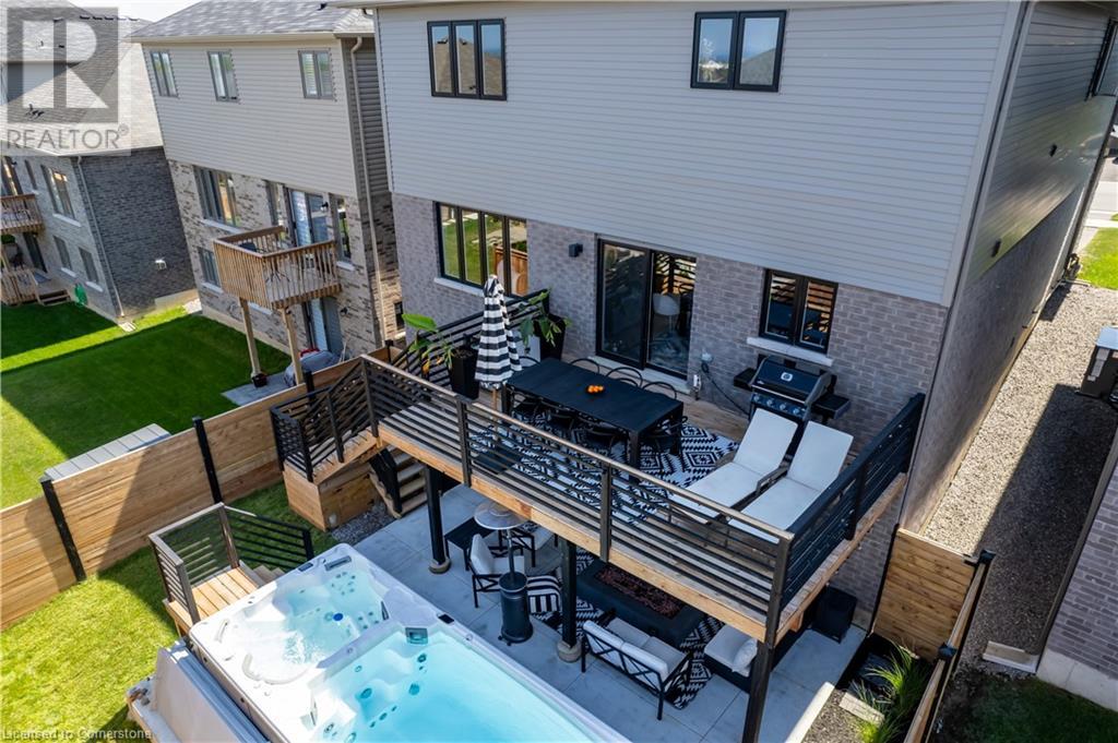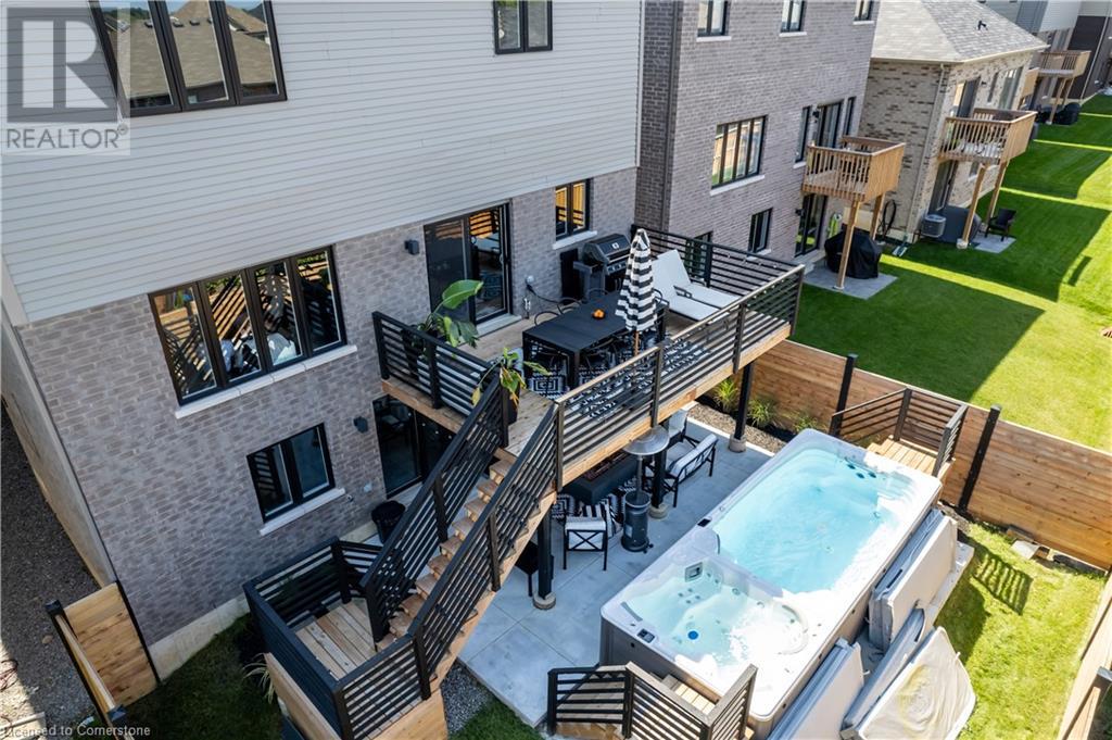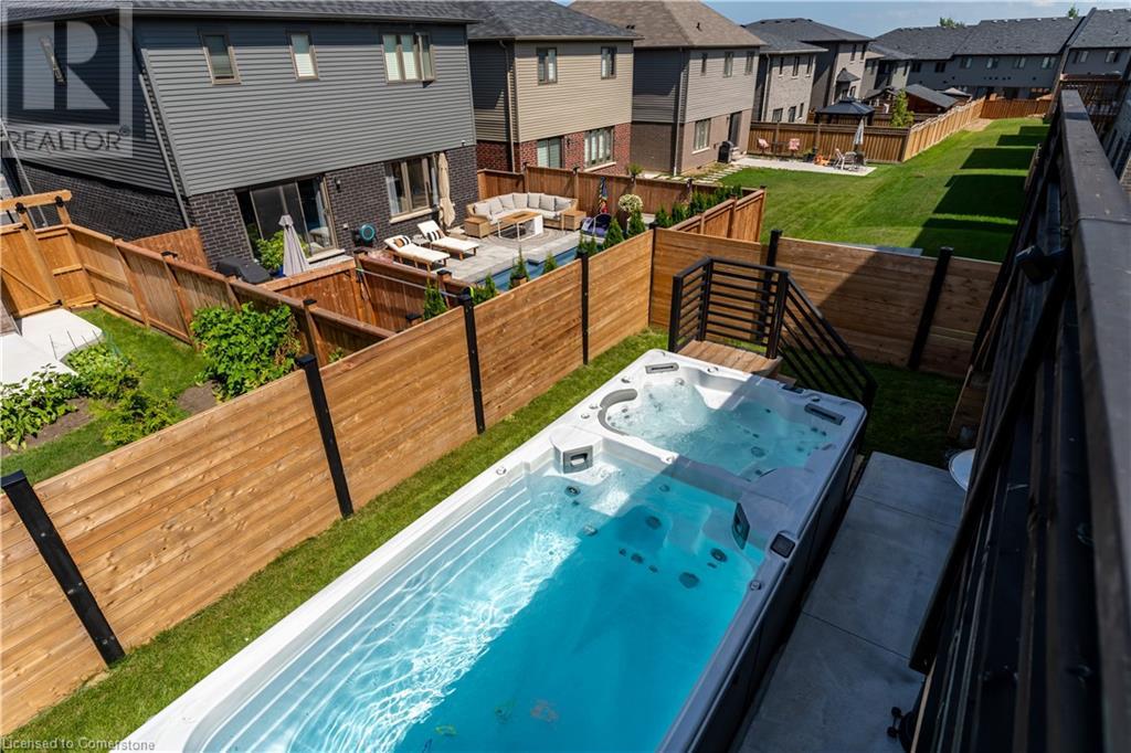 Welcome to 4069 Brock Street in the heart of Beamsville's Vista Ridge Development. Upon entering through the beautiful oversized front door, you will be greeted with 2 double door closets. 9' ceiling on the main level, lxry vinyl floors throughout & oversized windows. The 2 storey great room comes complete with a gorgeous 3 sided fireplace, grand staircase with full glass railing & an absolute breath taking chandelier. The open concept living room comes with a state of the art 86 TV fully mounted. Main floor office. The gourmet kitch is every chef's dream, with a fully shelved pantry, double wall oven/microwave, cook top & dishwasher. Quartz counter tops & back splash. Cupboards have upgraded pull outs. The island comes with a blk marble counter top & wine frdg. Make your way up the grand oak staircase to the 2nd storey where you'll find a primary bdrm with walk in closet, freestanding tub, full glass shower & water closet, Full laundry room with washer & dryer, cupboards & countertop. 3 additional generous sized bdrms + full bath. Make your way downstairs to the full walk out basement perfect for an in-law suite. Complete with full bedroom, walk in closet & full ensuite. Living room, oversized windows, stacked washer & dryer in the utility room. Walk out of the basement sliding doors to your private fenced in spa, complete with a 19' jacuzzi hot tub & pool combo. Custom deck, 2 car ashphalt drive, insulated garage doors. Floor plans in supps. over 3300 sqft of living space. (id:55009)