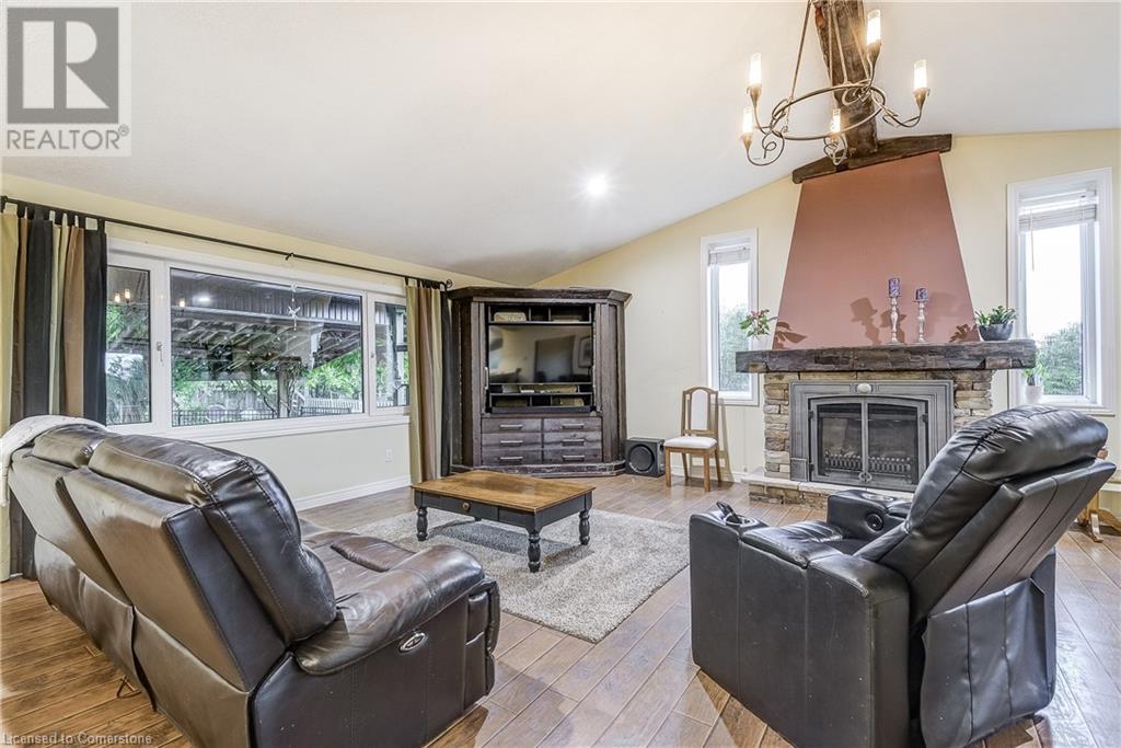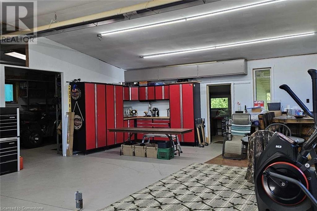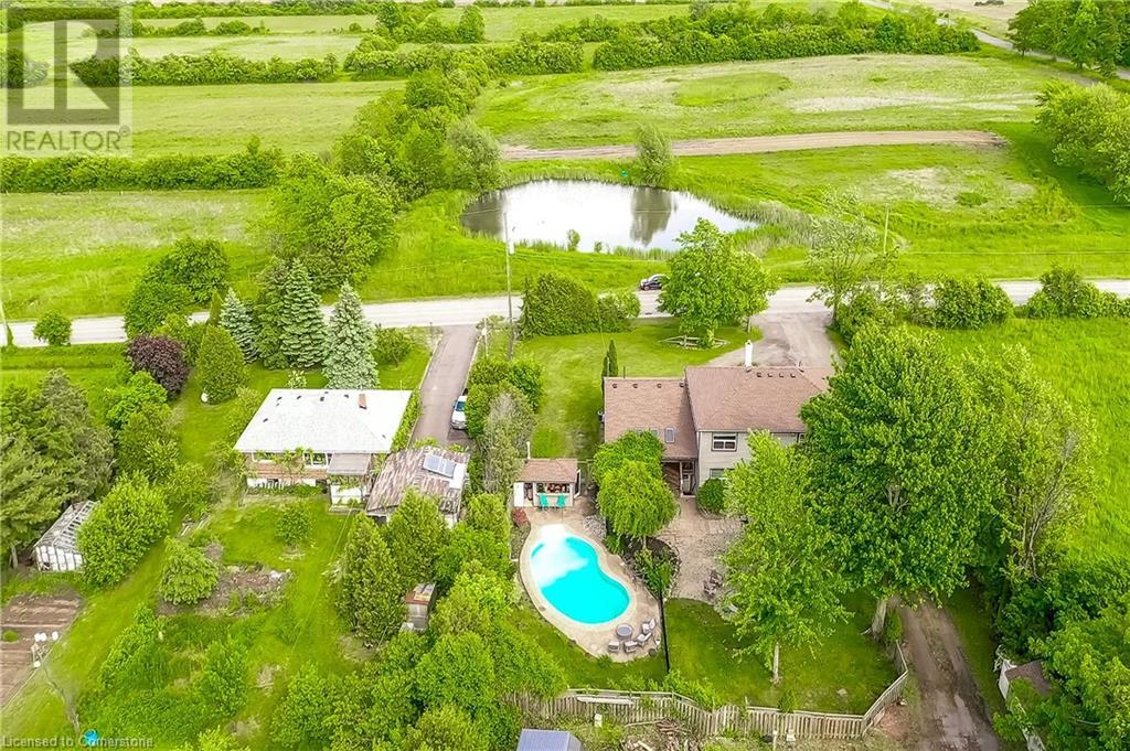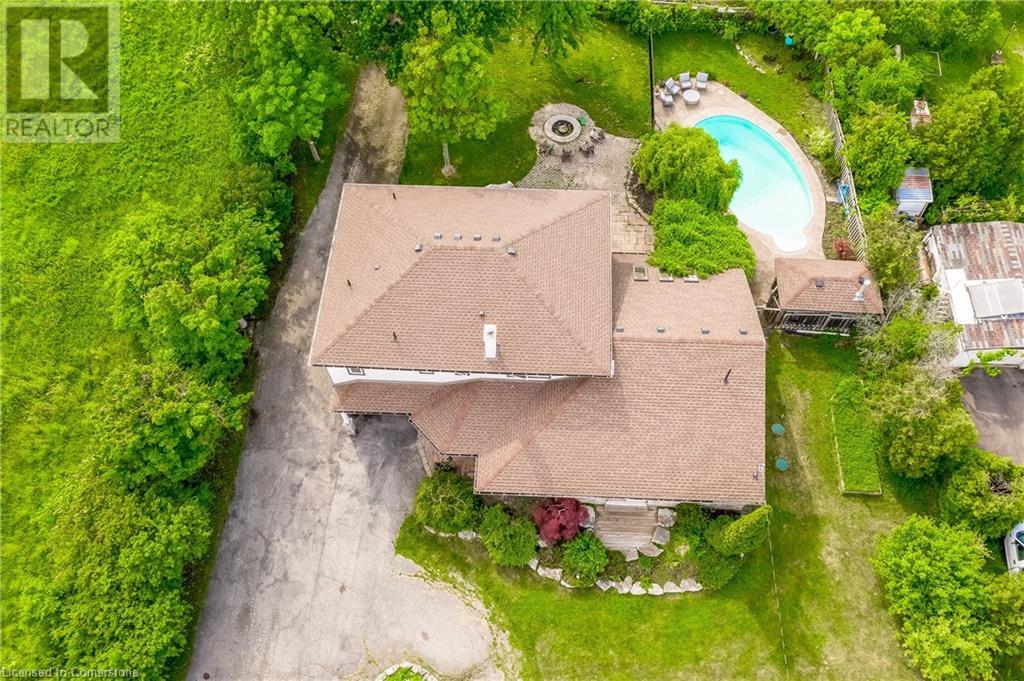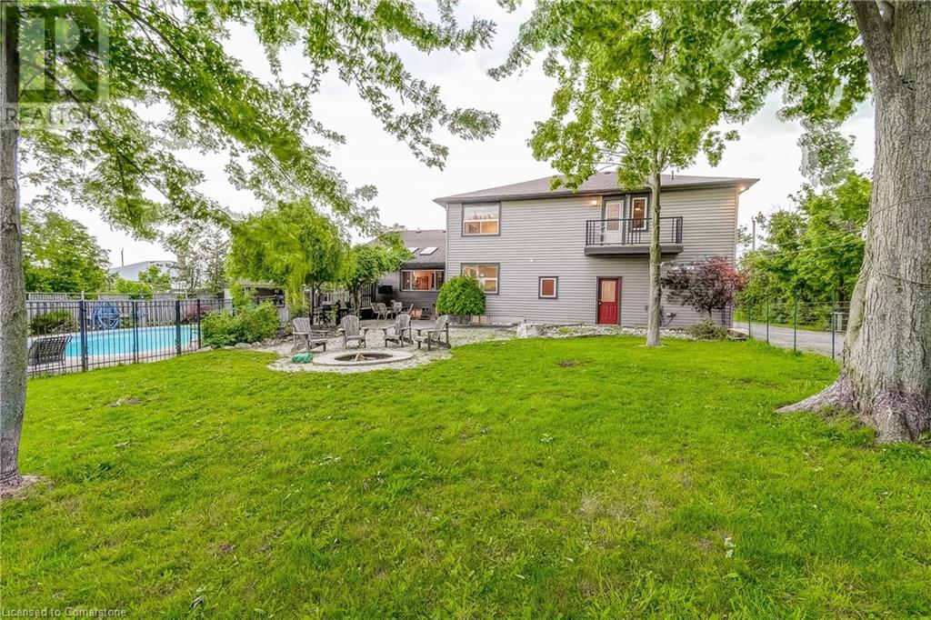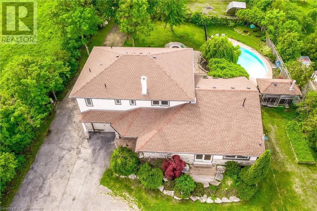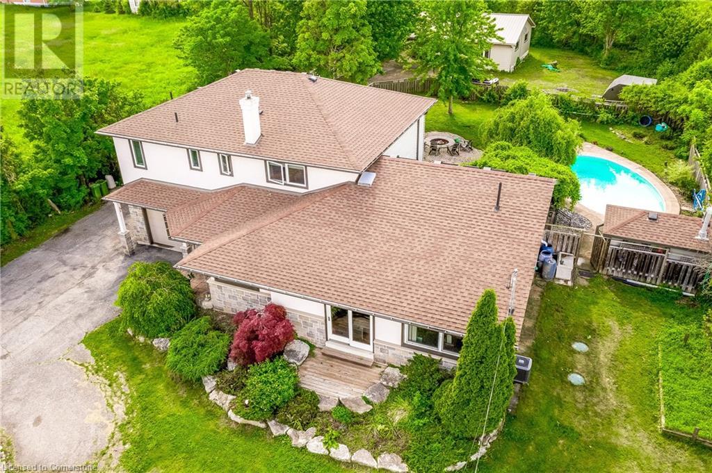 Step into the warmth of this country estate, a serene retreat mere moments away from urban conveniences. Nestled on an expansive lot enveloped by majestic trees, spanning 120.80 feet by 264.00 feet, this residence displays a sense of pride from the first glimpse of its large yet inviting foyer. This home boasts an array of attractive touches, including a generously sized principal bedroom complete with a private balcony, luxurious ensuite, and spacious walk-in closet. A second sizable bedroom, complemented by its own 3-piece bath, graces the same level. Designed with entertaining in mind, the open-concept living room and sunroom seamlessly blend with a chef's kitchen, ensuring gatherings are both effortless and memorable. Convenience is key with main floor laundry/mudroom. Work from home in the sun-kissed office, featuring its own deck overlooking pastoral views of a tranquil pond and idyllic farmland. Downstairs, the fully finished lower level, accessible via a separate entrance, offers a versatile space with an open-concept living area, kitchen, and two additional bedrooms. Step outside into your own private oasis, complete with a 32 x 14 saltwater in-ground pool, fire-pit, and expansive patios, ideal for alfresco dining or lounging. A septic tank installed in 2019 ensures worry-free living.Completing this remarkable property is a 1600 sq ft workshop, heights of up to 14 feet and offering endless possibilities for entrepreneurs or hobbyists. (id:55009)