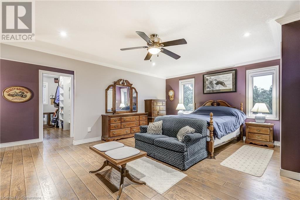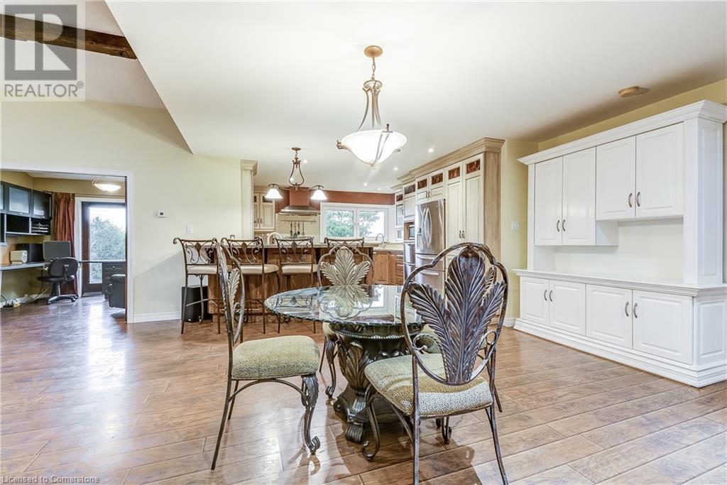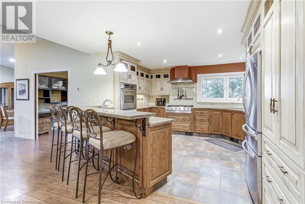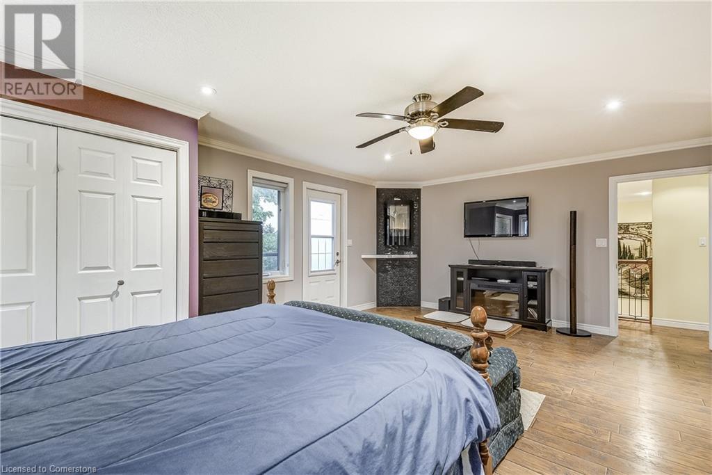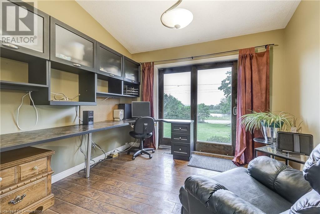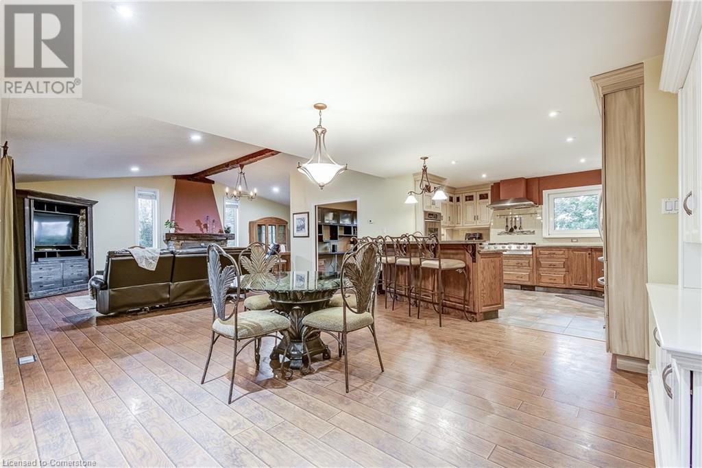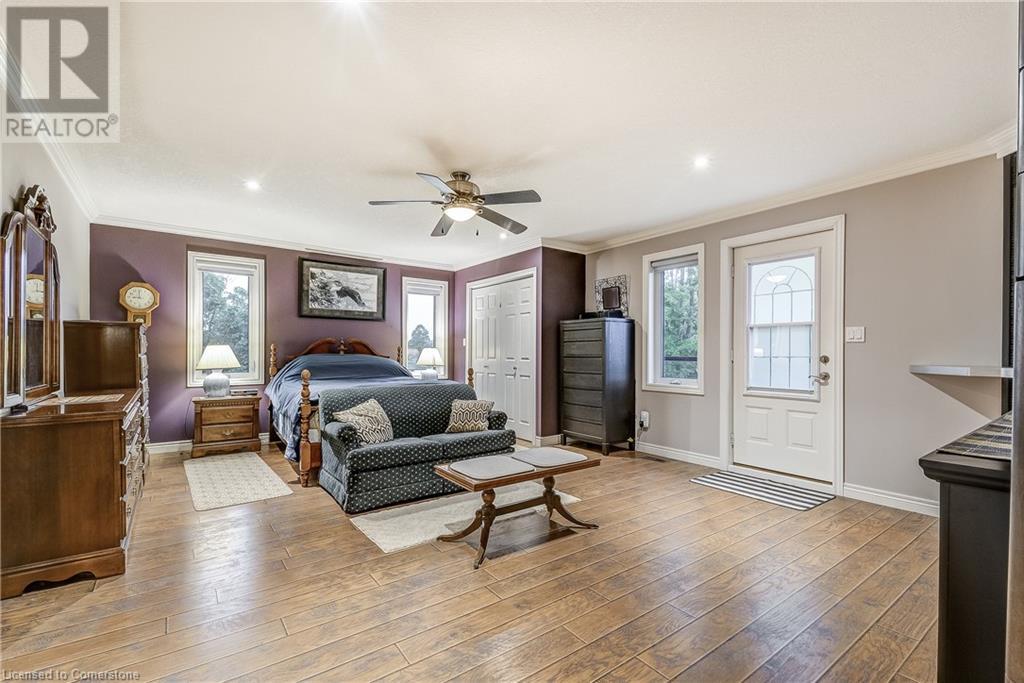 Step into the warmth of this country estate, a serene retreat mere moments away from urban conveniences. Nestled on an expansive lot enveloped by majestic trees, spanning 120.80 feet by 264.00 feet, this residence displays a sense of pride from the first glimpse of its large yet inviting foyer. This home boasts an array of attractive touches, including a generously sized principal bedroom complete with a private balcony, luxurious ensuite, and spacious walk-in closet. A second sizable bedroom, complemented by its own 3-piece bath, graces the same level. Designed with entertaining in mind, the open-concept living room and sunroom seamlessly blend with a chef's kitchen, ensuring gatherings are both effortless and memorable. Convenience is key with main floor laundry/mudroom. Work from home in the sun-kissed office, featuring its own deck overlooking pastoral views of a tranquil pond and idyllic farmland. Downstairs, the fully finished lower level, accessible via a separate entrance, offers a versatile space with an open-concept living area, kitchen, and two additional bedrooms. Step outside into your own private oasis, complete with a 32 x 14 saltwater in-ground pool, fire-pit, and expansive patios, ideal for alfresco dining or lounging. A septic tank installed in 2019 ensures worry-free living.Completing this remarkable property is a 1600 sq ft workshop, heights of up to 14 feet and offering endless possibilities for entrepreneurs or hobbyists. (id:55009)