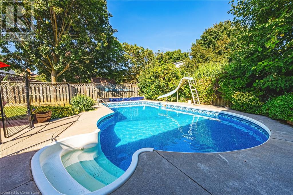 Welcome to 412 Melanie Crescent, the perfect family home located in one of the most coveted neighbourhoods in Ancaster! Just off hwy 403, close major shopping centres and the Ancaster business park, the location is great to get to work and do quick errands. You are also surrounded by mature trees, elegant homes, great parks, prestigious schools and the famous Hamilton Golf & Country Club, giving you a sense of family living, elegance and nature. The home has great curb appeal and welcoming look with its large interlock driveway, two-car garage, mature trees, and delightful brick exterior. Inside you get to enjoy a large luxurious kitchen and formal dining room, which flows nicely into the backyard where you get to enjoy a true oasis, a well manicured lawn, covered porched area and a fantasic in-ground pool that can be enjoyed by you and your guests! The other side of the main floor you have the formal living room and family room which features an inviting gas fireplace, upgraded lighting and hardwood flooring, and double patio doors to have direct access to the pool area! When you go upstairs, you will be impressed with the massive master bedroom which features an exquisite en-suite bathroom with his and her sinks and quartz countertops. Enjoy two more great sized bedrooms with large closets and another full bath, renovated and ready for you to enjoy! The basement is also finished with a large rec room and den which would be great for a home gym or office! (id:55009)