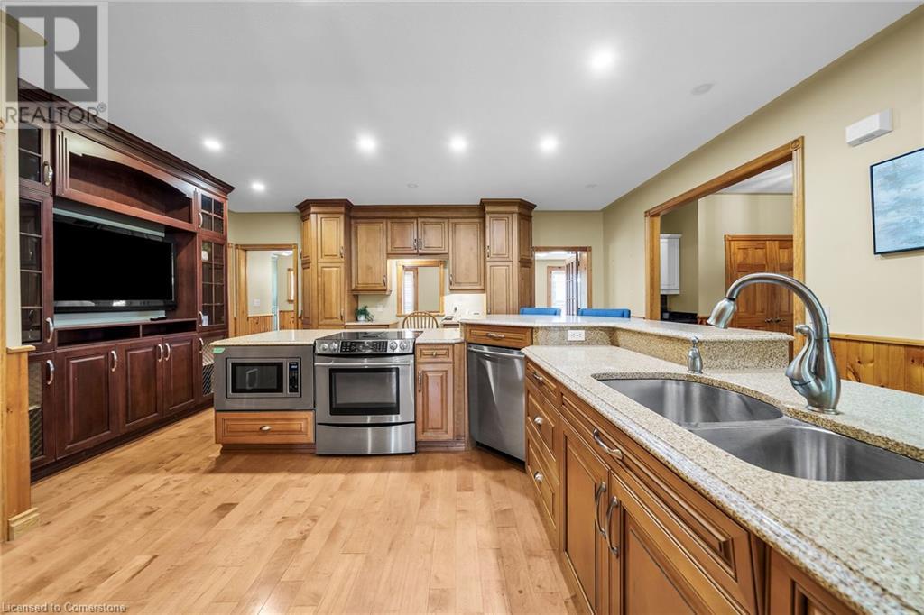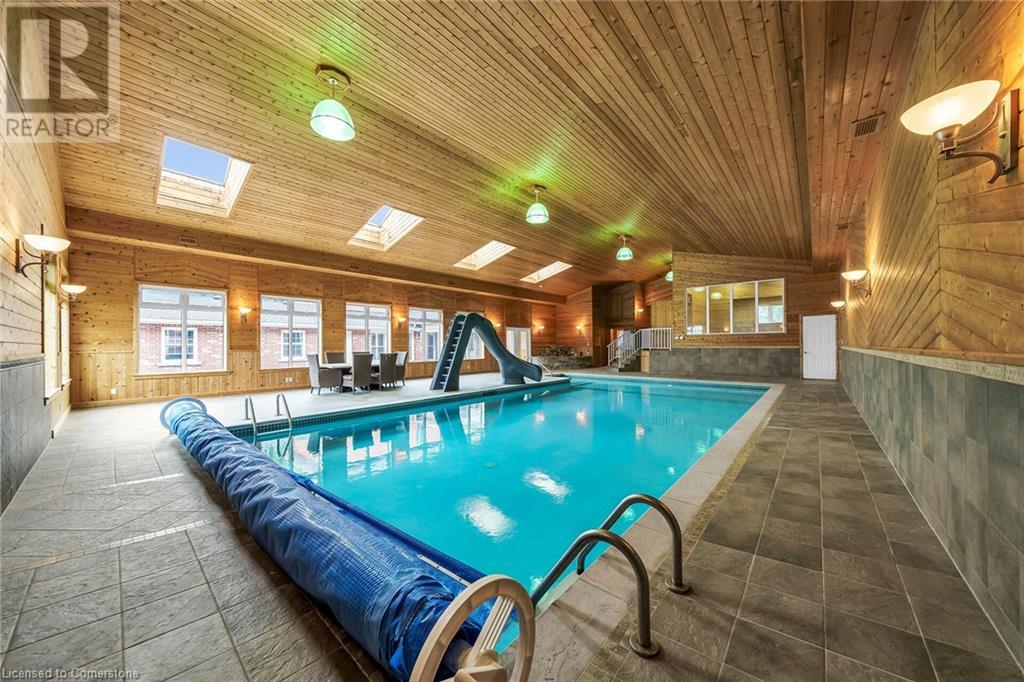 Impressive 308ac Cash-Crop/Hog Farm exuding pride of generational ownership - located in central Haldimand County mins N. of Hagersville - 30 mins/Hamilton, Brantford & 403 - 90/120 mins/London/GTA. Incs brick century dwelling (1880)extensively renovated in 2012 introducing 3476sf living area, 1292sf basement, finished attic + 832sf garage w/ceramic tile flooring - all seasons breezeway leads to 3000sf cedar finished Resort building (2012)enjoying heated 20x40 in-door pool, hot tub, gym, change room + 3pc bath. Dream” maple kitchen highlights main level incs spacious principal rooms, 3 baths & 2 upper level common rooms & 3 large bedrooms accented w/hardwood flooring thru-out. Economic Geo-Thermal heat source units are housed in functional basement. Solid 1462 2nd dwelling is ideal for employees or family. Income producing 92x240 Hog Barn (2004) equipped to finish 2000 hogs incs heated office/laundry, slatted floors, 4ft manure pit & 68ft outdoor round pit (1 yr retention capacity). Elevator complex incs 10000bu grain bin w/dryer, 2x18000bu grain bins, 3500bu wet bin & office. Outbuildings - 75x150 metal clad Shop(2011) w/conc. floor, heated front bay, 18ft ceilings, multiple RU doors & 16x140 attached lean-to, 50x60 Shed/Garage, 80KW Diesel Generator & 269ac fence row free, well drained workable land + 26ac rented from Hydro (paid to 2026) Extras- tile roof, ex. well, 3-phase power, “Nuhn” manure tank w/injector, transfer pump...list is endless. The Complete Farm Package (id:55009)