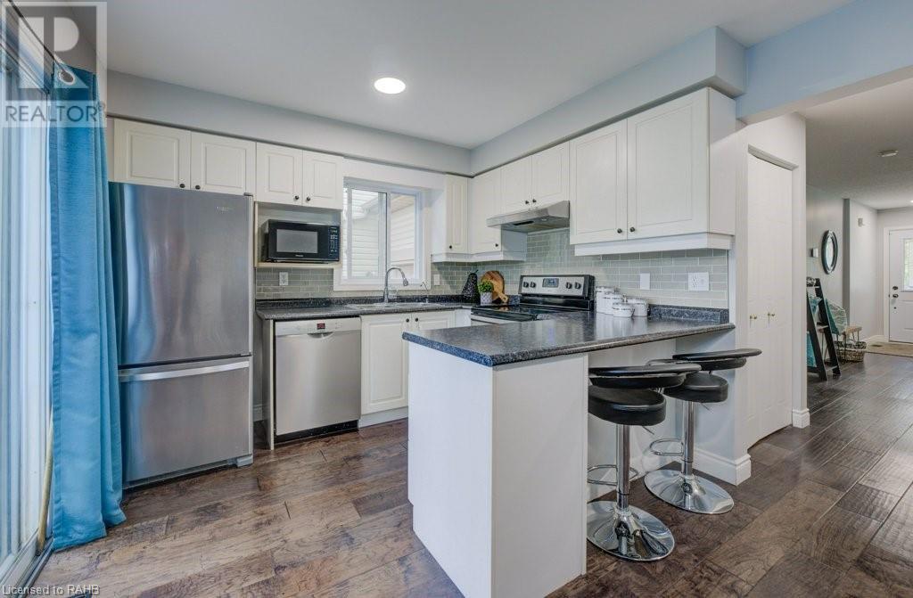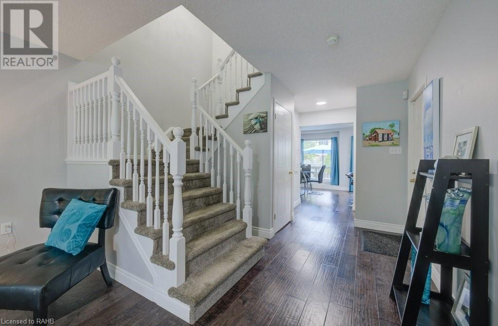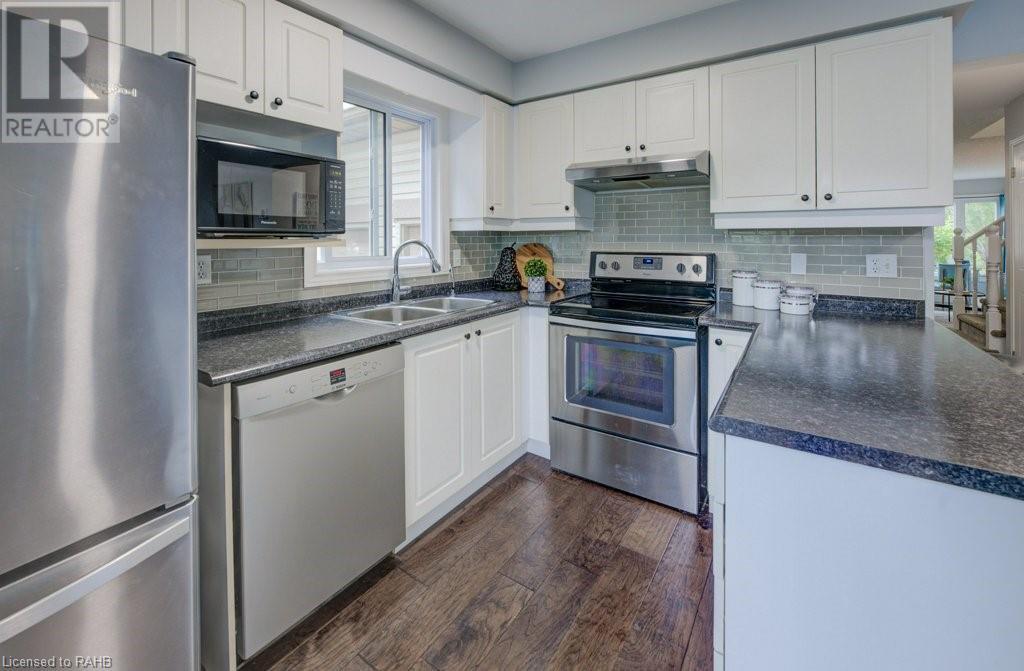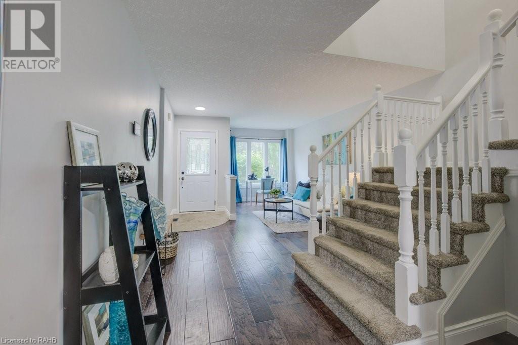 Welcome to this beautiful updated townhome in Waterloo’s desirable east end, excellently located in a quiet, family-friendly area with easy access to schools, shopping, transit, Highway 7/8 and parks.The main floor features a bright, open layout with large windows, fully equipped kitchen and Powder Room for convenience.Upstairs, you'll find three spacious bedrooms, including a primary suite with a walk-in closet.The double-deep, single-wide driveway with a full garage offers ample parking.The fully finished basement is perfect for use as Rec room, home office or kids playing area. Enjoy the outdoors in the exceptional backyard oasis with a stunning landscape design.It’s the perfect home for young families or professionals looking in the area. (id:55009)