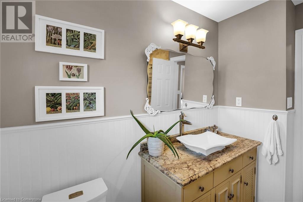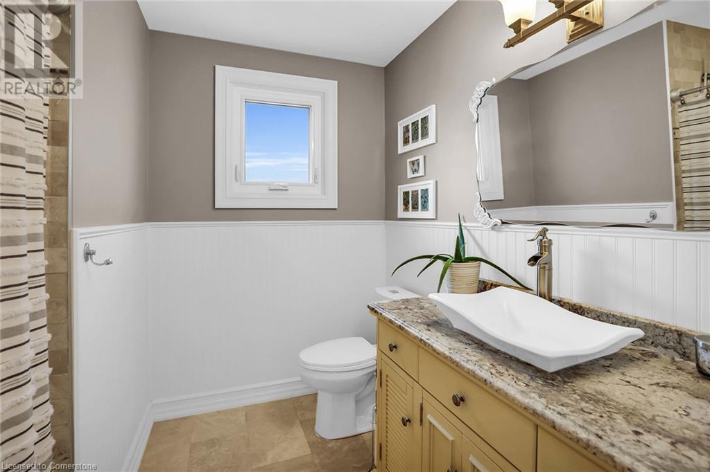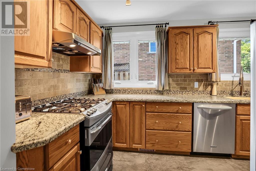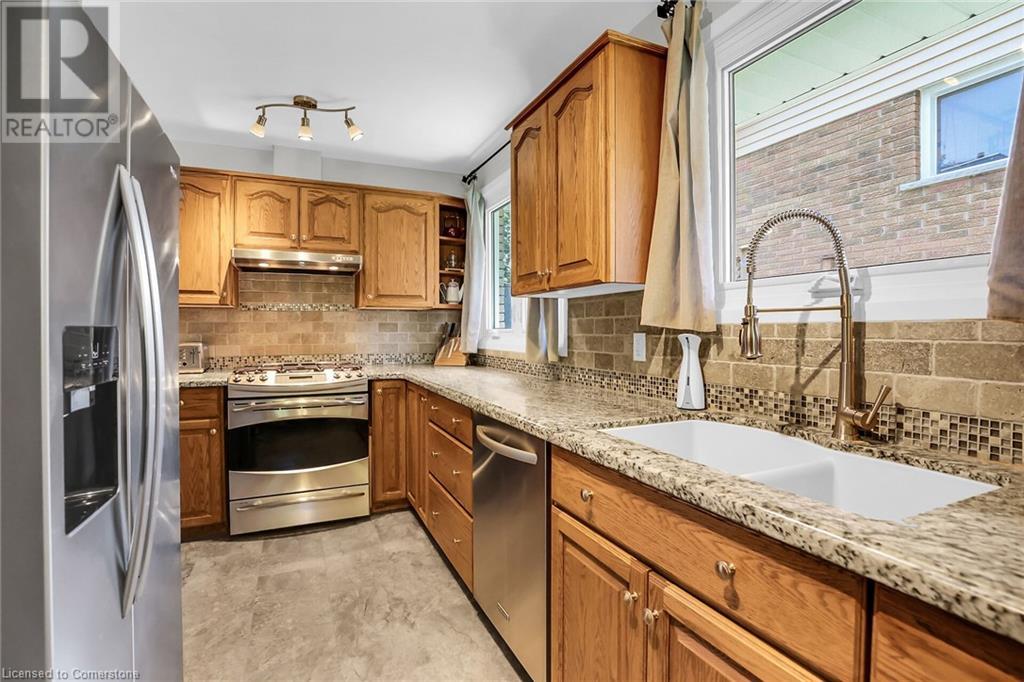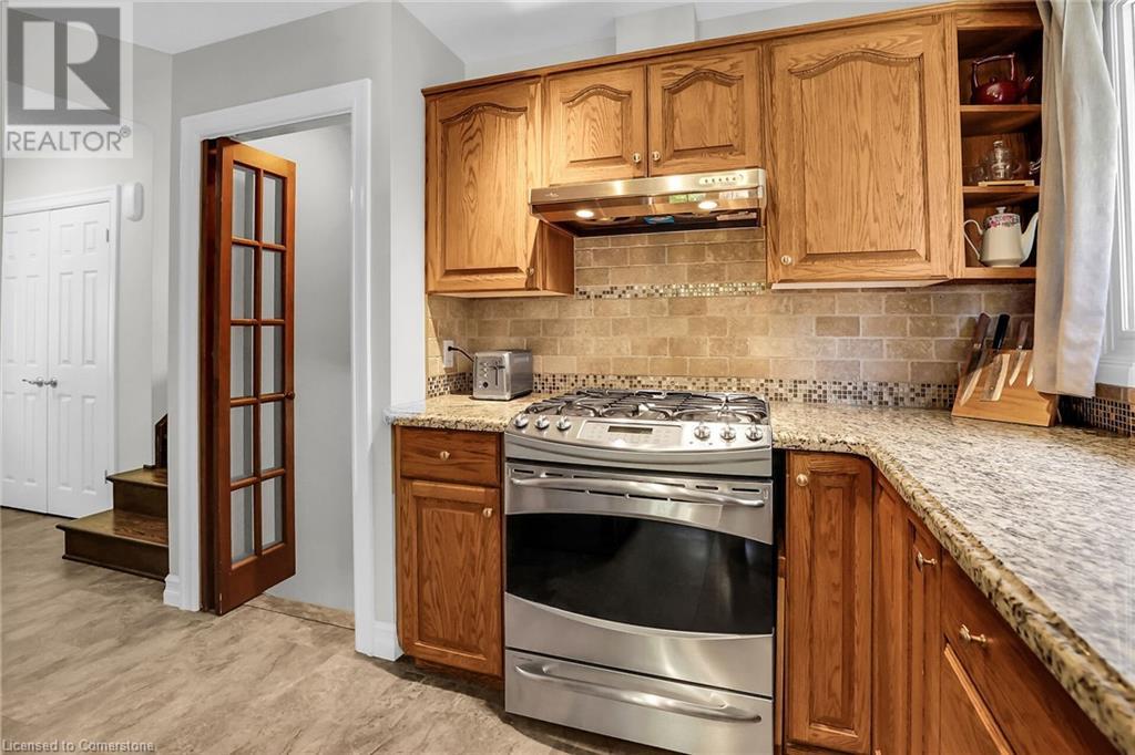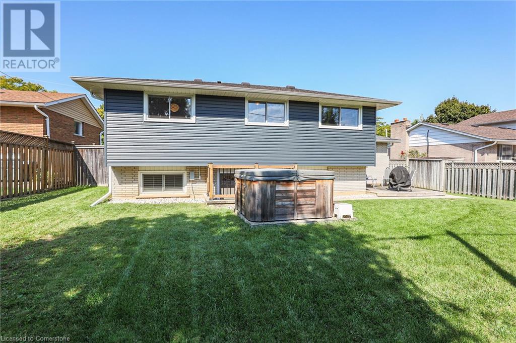 Nothing left to do but move-in! Pride of ownership is evident throughout this immaculate 3 level backsplit home. Over 1,600 sq.ft. of finished living space including the walk out level. Situated in a sought after neighbourhood, this 3 bed/2 bath home is close to schools, playgrounds, shopping & everything that downtown Beamsville offers. The private front porch welcomes you home and offers a quiet outdoor space to relax. The main floor is bright & open. Beautiful tile floors in the foyer, kitchen & dining room give way to gorgeous hardwood floors in the living room. The kitchen has been updated with stylish stone backsplash, granite countertop & stainless steel appliances including a dual fuel stove. Great work space and tons of room in the cabinetry. The three generous bedrooms are served by an updated 4 pc bathroom. No arguments over storage with double closets in the spacious primary bedroom. The family room on the lower level has full size windows with California shutters and a separate entrance. The handsome wood burning fireplace has a stacked stone front and reclaimed wood mantel. A custom built wall unit offers storage & a great place for the TV. This is a wonderful space to gather and relax. The convenient 3 piece bathroom has been updated with a glass door shower. Huge utility room/laundry. Outside, there is loads of space for kids and/or pets to run around in the fully fenced backyard. You can enjoy a soak in the hot tub or catch the sun on the deck. Natural gas hook-up is ready for your bbq. The perfect family home! (id:55009)