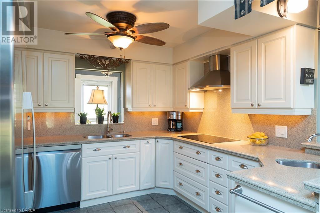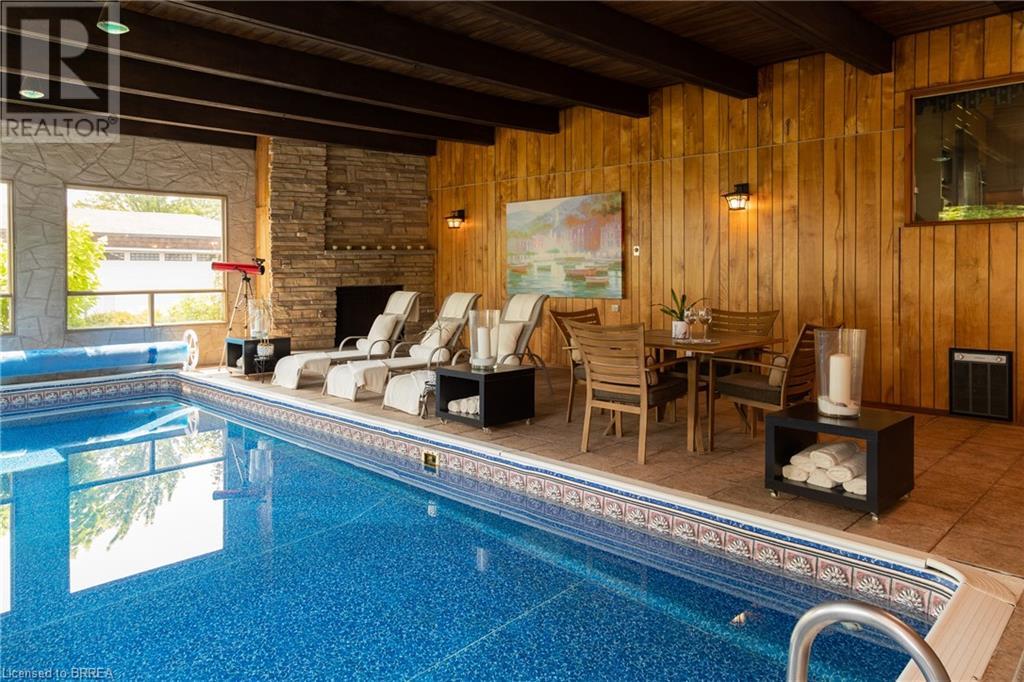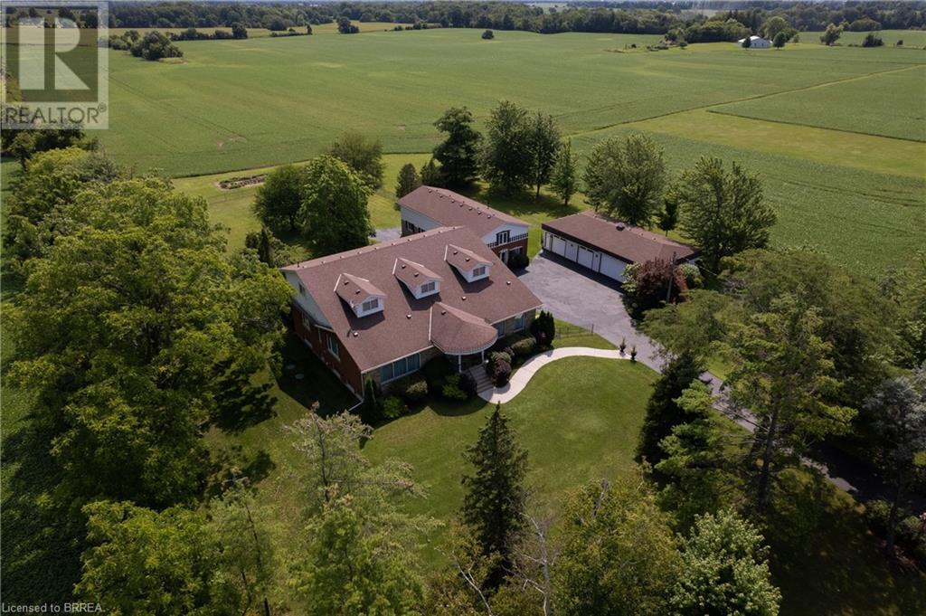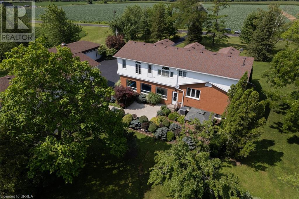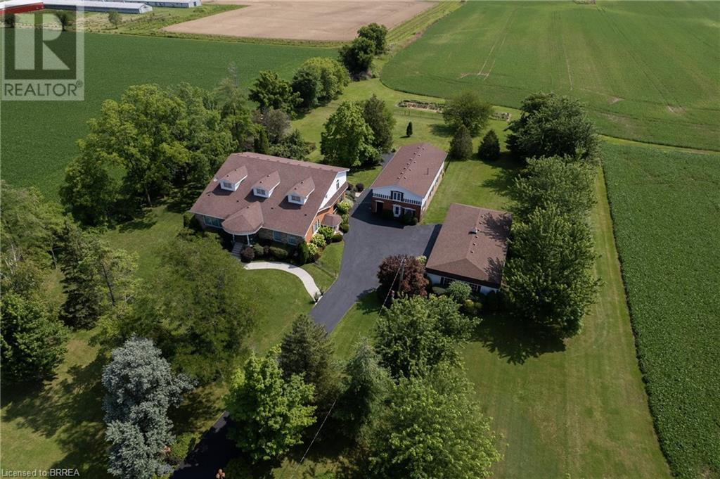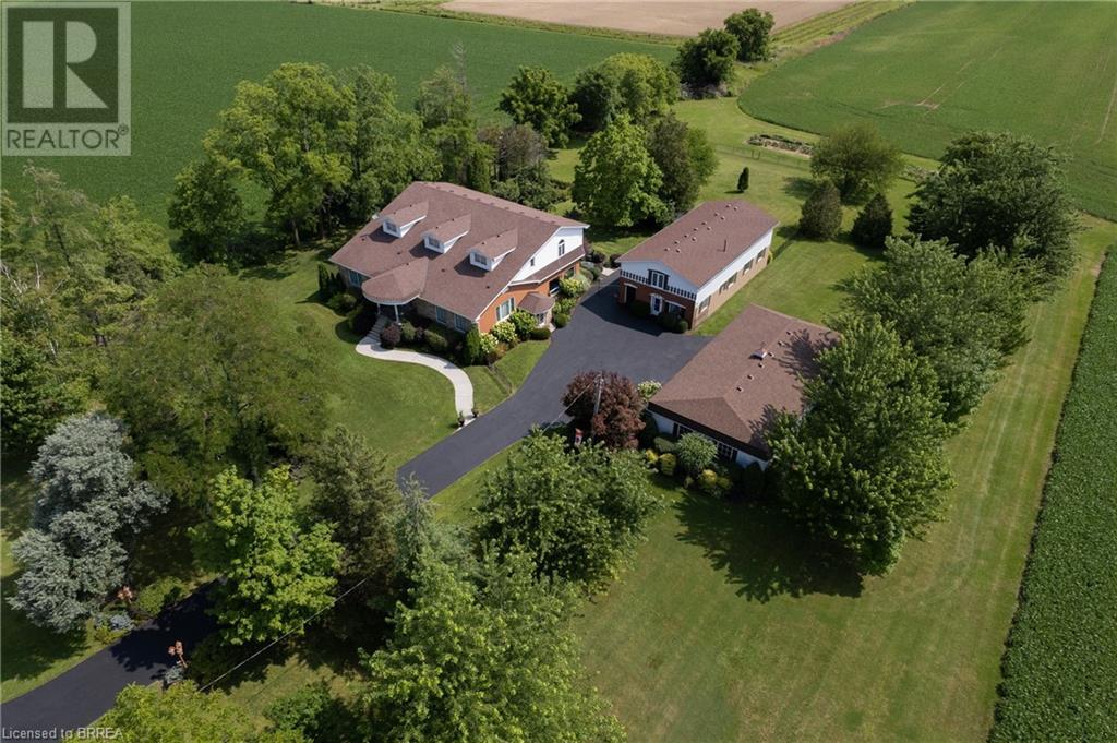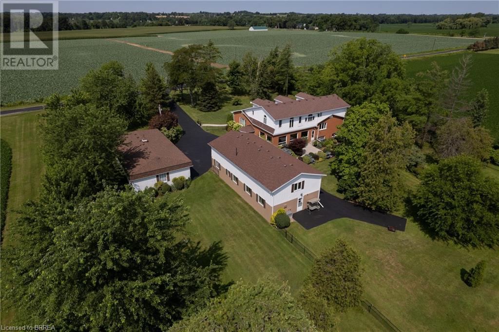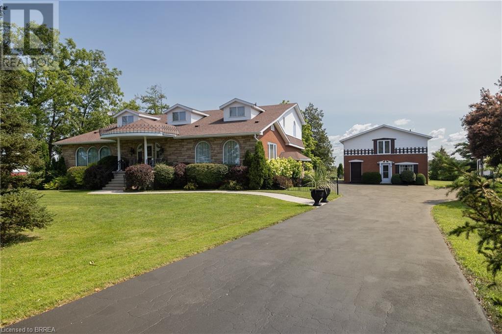 Spectacular multi-generational home with three living quarters, on a 1.86- acre lot in the countryside, and with two large outbuildings! Located on a very quiet paved road just outside of Oakland and Mount Pleasant and backing onto gorgeous farm fields (no close by neighbours), the meticulously maintained 1.5 storey home offers 4 spacious bedrooms with the primary on the main level and three on the lower level. Boasting three kitchens, a walk-up basement, sauna, wine tasting room, and very large principle rooms with the possibility of using the unfinished loft area as another bedroom or living quarters. The indoor/inground swimming pool is super cool and great for year-round use. Then there is the heated 25’ x 55’ detached workshop/showroom (with upper loft for storage and two-piece bathroom), perfect for a home business. There is also a 55’ x 28’ four+ car detached garage. The extra long, paved private driveway can accommodate many large vehicles. Tons of room for the kids and dog to run and play or stretch out with friends and family to watch both the stunning sunrise and sunsets from the front or backyard. Plenty of irreplaceable mature trees and professional landscaping around the property give extra privacy, shade and beauty. Located a stone’s throw from beautiful Oakland Ponds and a short commute to Hwy 403 access. Rogers high speed fibre optic internet available. So much to offer here for the extended family, entrepreneur, and business owner. *Potential to purchase an adjoining 8 acres as a package deal. Book your private viewing today and see why life is better in the countryside. (id:55009)