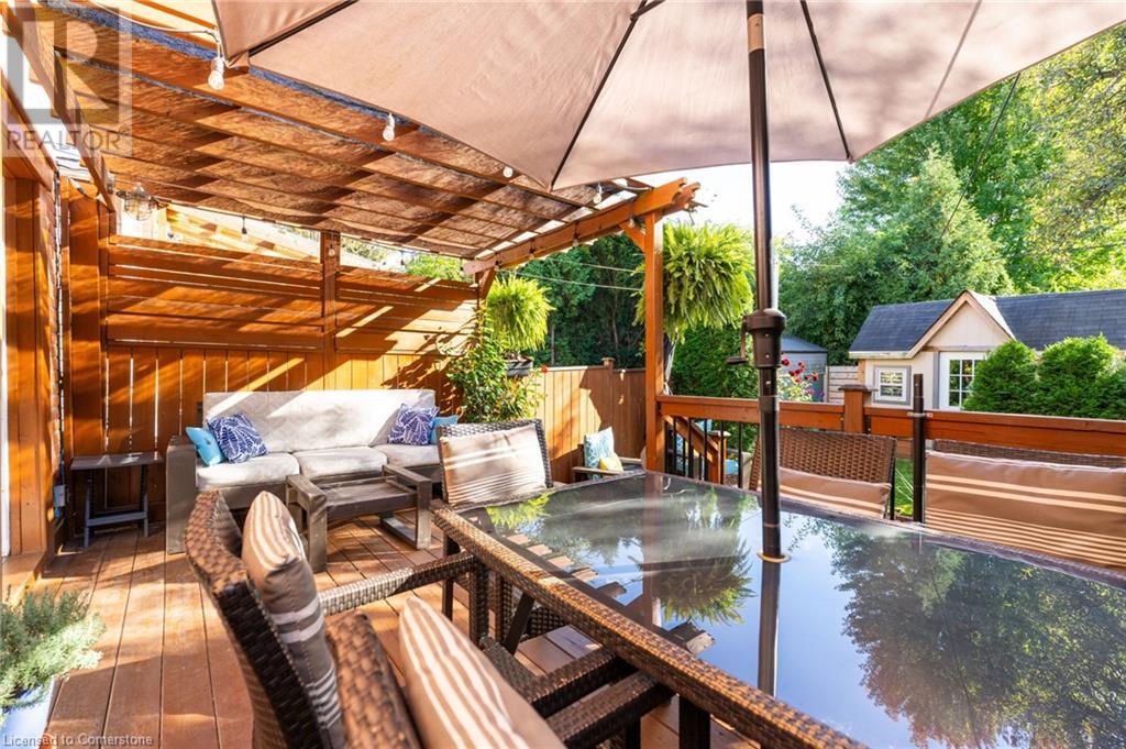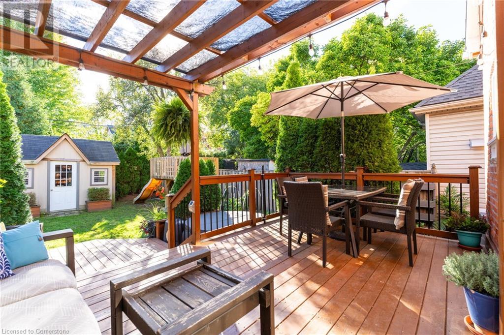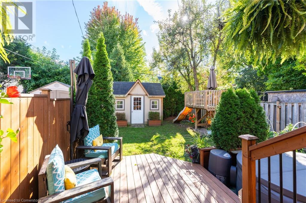 Welcome to a home where community and convenience blend effortlessly! Nestled in an ideal location, this property is just a short walk to the vibrant Locke Street, great schools, scenic trails, and peaceful parks. You'll love the friendly neighborhood and sense of community, especially being on a quiet, dead-end street with a playground right at the end—perfect for little ones to enjoy! Families will appreciate the proximity to Earl Kitchener, home to a fantastic French Immersion program. The heart of the home, the extra-large kitchen, offers a spacious island, plenty of storage, and easy access to the backyard, making it a wonderful spot for gathering and creating memories. The open living and dining area, with its cozy gas fireplace installed in 2017, is perfect for hosting family and friends. A convenient two-piece bathroom rounds out the main floor. Upstairs, you'll find a generously sized primary bedroom and a spacious second bedroom, along with a versatile third room that could serve as a bedroom or a home office. The expansive attic, accessible from the third bedroom, offers exciting potential for additional living space. The basement provides excellent storage options and a rec room for added flexibility. Recent updates include repointed brickwork (2020), a spacious back deck (2015), a handy shed (2013), and modernized eavestroughs, soffits, and downspouts (2021). The home’s lead pipe was removed in 2012, and it was taken back to the studs prior to the current owners, with updates to windows, wiring, and plumbing throughout. This is more than a house—it’s a place where memories are made! RSA. (id:55009)