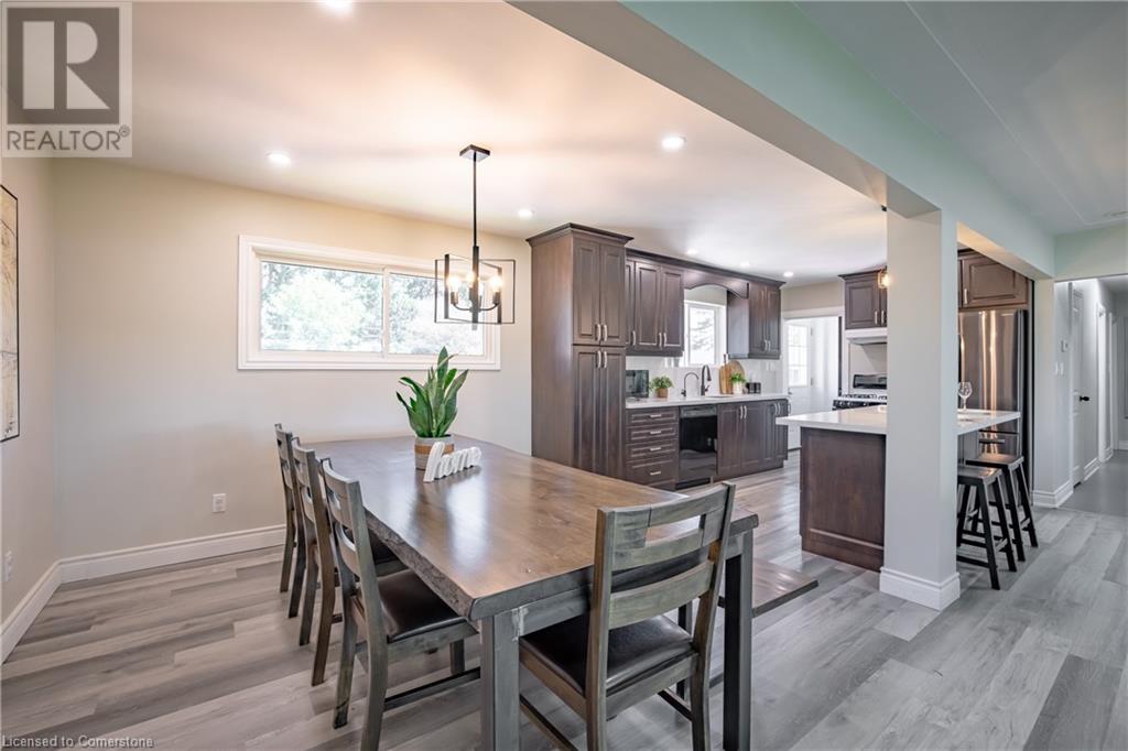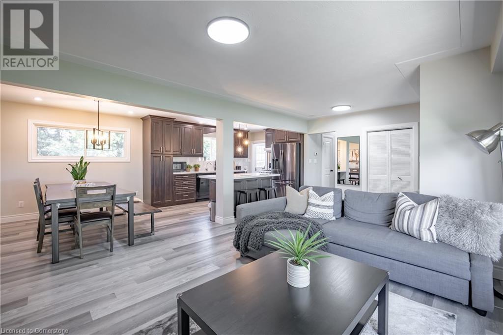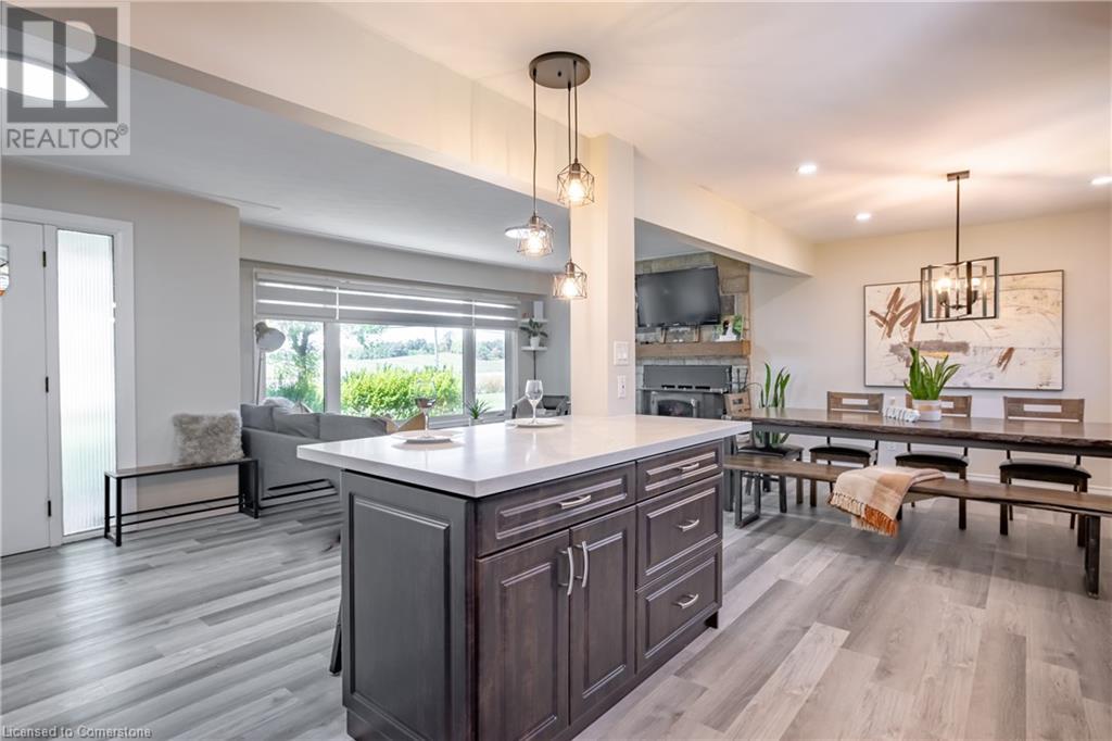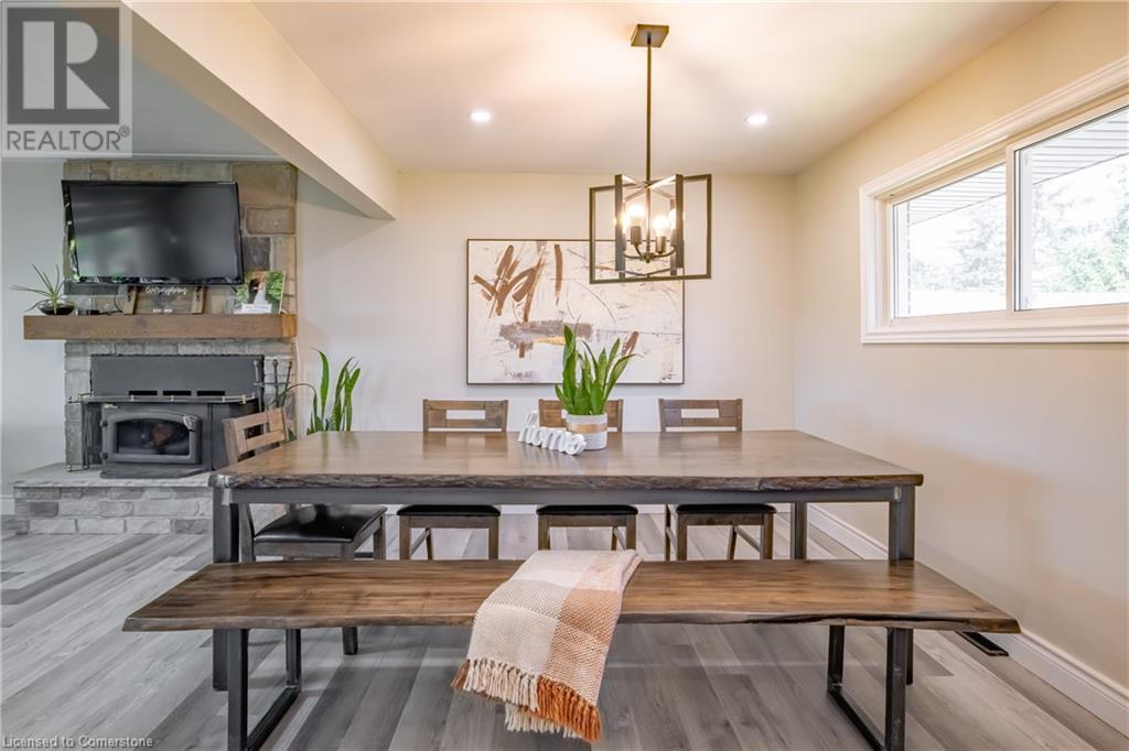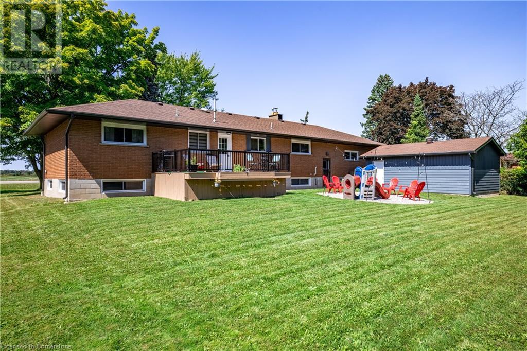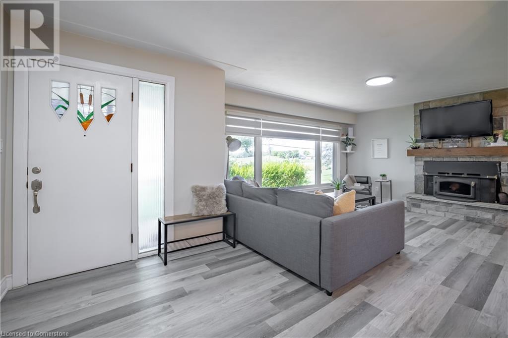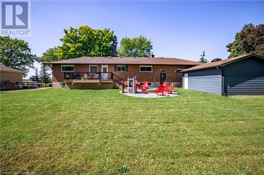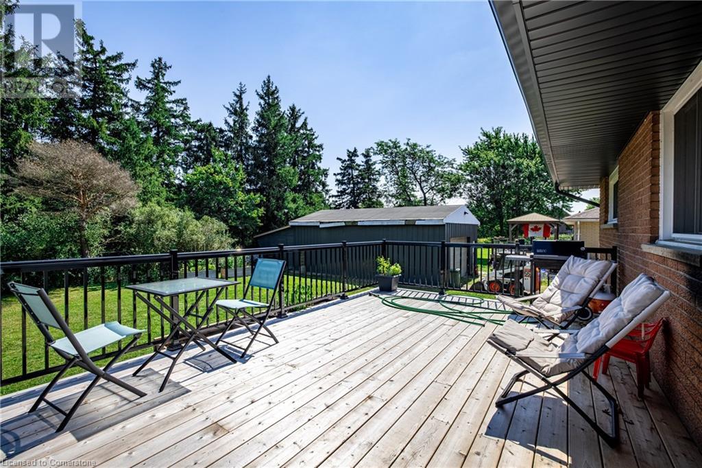 ESCAPE TO COUNTRY LIVING JUST MINUTES FROM ALL CITY CONVENIENCES!! This all-brick bungalow, set on a sprawling 100 x 188 ft lot, combines rustic charm with modern elegance. Spanning 1,269 sqft, the main level boasts a bright, open-concept design, featuring a custom kitchen complete with high-end finishes. The spacious dining area flows into a sunlit living room, where a cozy wood-burning fireplace invites you to unwind. The home offers three generous bedrooms and a stylish new 4-piece bath with a walk-in glass shower. A separate entrance leads to the finished basement, showcasing a large rec-room with a double-sided fireplace, a versatile 4th bedroom, a second modern 4-piece bath, and ample storage space. This home has recently been completely transformed. Updates include: new windows and some doors, soffit and facia, front railings, furnace, AC, water heater, electrical, plumbing, high-end water filtration system, new kitchen and baths, flooring, LED potlights and light fixtures, wood burning fireplace and stone mantel, freshly painted, cedar deck and so much more!! Nothing to do but move in!! The attached double-car garage, with a bonus detached rear workshop, is perfect for the hobbyist. Outside, enjoy the serene, private yard from your new 12 x 18 cedar deck—a perfect spot for relaxing or entertaining. This is your opportunity to enjoy the best of both worlds! Excellent location close to all amenities, just seconds to highway access. (id:55009)
