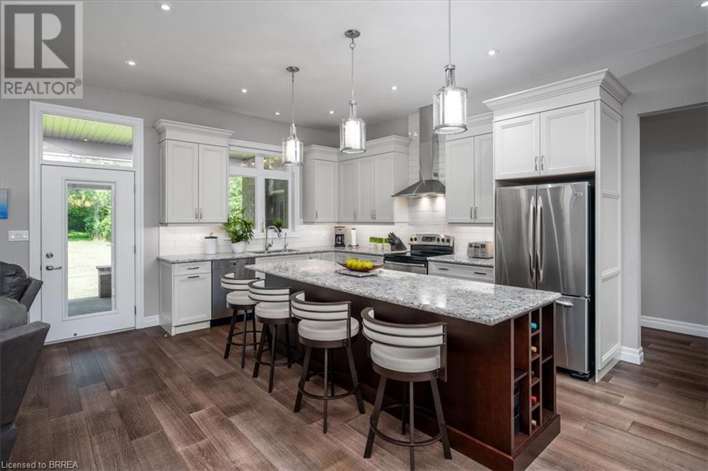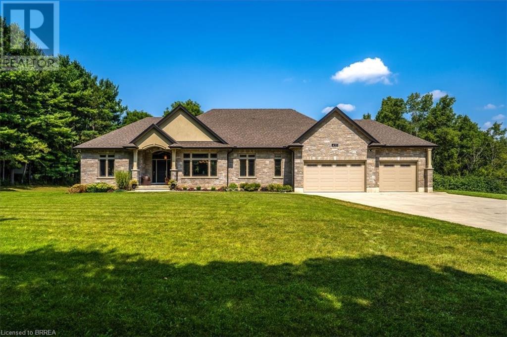 Welcome to St. George and this beautiful custom built home at 433 McLean School Road. Surrounded by mature trees and lush lawns, the curb appeal of this home is undeniable. Classic stone exterior and meticulously manicured gardens welcome you to comfortable, luxurious living at its finest. The open concept living/dining areas feature large windows filling the area with beautiful sunshine. Floor to ceiling stone fireplace and convenient access to a beautiful, covered patio provides a pleasant, relaxing backyard oasis. Custom kitchen with classic white cabinetry, granite countertop and high-end stainless-steel appliances. The purposefully designed walk-in pantry is sure to please with an abundance of shelving, custom built in microwave and a counter level beverage fridge. The expansive kitchen island with built in wine rack and customized shelving opens up into the family room making this an ideal space for family gatherings. An independent dining room with coffered ceiling will guarantee dinner party success. The beautifully designed primary bedroom features a massive walk-in closet with custom built-ins, spa like ensuite with soaker tub, glass walk in shower and double vanity. Two additional bedrooms, a separate 4 pc bath and expansive laundry room complete the main floor. Professionally finished lower level offers lots of additional living area. Two bedrooms, ample closets plus a 3 pc bath. Separate walk up entrance makes it perfect for potential granny/inlaw suite and let’s not forget the oversize 3 car garage. This home is moments from the McLean School Road Loop and its scenic walking trails, and is conveniently located with easy access to Cambridge, Brantford and Paris. This home has impressive features and must be seen to be truly appreciated. Book your viewing today and make this house your new home. (id:55009)