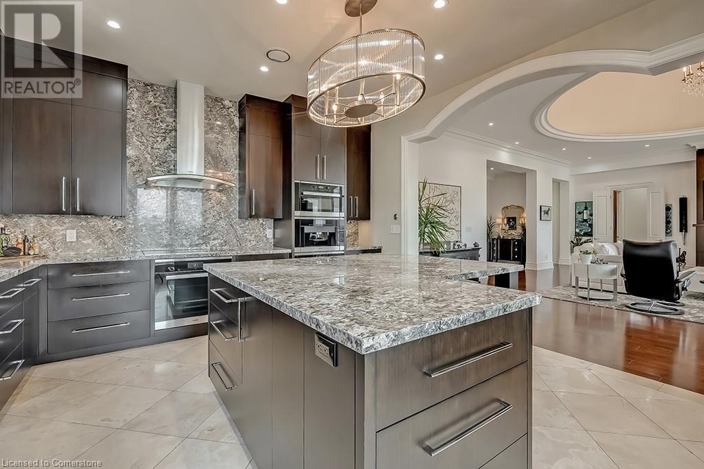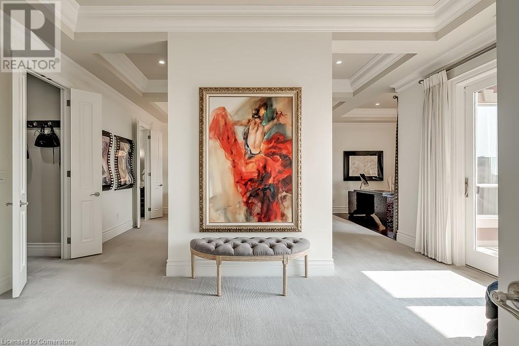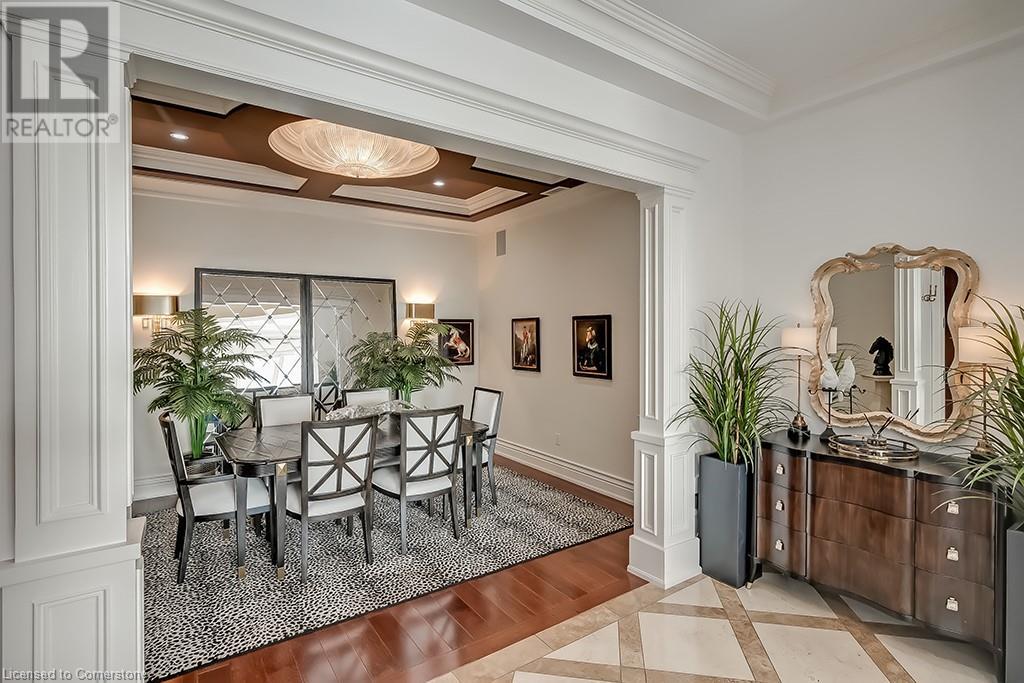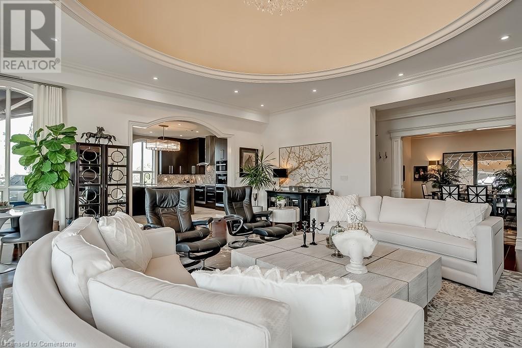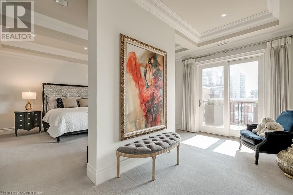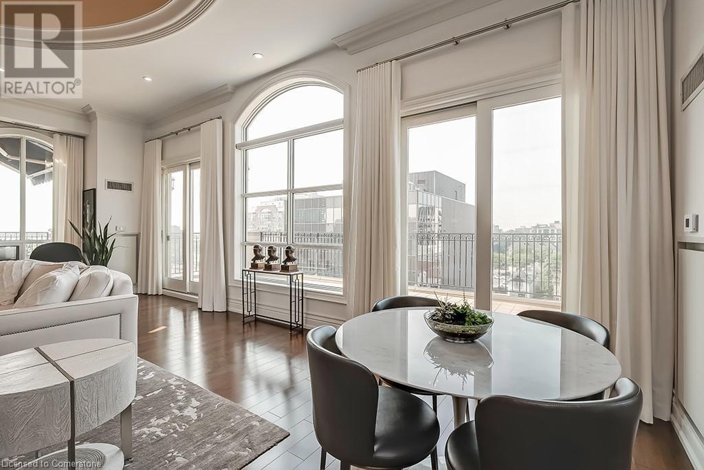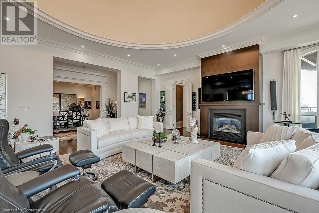 $2,512.48 MonthlyUNCOMPROMISING LUXURY PENTHOUSE - This stunning one-of-a-kind suite in downtown Burlington, is located in the private 13-suite prestigious boutique condo. The well-appointed suite features 3-bed, 2.5-bath, approx 3168 sqft with 4-private terraces with heated floors, each with views of the lake and downtown. Enter the double entry doors into the foyer with marble floors, you’re greeted by the expansive Great Room with 21ft high dome ceiling with crystal chandelier and gas fireplace. Chef inspired kitchen with built-in Miele appliances, custom cabinetry, island seating & sliding patio doors leading to terrace. Separate formal dining room with decorative ceiling detail and chandelier. The 1st bedroom features sliding patio doors to the private terrace, walk-in closet and 2pc ensuite. Down the hall is the 2nd bedroom, laundry room & gorgeous 4pc bathroom with soaker tub. The primary bedroom is a sanctuary featuring his and her walk-in closets with custom built-ins, spa inspired bathroom with large shower, separate water closet, lounge area and walkout to a private terrace. This suite is flooded with natural light, featuring 11ft ceilings, hardwood and marble flooring and integrated Bang & Olufsen sound system. 2 underground parking spaces & locker. The perfect alternative to the large luxury home, ideal for those downsizing. Steps to fine dining, shops, Performing Arts Centre, Spencer Smith Waterfront Park, fitness, hospital QEW, 403, 407 and GO. *Dogs not permitted. (id:55009)