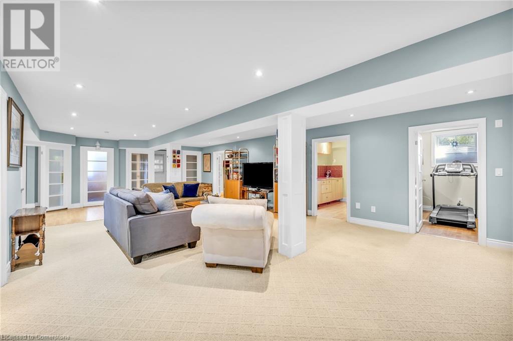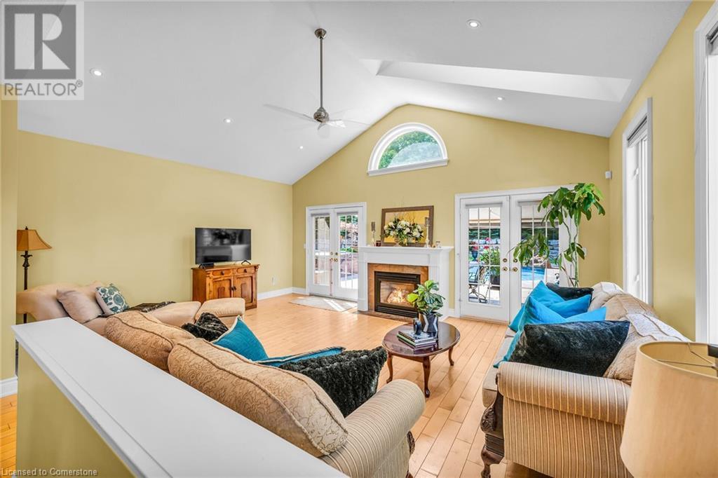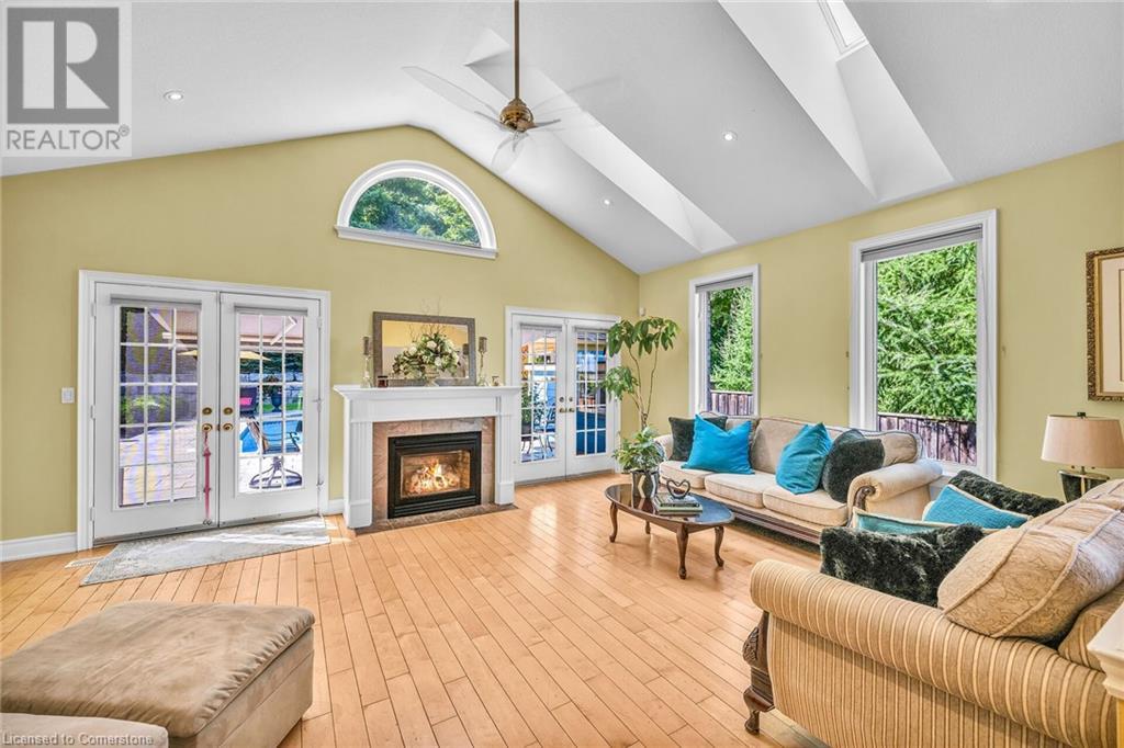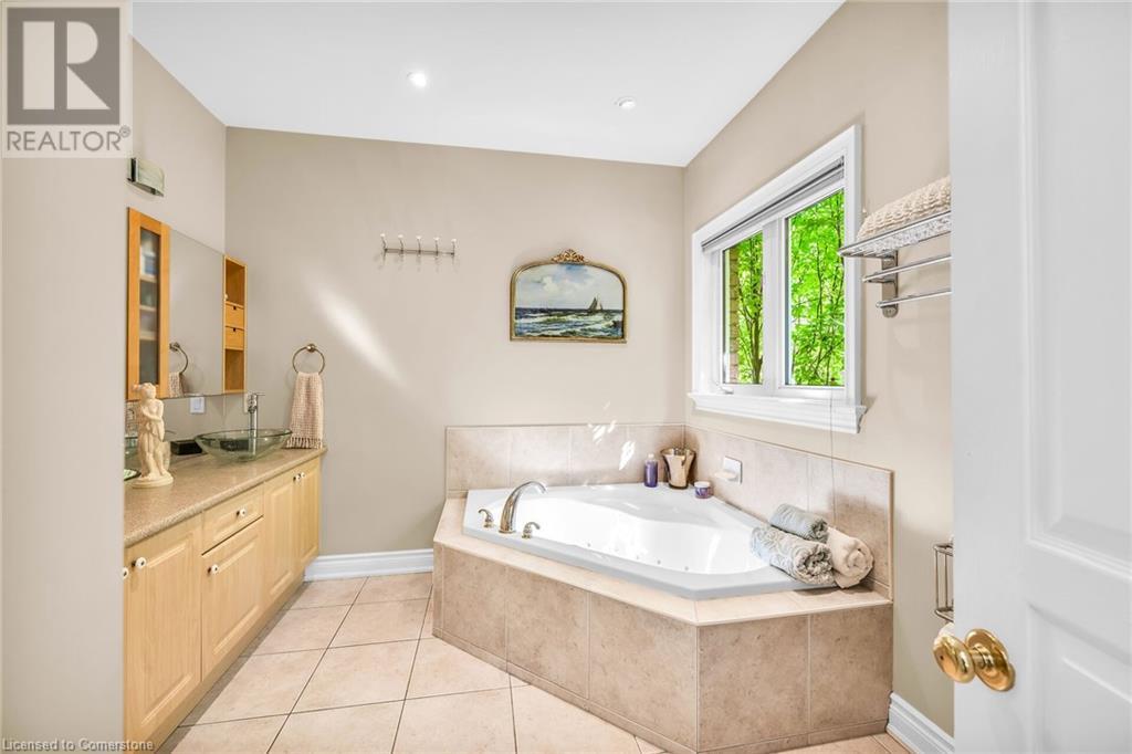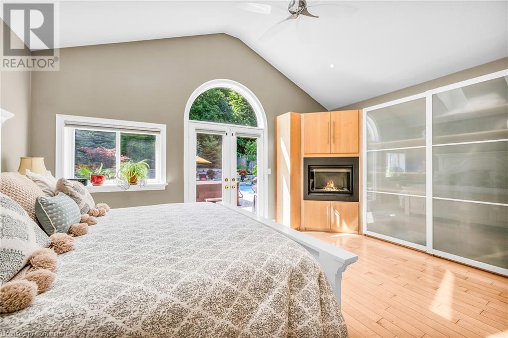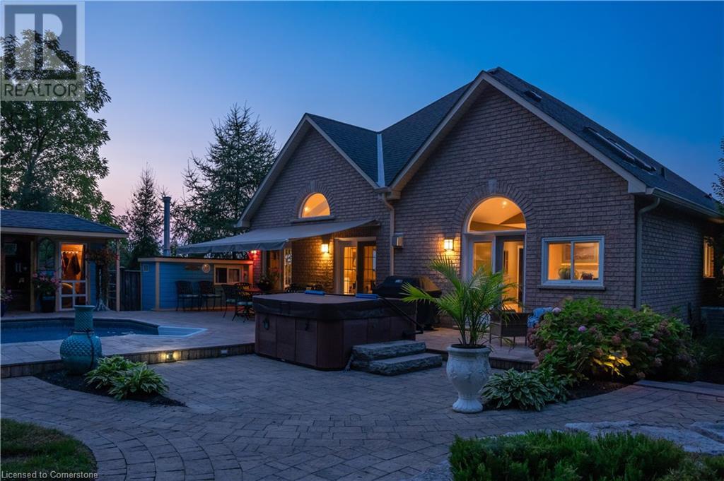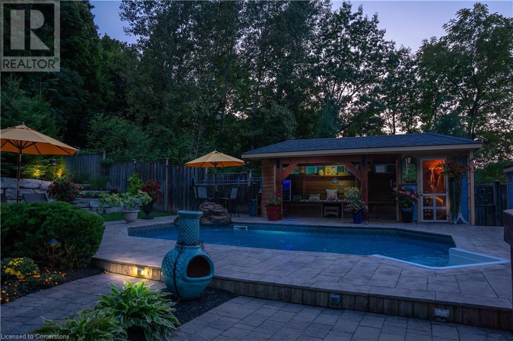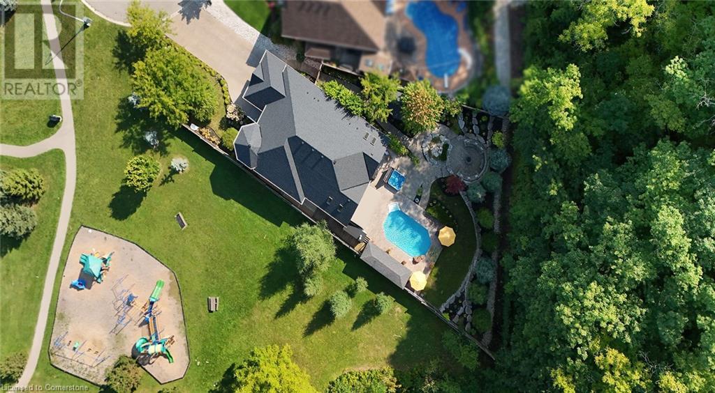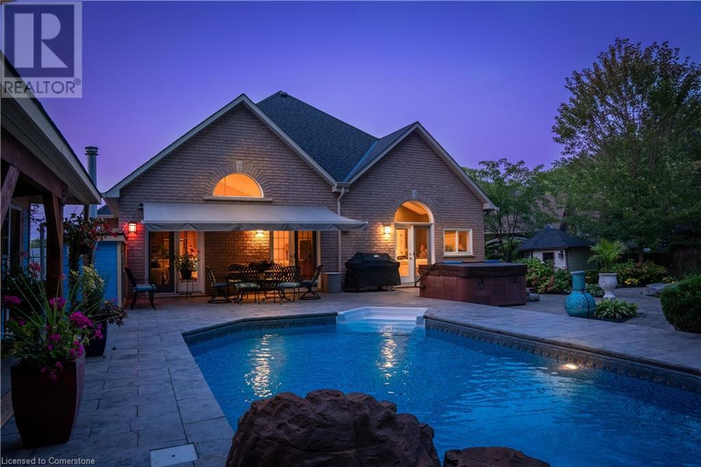 MAGNIFICENT, CUSTOM-BUILT 4 BEDROOM HOME with 4140 SQFT of beautifully finished living space with in-law accommodation or nanny suite w/separate entrance. Located on large pie-shaped property backing onto picturesque woodlands & Bruce Trail. Situated on prestigious cul-de-sac and park among other luxury homes. Complete with manicured grounds and backyard oasis fit for royalty! Inground saltwater pool w\waterfall, pool cabana & change house, hot tub, expansive stone patios, outdoor gas fireplace surrounded by built-in seating. Featuring gourmet kitchen w/top-of-the-line appliances, abundant cabinetry, granite counters & stainless steel backsplash. Family room open to kitchen w/soaring vaulted ceiling, skylights & 2 double French doors to breathtaking backyard. Stately dining room off kitchen, spacious primary bedroom w/glass doors leading to patio, gas fireplace, rain-sensing skylights, 2 walk-in closets & spa-like ensuite bath. Open staircase to ground level in-law suite & ensuite privilege bath, 2nd family room & kitchenette, exercise room, craft room, laundry room & workshop. 2.5 car garage w/large storage loft. OTHER FEATURES: SS appliances, Wolfe gas stovetop, 2 built-in wine fridges, c/air, c/vac, washer/dryer (new 2023), custom window blinds, sprinkler system & dramatic outdoor lighting, 2 gas & 2 electric fireplaces, built-in water fountain. New roof shingles '22, new furnace '20, new pool liner '23, 200 amp service, 3.5 baths. Long stamped concrete driveway for 6 cars. 5 mins to QEW, fine dining & vineyards. This property is a dream come true!' (id:55009)