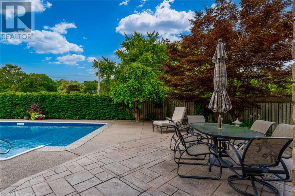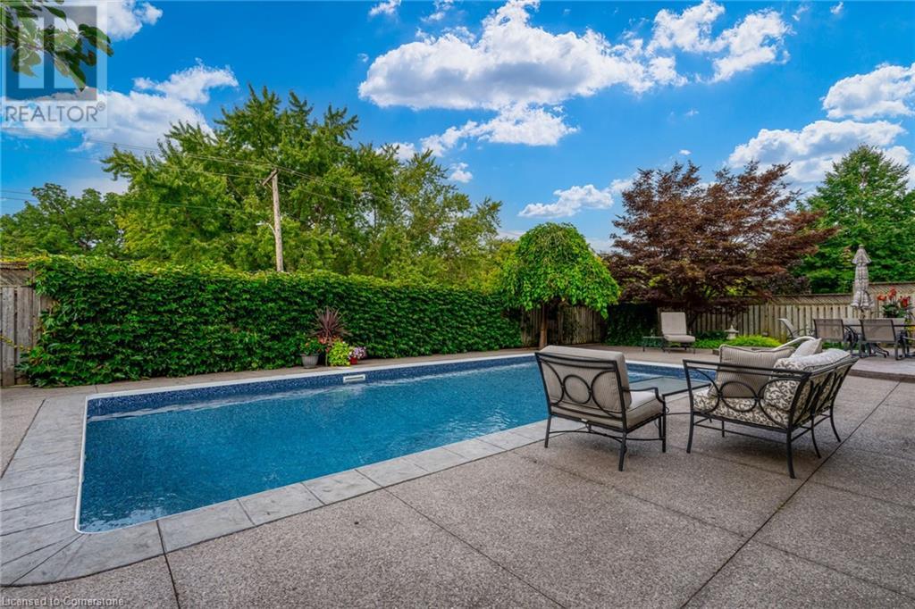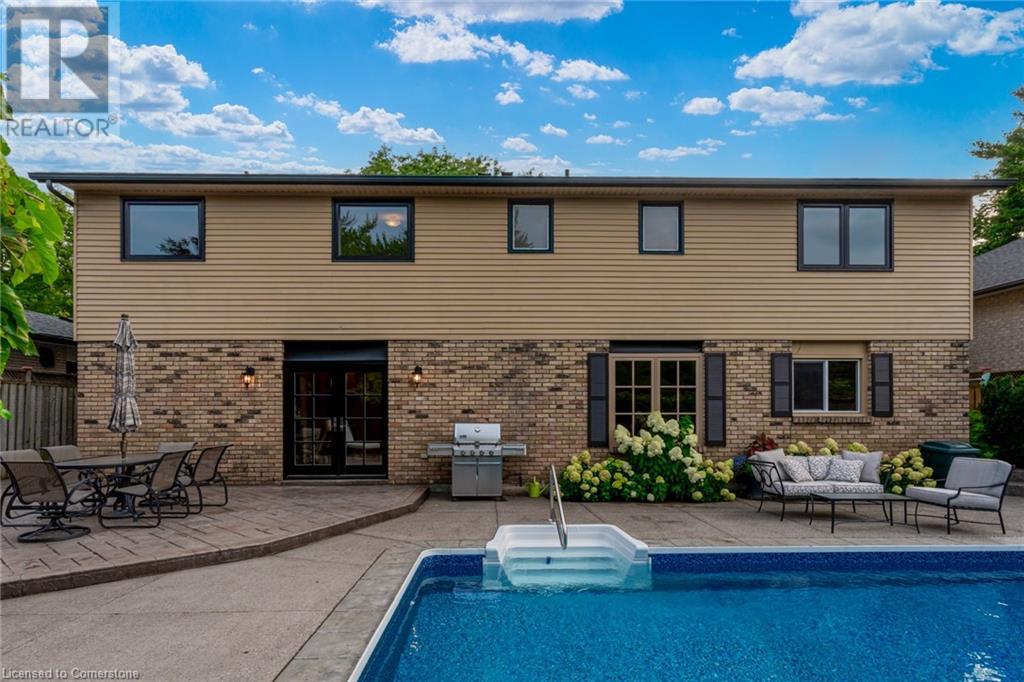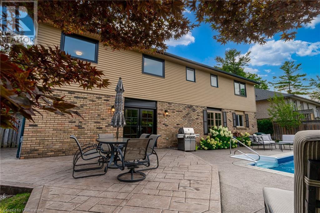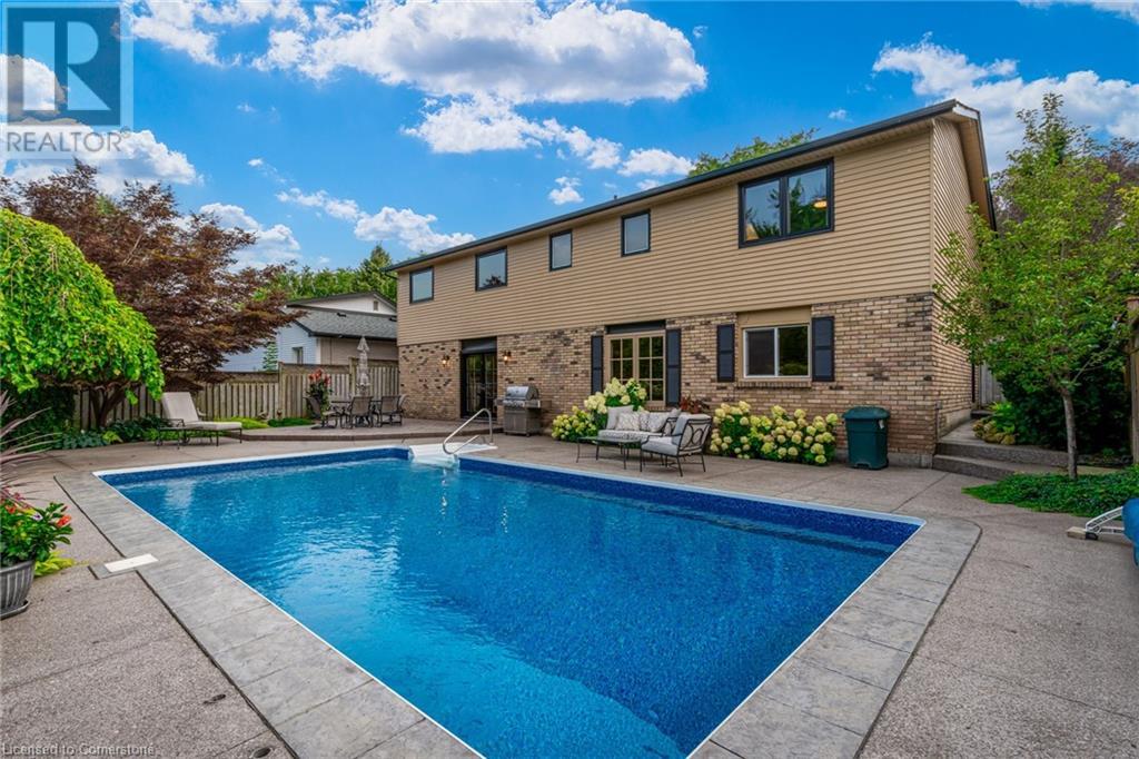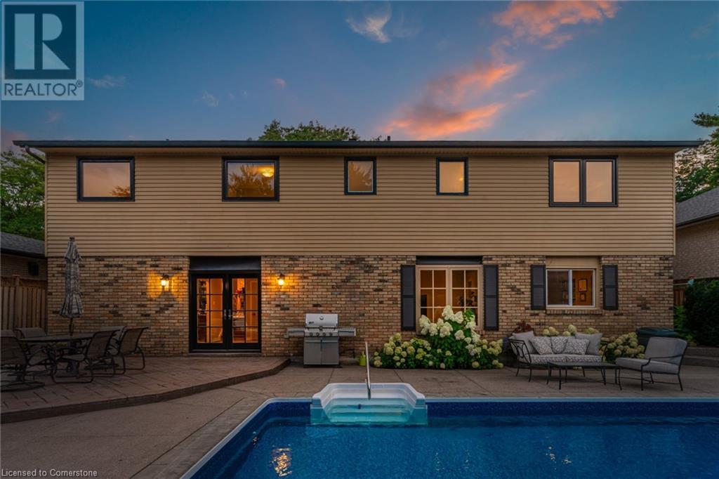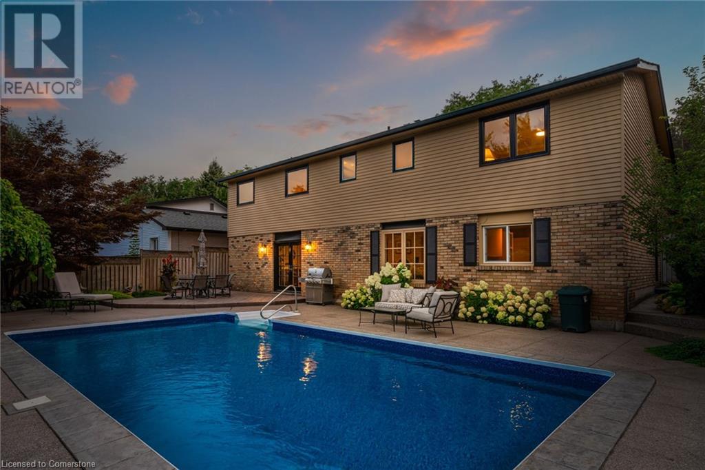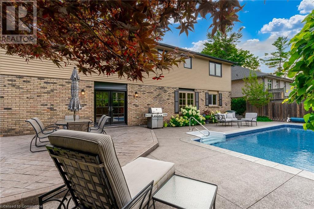 Charming 3-level backsplit in the SOUGHT-AFTER Shoreacres neighbourhood! This 3+1 bedroom, 2.5 bathroom home has over 2100 sq ft, in-ground pool and impeccably maintained by the original owner! This home marries past & present wonderfully as all the updates that have been done still leave room for so much charm. The main floor features a two-toned kitchen with granite countertops, stainless steel appliances, glass pocket doors & is adjacent to the dining area with hardwood floors and wainscoting. A sunken living room with gorgeous high ceilings & a cozy double-sided gas fireplace adding the perfect ambience to this space, the other side of the fireplace can be enjoyed in the family room which spans the entire back of the home & features a double glass French door walkout to the backyard. This level also features a servery/bar off to the right, with a wine fridge, bar fridge, custom black cabinetry with a rich granite countertop, & stainless steel sink. This level is complete with a powder room with a custom vanity and an office that has the potential to be used as a fourth bedroom. Going up the extra wide wood staircase the second level offers 3 spacious bedrooms, each with updated windows and hardwood floors, 5-piece bathroom with double vanity & pot lights. At the end of the hallway sits the primary bedroom, with a 3-piece ensuite & 3 closets. The basement is partially finished with vinyl flooring in the laundry room with added storage, pot lights and recreation space. The exterior of the home has been wonderfully planned, a Japanese Maple tree, beach tree, pot lights & recently painted siding add to the curb appeal, the backyard features a patterned concrete patio & continues to a pool bordered with exposed aggregate, three lounge areas, surrounded by manicured gardens & has North, East & South exposure for sun all day! All of this property sits in the esteemed Shoreacres neighbourhood, close to Lake Ontario, all amenities & all major highways. (id:55009)