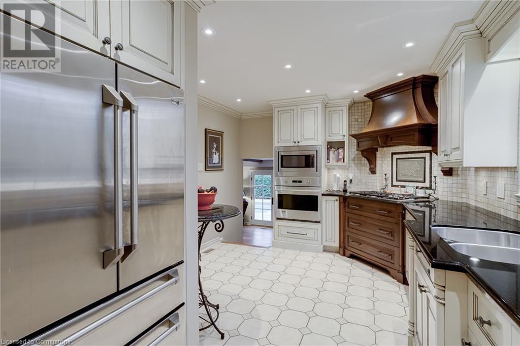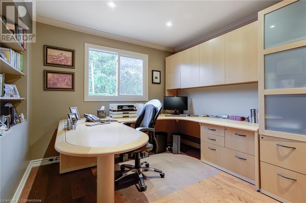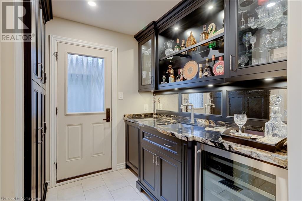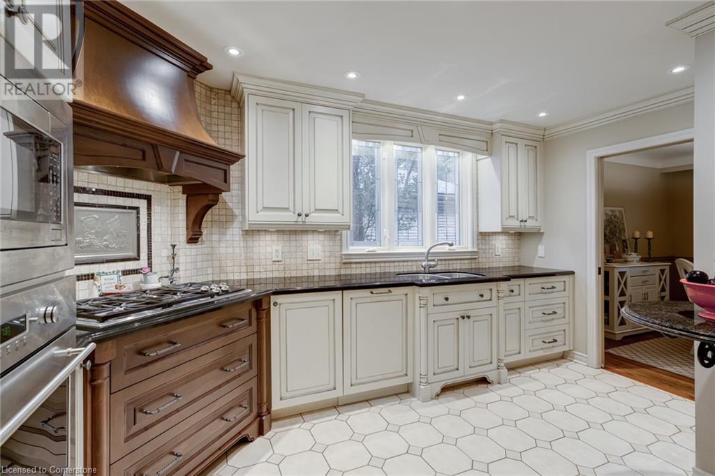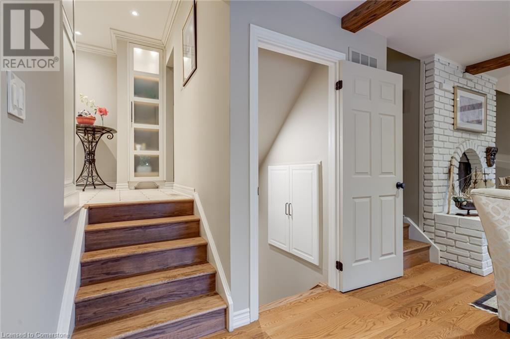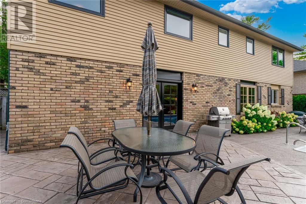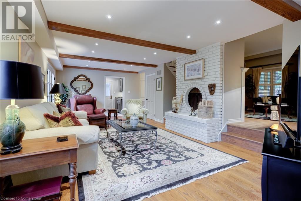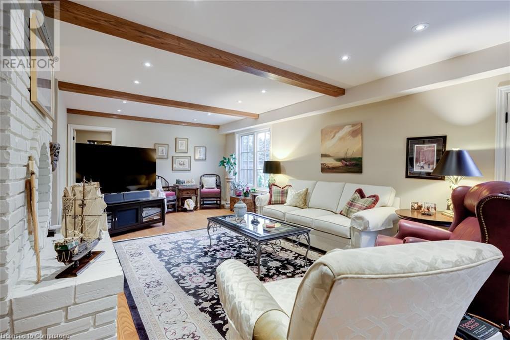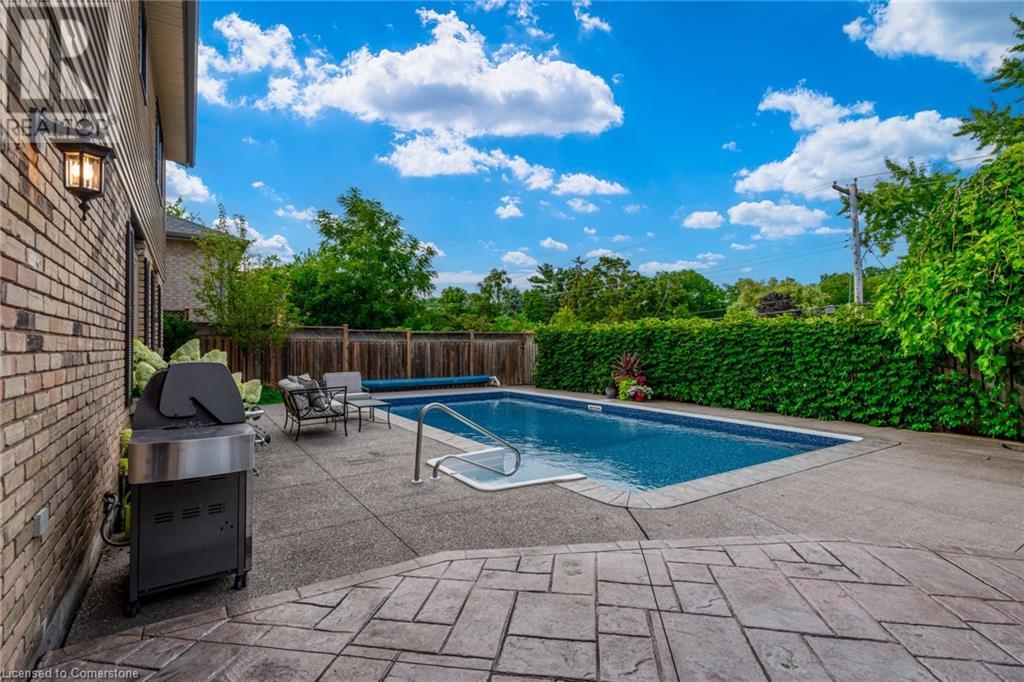Charming 3-level backsplit in the SOUGHT-AFTER Shoreacres neighbourhood! This 3+1 bedroom, 2.5 bathroom home has over 2100 sq ft, in-ground pool and impeccably maintained by the original owner! This home marries past & present wonderfully as all the updates that have been done still leave room for so much charm. The main floor features a two-toned kitchen with granite countertops, stainless steel appliances, glass pocket doors & is adjacent to the dining area with hardwood floors and wainscoting. A sunken living room with gorgeous high ceilings & a cozy double-sided gas fireplace adding the perfect ambience to this space, the other side of the fireplace can be enjoyed in the family room which spans the entire back of the home & features a double glass French door walkout to the backyard. This level also features a servery/bar off to the right, with a wine fridge, bar fridge, custom black cabinetry with a rich granite countertop, & stainless steel sink. This level is complete with a powder room with a custom vanity and an office that has the potential to be used as a fourth bedroom. Going up the extra wide wood staircase the second level offers 3 spacious bedrooms, each with updated windows and hardwood floors, 5-piece bathroom with double vanity & pot lights. At the end of the hallway sits the primary bedroom, with a 3-piece ensuite & 3 closets. The basement is partially finished with vinyl flooring in the laundry room with added storage, pot lights and recreation space. The exterior of the home has been wonderfully planned, a Japanese Maple tree, beach tree, pot lights & recently painted siding add to the curb appeal, the backyard features a patterned concrete patio & continues to a pool bordered with exposed aggregate, three lounge areas, surrounded by manicured gardens & has North, East & South exposure for sun all day! All of this property sits in the esteemed Shoreacres neighbourhood, close to Lake Ontario, all amenities & all major highways. (id:55009)
