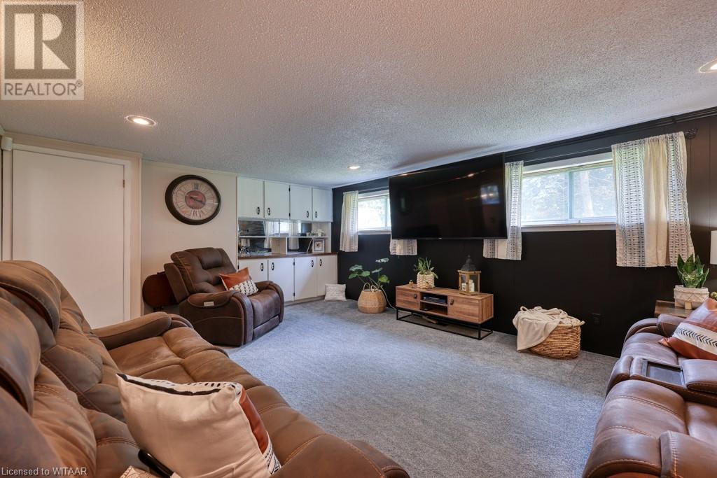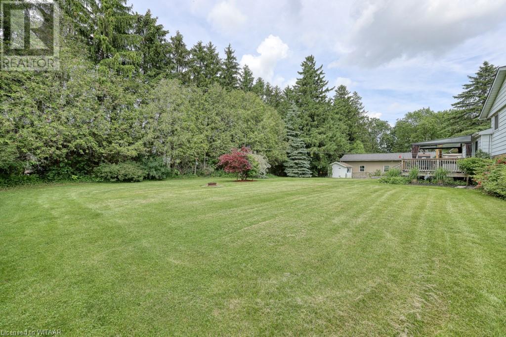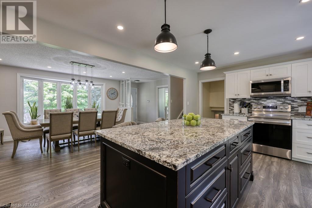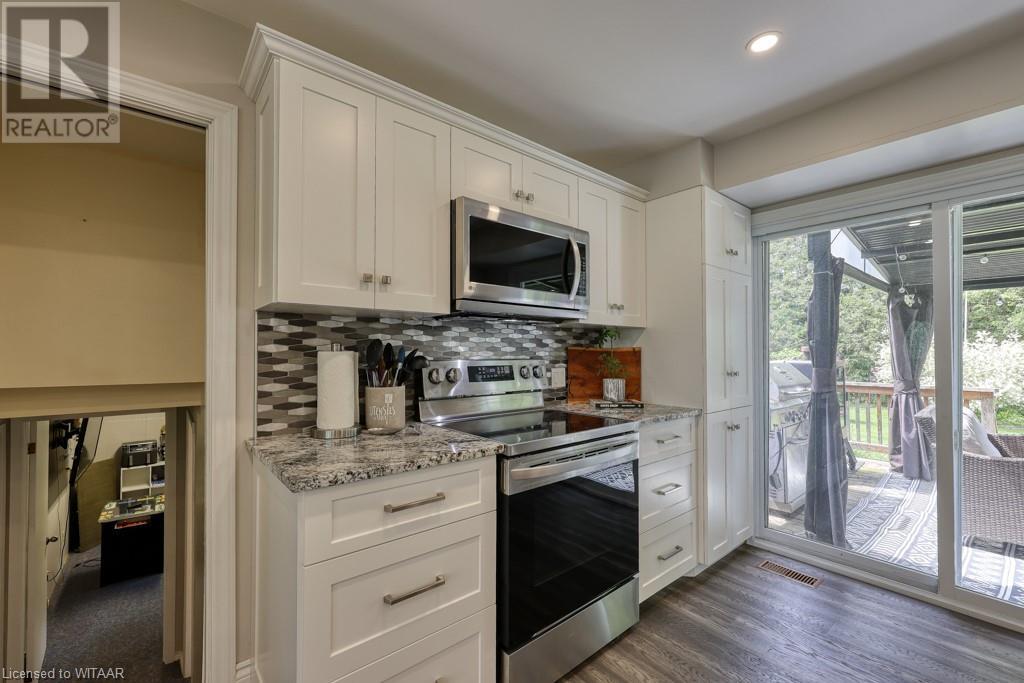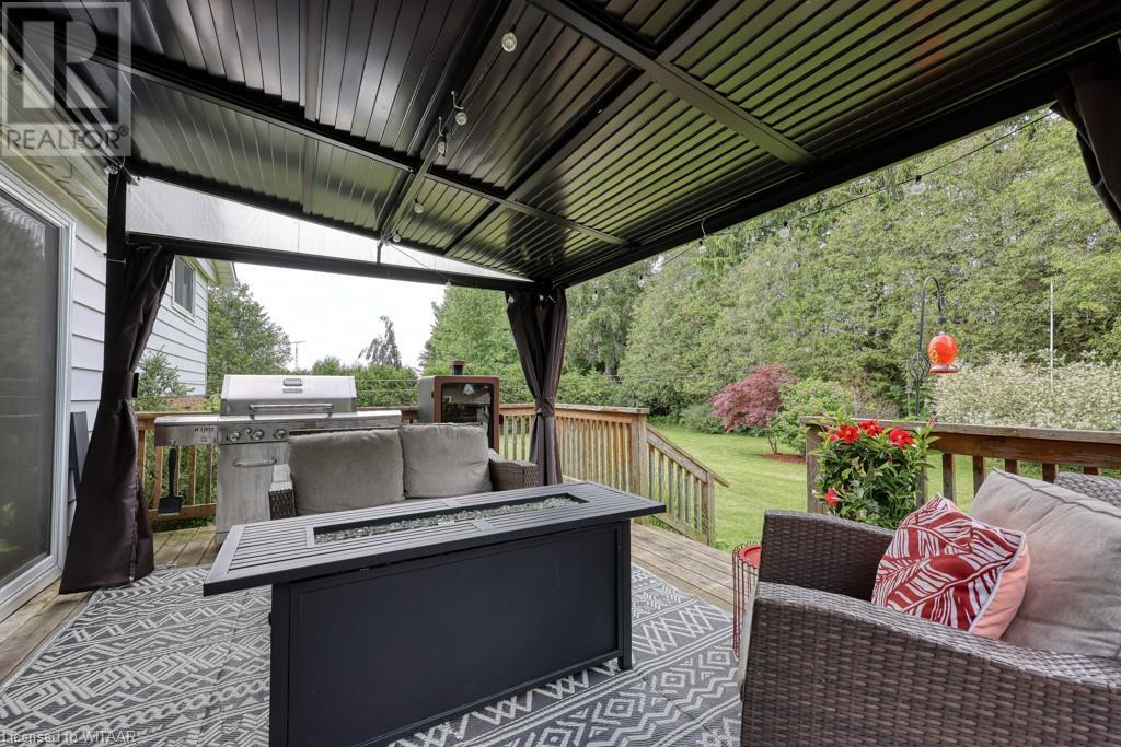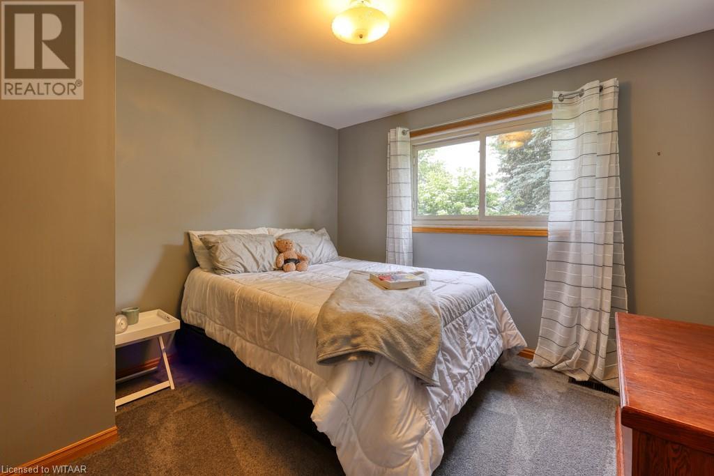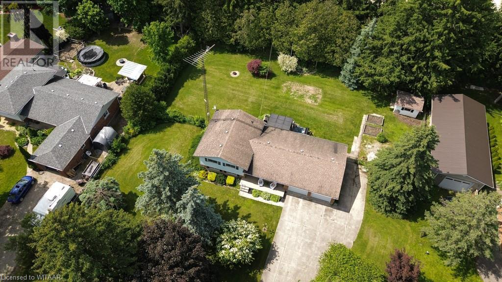 Peaceful half acre property with panoramic views! A scenic seldom traveled, tree-lined street on the edge of town leads to this serene setting & pristine 3+1 bedroom, 2 bath side split with over sized 2 car garage. Here, you’re still connected to all amenities. Mere minutes to 401 with the added bonus of privacy, a lush rural vibe & a ‘no exit’ road. Take it all in as you pull into the triple wide concrete drive. Put your feet up, relax on the sprawling porch and get a feel for the tranquility. Stepping inside, you’ll be wowed by the bright & open remodeled main floor and simply stunning kitchen! Natural light streams in & engineered hardwood flows cohesively. Crisp white cabinets contrast impeccably with the deep dark 7' island & gorgeous granite counters, SS appliances, stylish back-splash. All this accented by perfect lighting! Newer patio doors open to the back-yard & deck with gazebo. Hardwood continues into the upper where you’ll find 3 spacious bedrooms with new carpet (2024)! The primary fits a king-size bed & has double closets. Spacious, sparkling & spotless 4-pce bathroom. You’ll love the versatility of the lower level! Here, a 4th bedroom easily works as a home office or children’s playroom. Modern, spacious 2-pce bath. The sun-filled, family room is THE space to hang out! Unfinished 4th level holds huge potential for a rec/games rm & features a walk-up to the garage. What about this expansive, private & fully fenced backyard? Unwind in the newer hot tub under starlit skies, there’s room for the shop or pool of your dreams here. Handy storage shed. Lots of parking for 8+ with space for RV’s. Indulge your hobbies in the 22 x 25' insulated garage, newer overhead doors, 220 with direct access to the kitchen & basement. Notables: 6 LG appliances (2020) & dining set included, some newer windows, no rentals! Does this exceptional value & amazing location sound appealing? Don't miss out—make this enviable country-like property at 454 Haines Street your own! (id:55009)
