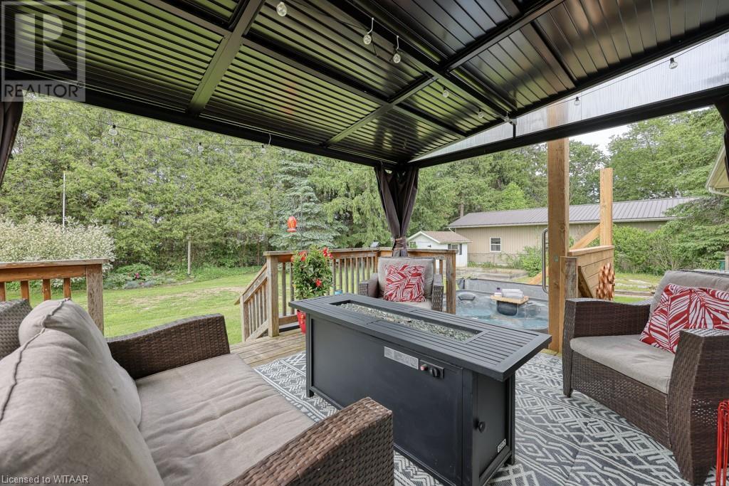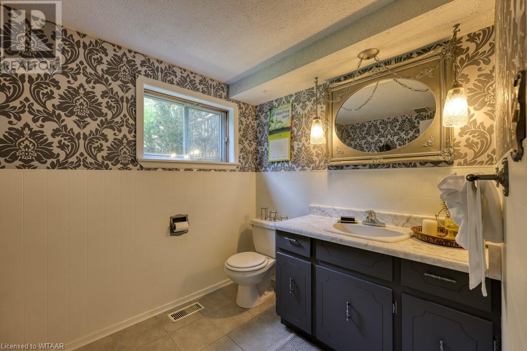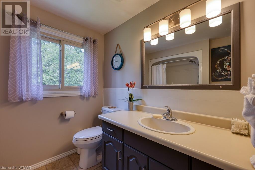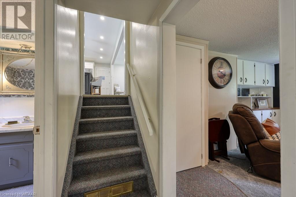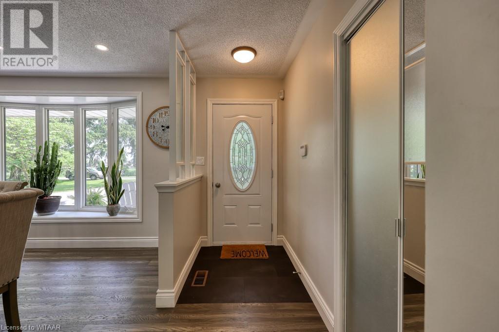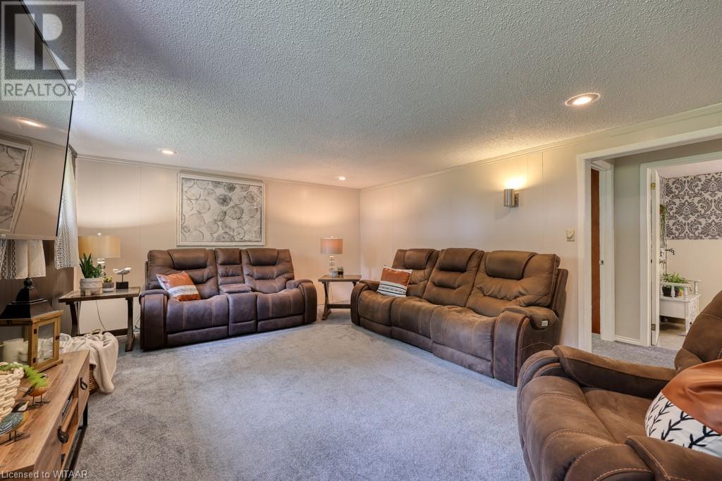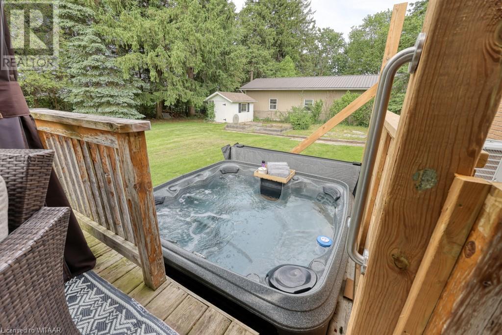 Peaceful half acre property with panoramic views! A scenic seldom traveled, tree-lined street on the edge of town leads to this serene setting & pristine 3+1 bedroom, 2 bath side split with over sized 2 car garage. Here, you’re still connected to all amenities. Mere minutes to 401 with the added bonus of privacy, a lush rural vibe & a ‘no exit’ road. Take it all in as you pull into the triple wide concrete drive. Put your feet up, relax on the sprawling porch and get a feel for the tranquility. Stepping inside, you’ll be wowed by the bright & open remodeled main floor and simply stunning kitchen! Natural light streams in & engineered hardwood flows cohesively. Crisp white cabinets contrast impeccably with the deep dark 7' island & gorgeous granite counters, SS appliances, stylish back-splash. All this accented by perfect lighting! Newer patio doors open to the back-yard & deck with gazebo. Hardwood continues into the upper where you’ll find 3 spacious bedrooms with new carpet (2024)! The primary fits a king-size bed & has double closets. Spacious, sparkling & spotless 4-pce bathroom. You’ll love the versatility of the lower level! Here, a 4th bedroom easily works as a home office or children’s playroom. Modern, spacious 2-pce bath. The sun-filled, family room is THE space to hang out! Unfinished 4th level holds huge potential for a rec/games rm & features a walk-up to the garage. What about this expansive, private & fully fenced backyard? Unwind in the newer hot tub under starlit skies, there’s room for the shop or pool of your dreams here. Handy storage shed. Lots of parking for 8+ with space for RV’s. Indulge your hobbies in the 22 x 25' insulated garage, newer overhead doors, 220 with direct access to the kitchen & basement. Notables: 6 LG appliances (2020) & dining set included, some newer windows, no rentals! Does this exceptional value & amazing location sound appealing? Don't miss out—make this enviable country-like property at 454 Haines Street your own! (id:55009)