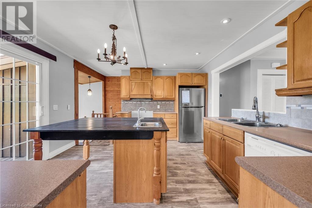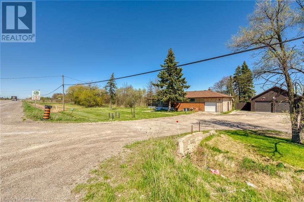 Welcome to 4625 Highway 6! Fantastic opportunity for a savvy investor/businessperson, great exposure and drive by traffic, this property is zoned A1 and has a variety of permitted uses. Country property situated on a desirable 2.25 AC lot, having 468 frontage x 211 depth, only 15 minutes from Upper James and Rymal, between Mt Hope and Caledonia, close to airport, 403 Hwy, Linc. This home has 2,266 sf of finished living space, with the upper floor having 3 bedrooms including the primary bedroom with 3 pc ensuite, huge family room, formal dining room, kitchen with centre island, mudroom with laundry facilities and 4 pc bath. There is a separate self contained inlaw apartment with walk up to yard and garage featuring 3 bedrooms, 4 pc bath, lg recroom, kitchen, laundry and storage. Recent furnace and a/c in 2020, roof approx. 2014. There is an attached garage and a large double detached garage/workshop 24’x36’ with a 200 amp service plus a bonus addition 10’x48’ could be used for an office or additional workshop space. Huge opportunity to park your boats, RVs, shipping containers or park approximately 50+ cars!!! Put your dreams into action…don’t miss out!!! (id:55009)
