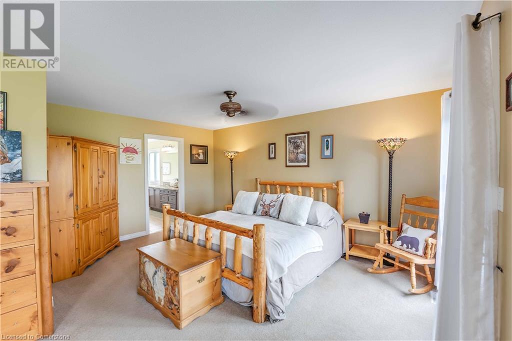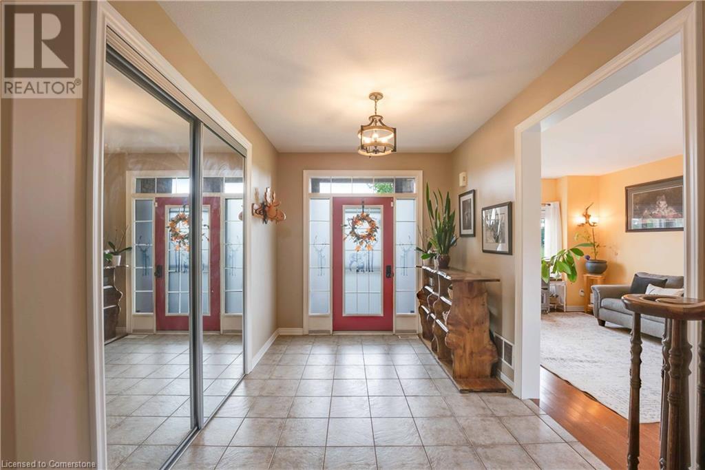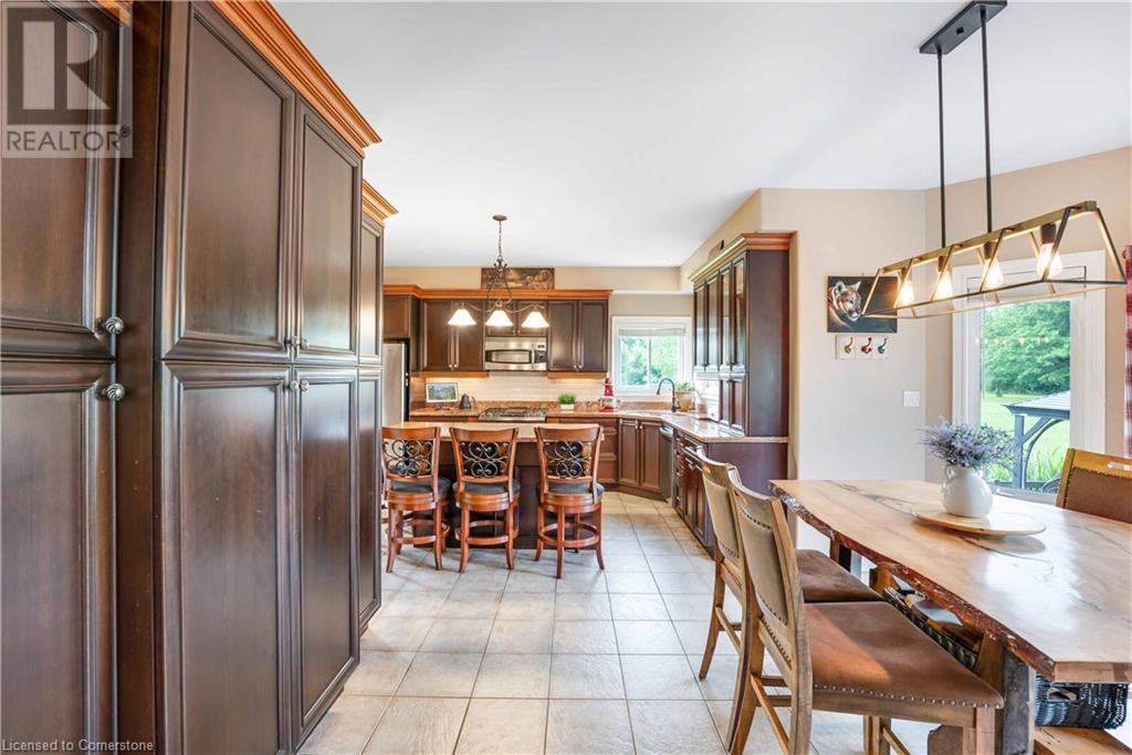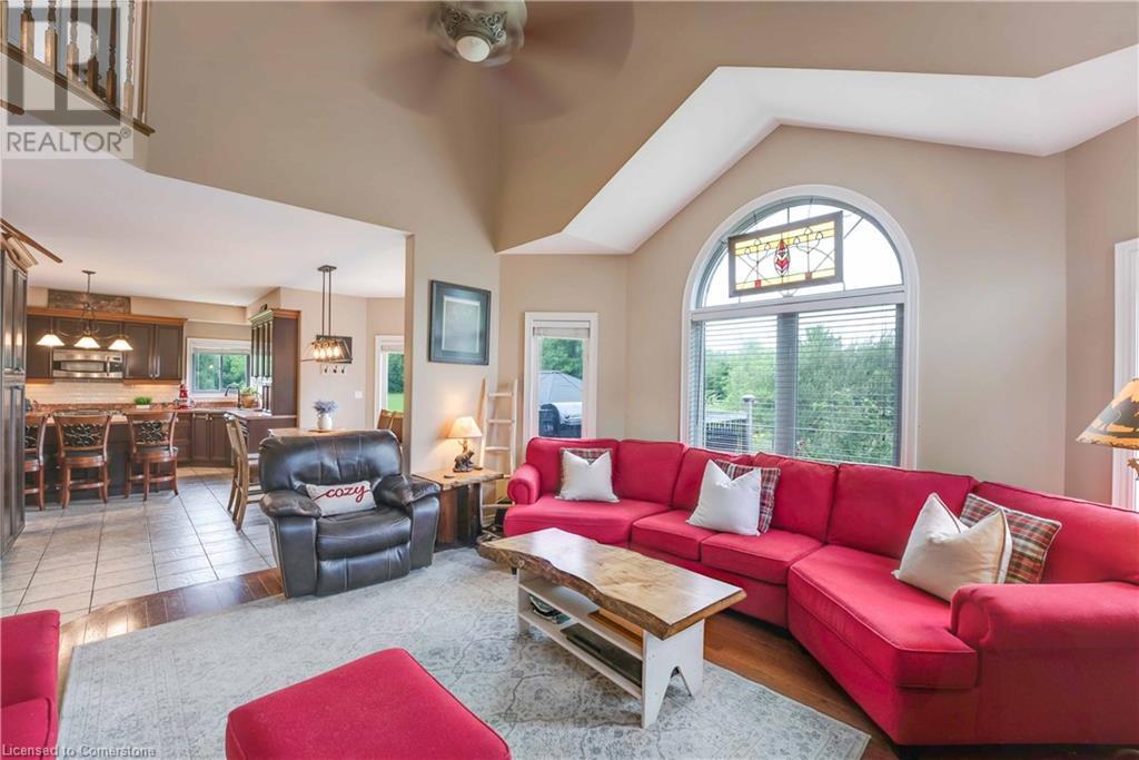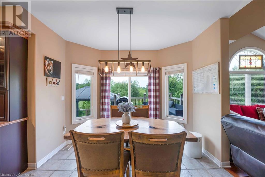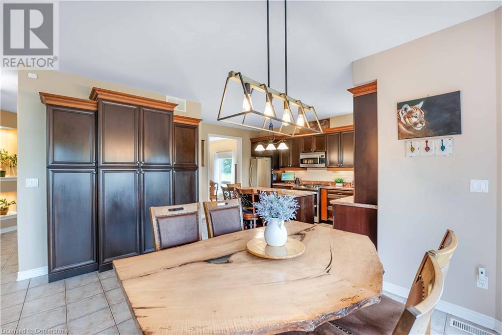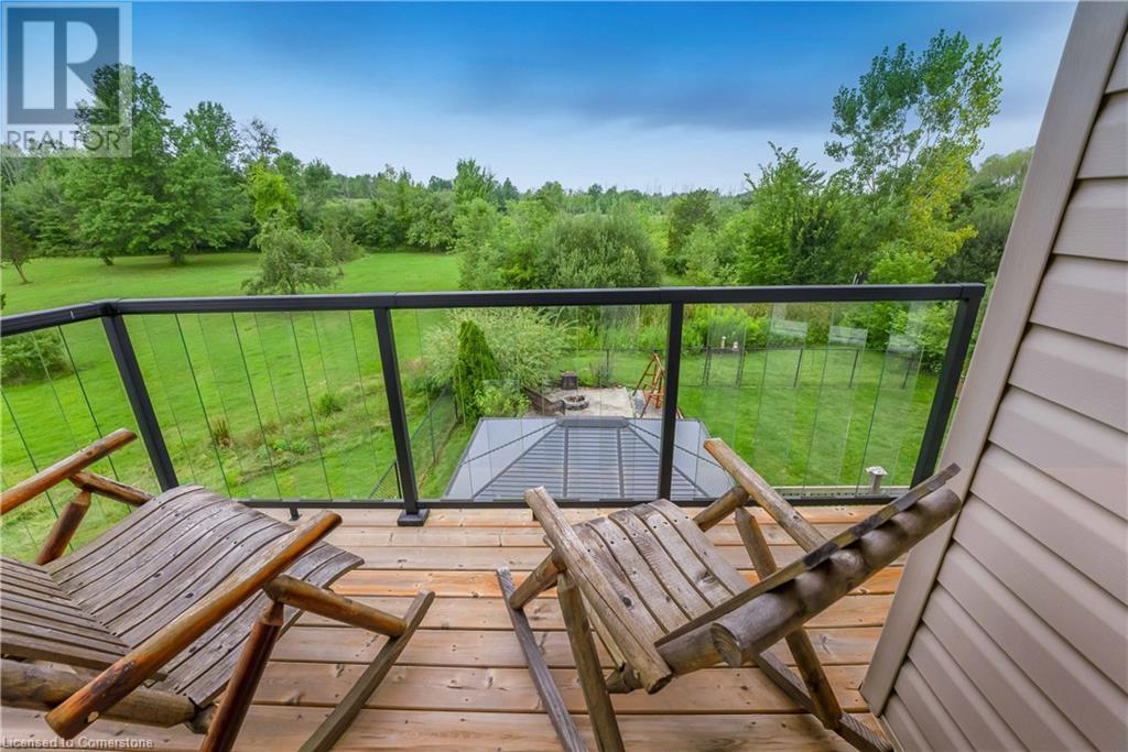 Welcome to this fabulous 2-family home tucked away at the end of a cul-de-sac in a quiet community surrounded by nature. This stunning builders model home has 5 bedrooms 4 bathrooms, with executive comforts and sophisticated upgrades in over 3,900 sq ft of finished living space. Well maintained with 9 foot ceilings on the main floor, and upgraded this home has a cottage retreat feeling. Armed alarm system by Telus,Furnace (2023) and A/C and on demand hot water heater are owned.The grand foyer, open to the dining/living for holiday gatherings. A gourmet kitchen with granite, awaits your culinary skills with an island with seating, equipped with high-end appliances GE Profile gas stove (2023) dishwasher (2024 .The Spacious great room with cathedral ceilings has pastoral views. Natural gas firplace here and in the inlaw suite.. Multi-tiered deck with gazebo and gas fire pit. Escape up the solid wood stairs to an open view of the Great room below. Enter the Primary Bedroom suite through double doors, where serene tree views relax you. Open the garden doors to fresh air and your own private balcony new in 2023. Escape to your en-suite spa bathroom with a soaker tub, separate shower, double sink vanity, granite, and its own front loading washer and dryer. The walk-in closet is spacious. There are 2 more bedrooms upstairs that share a divine 4 piece bathroom with double vanity. The Inlaw suite downstairs has a den and 2 bedrooms, full kitchen with 6 appliances, bathroom w shower. (id:55009)