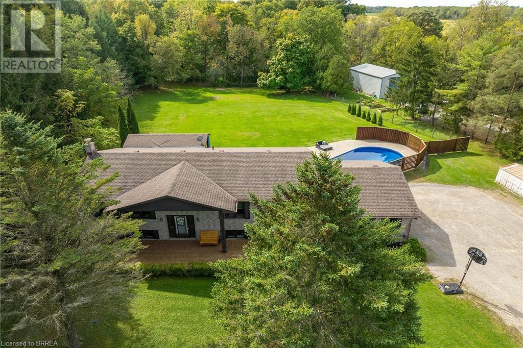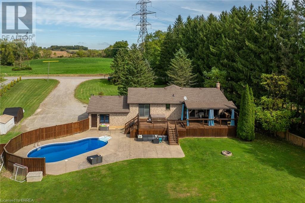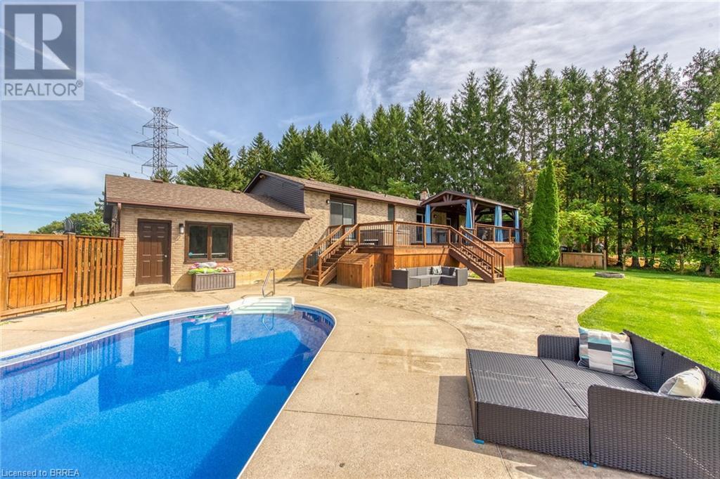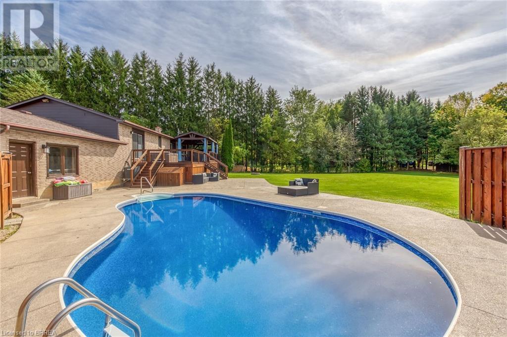 Welcome to your dream sanctuary—a stunning raised bungalow nestled on 1.5 acres of tranquil country paradise, just minutes from city conveniences and highway access. This exquisite property offers the perfect blend of privacy and accessibility, making it an ideal escape from the hustle and bustle. Step into your own personal oasis, where a large fenced yard surrounded by mature trees ensures peace and privacy. The property backs onto the serene Fairchild Creek, offering picturesque views and a calming atmosphere. Enjoy the ultimate in outdoor luxury with a sparkling in-ground kidney-shaped pool (new liner 2023), complete with custom concrete work and a spacious patio area perfect for sun-soaked afternoons. Designed for entertaining and relaxation, the expansive deck features both open and covered areas, making it the perfect venue for gatherings, rain or shine. Unwind in the soothing hot tub, surrounded by nature’s beauty. The property boasts a double car garage and ample parking, catering to all your needs. Inside, the home features four spacious bedrooms and two modern bathrooms, providing comfort and convenience for the entire family. A separate entrance from the garage to the lower level offers the potential for an in-law suite, adding versatility to this already impressive home. Although well maintained, a touch of modernization can elevate this space into a stylish and contemporary retreat tailored to your preferences. Don't miss the opportunity to own this exceptional country retreat, where every day feels like a vacation. Your perfect lifestyle awaits! (id:55009)
