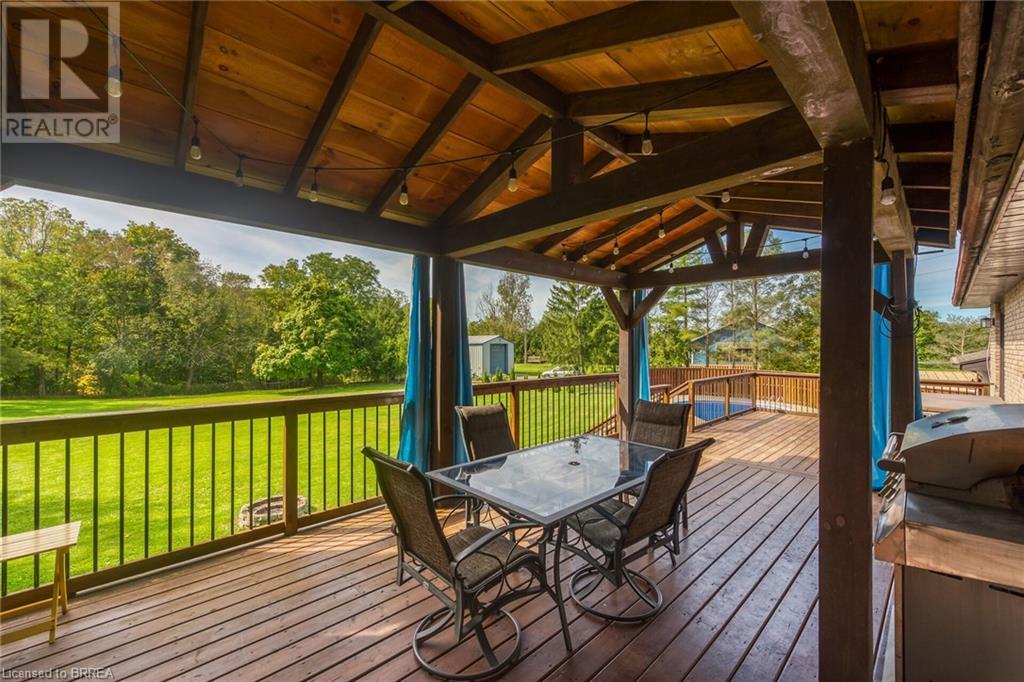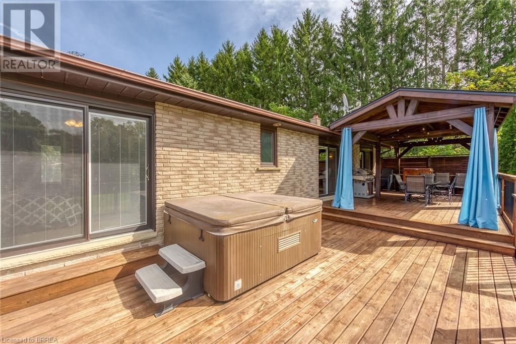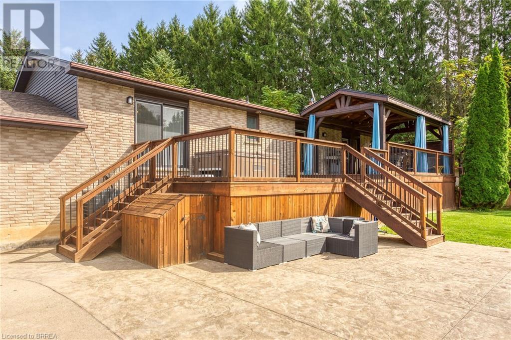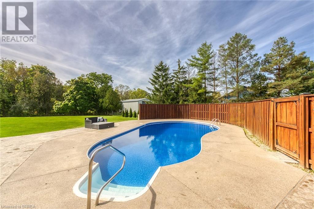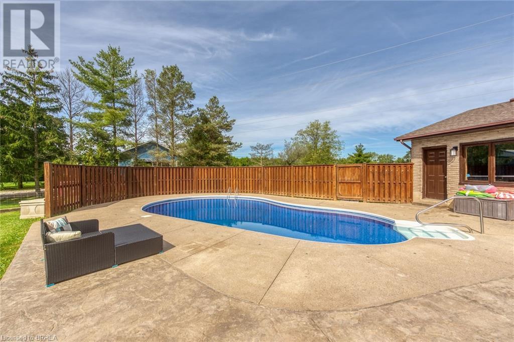 Welcome to your dream sanctuary—a stunning raised bungalow nestled on 1.5 acres of tranquil country paradise, just minutes from city conveniences and highway access. This exquisite property offers the perfect blend of privacy and accessibility, making it an ideal escape from the hustle and bustle. Step into your own personal oasis, where a large fenced yard surrounded by mature trees ensures peace and privacy. The property backs onto the serene Fairchild Creek, offering picturesque views and a calming atmosphere. Enjoy the ultimate in outdoor luxury with a sparkling in-ground kidney-shaped pool (new liner 2023), complete with custom concrete work and a spacious patio area perfect for sun-soaked afternoons. Designed for entertaining and relaxation, the expansive deck features both open and covered areas, making it the perfect venue for gatherings, rain or shine. Unwind in the soothing hot tub, surrounded by nature’s beauty. The property boasts a double car garage and ample parking, catering to all your needs. Inside, the home features four spacious bedrooms and two modern bathrooms, providing comfort and convenience for the entire family. A separate entrance from the garage to the lower level offers the potential for an in-law suite, adding versatility to this already impressive home. Although well maintained, a touch of modernization can elevate this space into a stylish and contemporary retreat tailored to your preferences. Don't miss the opportunity to own this exceptional country retreat, where every day feels like a vacation. Your perfect lifestyle awaits! (id:55009)