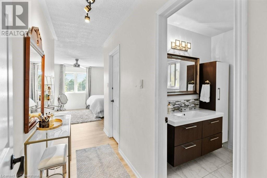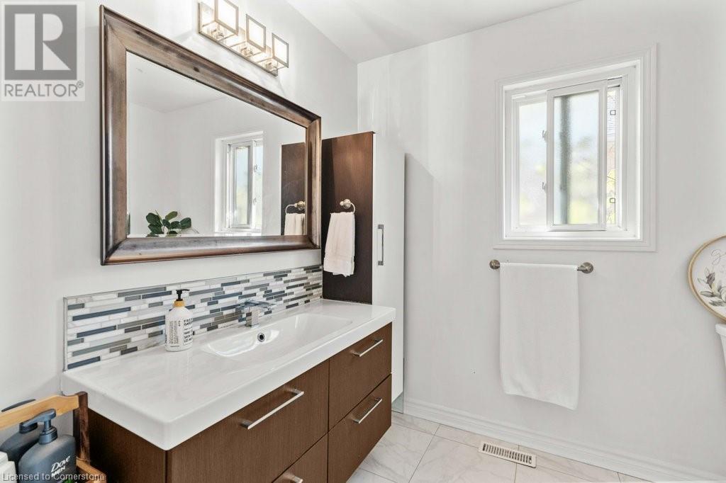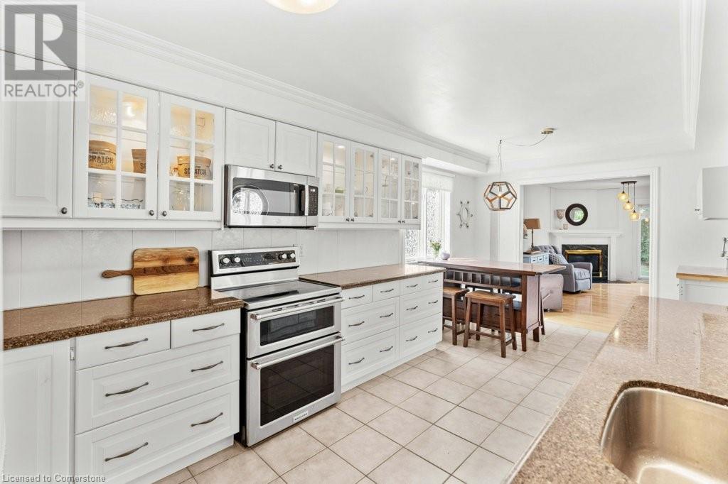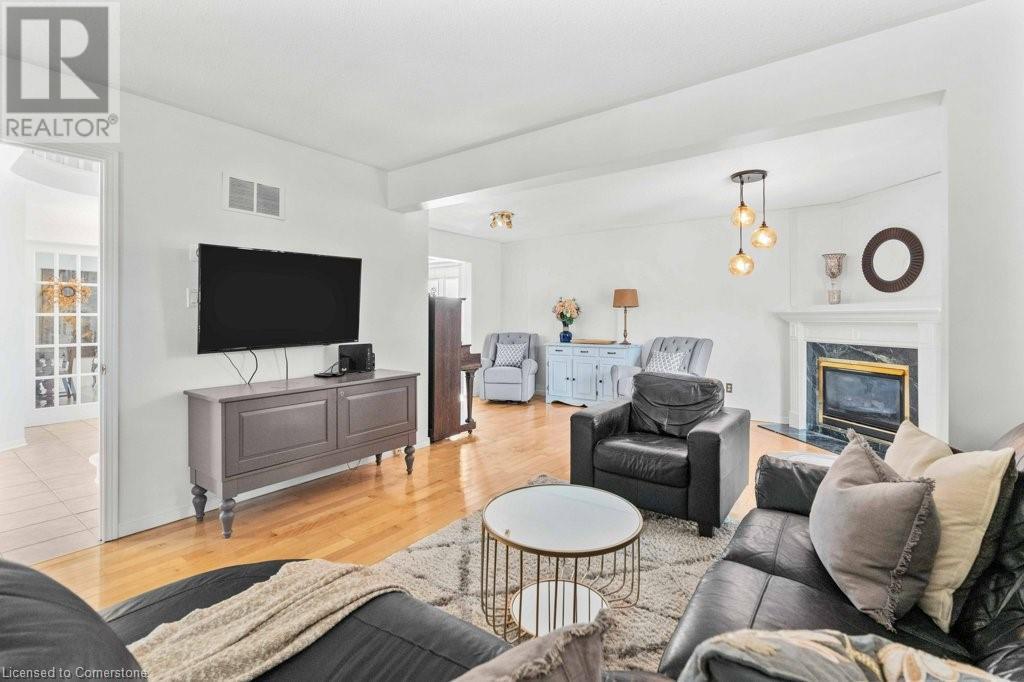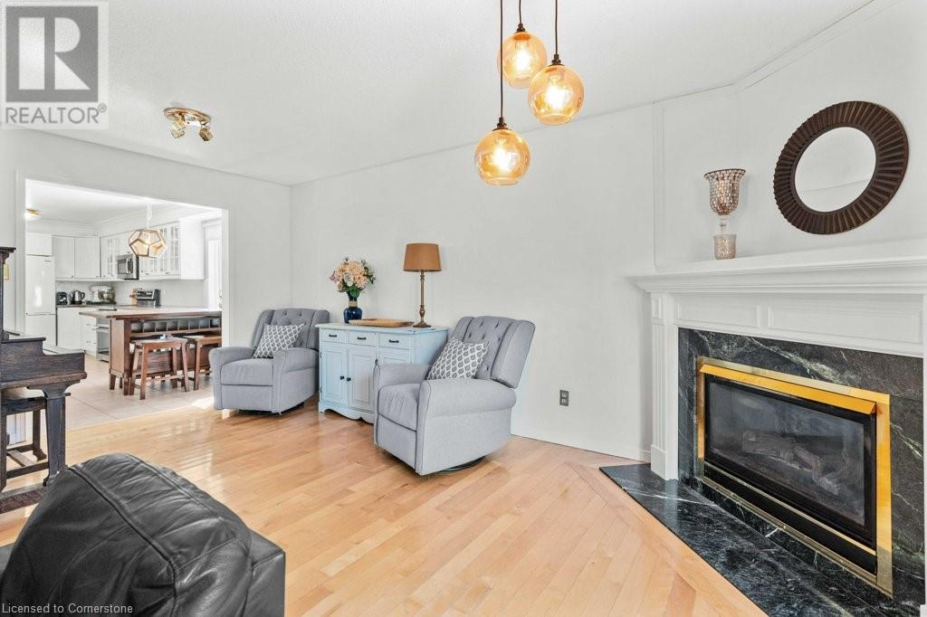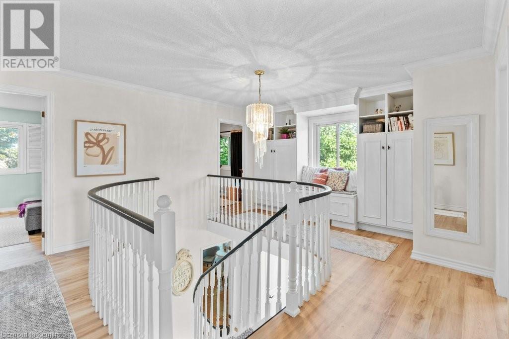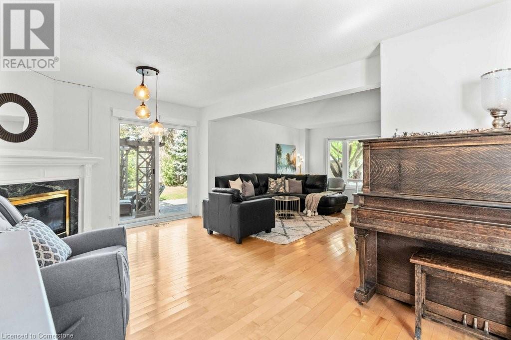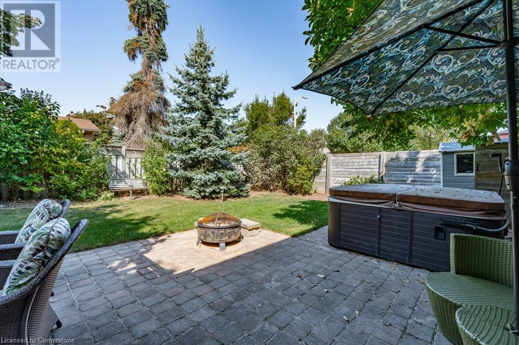 Exceptional in East Burlington, available after 20 years! Expansive brick home offers 3 finished levels of living space, thoughtfully designed in sustainable finishes for busy families. Enjoy a one of a kind layout with double drive and garage with interior access, and a fully separate front door surrounded by perennial gardens and mature trees. Main level with limitless living space finished in durable tile and hardwood, with upgraded lighting, gas fireplace, and fresh white paint. Renovated kitchen features a passthrough to the private dining room with view of the front yard and french doors to let the light in! The second level of this house packs a punch with 4 full bedrooms; 3 sizeable rooms with spacious closets, and a primary that goes on forever. Enjoy 3pce ensuite with spa shower, a huge walk in closet, and bright windows overlooking Fothergill Woods Park! Recently renovated with luxury vinyl plank the upstairs is light and bright, and loaded with storage included a linen closet, extra bathroom storage, and custom built reading nook with storage bench and cupboards. Basement is fully finished with bright broadloom, a 3pce bath, and laundry. Find also a 5th bedroom, spotless furnace room with wall to wall storage and a bonus storage room (office,gym?). Our sellers LOVED having 2 separate yards, the fully fenced backyard with hot tub, patio and shed-AND private front yard protected by a 20 year hedge. Minutes to hwys, parks, shopping. FURN/AC2023. ROOF 2014 (id:55009)