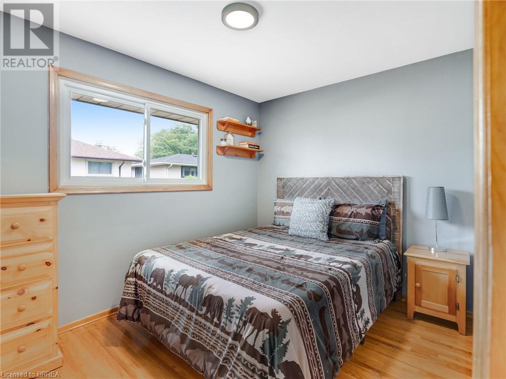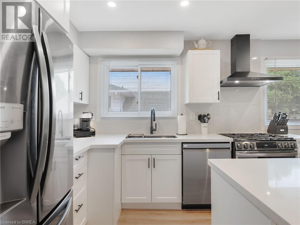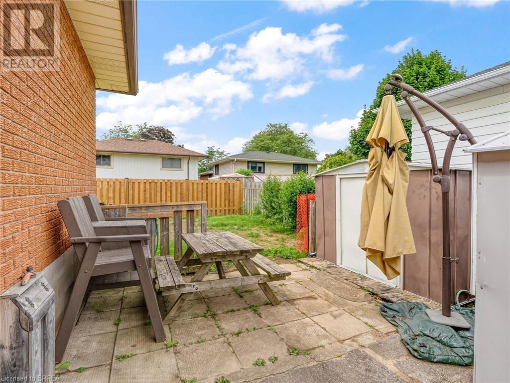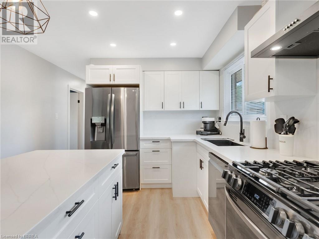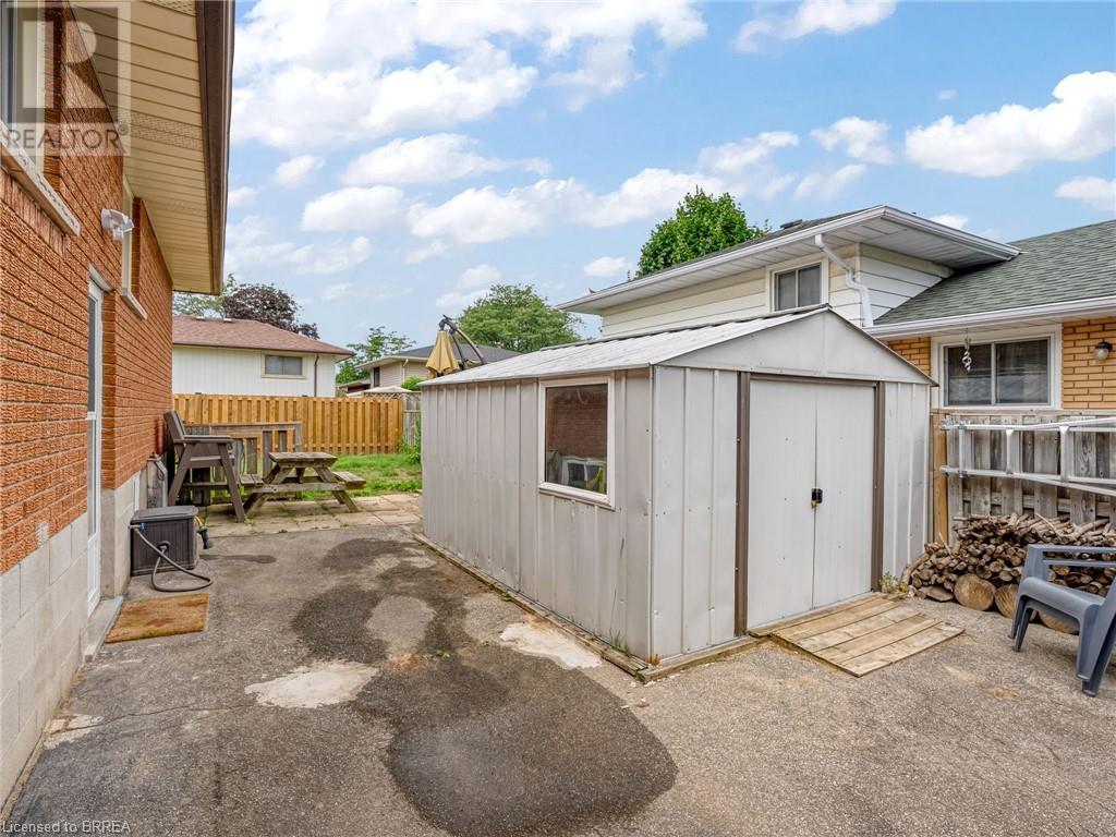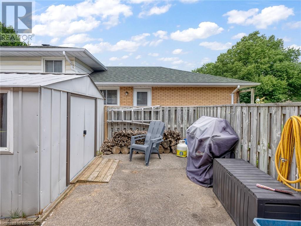 Welcome to this 3+1 bed, 2 bath bungalow that has been tastefully updated. Located in the north end of Brantford and extremely close to all amenities, the 403 Hwy, Golf Courses, great schools and more! Featuring a VERY SOUGHT AFTER SIDE ENTRANCE that leads into the basement. Perfect for potential rental income down the road if you wish. The main level is open and bright with a newly renovated kitchen that is the focal point of the home. Three good sized bedrooms and an updated bathroom make it ideal for families. The lower level is spacious and features a large recreation room and a 4th bedroom. This bungalow boasts several recent upgrades, including newer windows, a newer roof, a newer furnace, and a newer air conditioning system. Tons of storage space in the huge laundry room, and a workshop area that is perfect for the hobbyist. Fully fenced rear yard and massive driveway for 4 cars. Two big sheds as well for outdoor storage. Don't miss out! (id:55009)