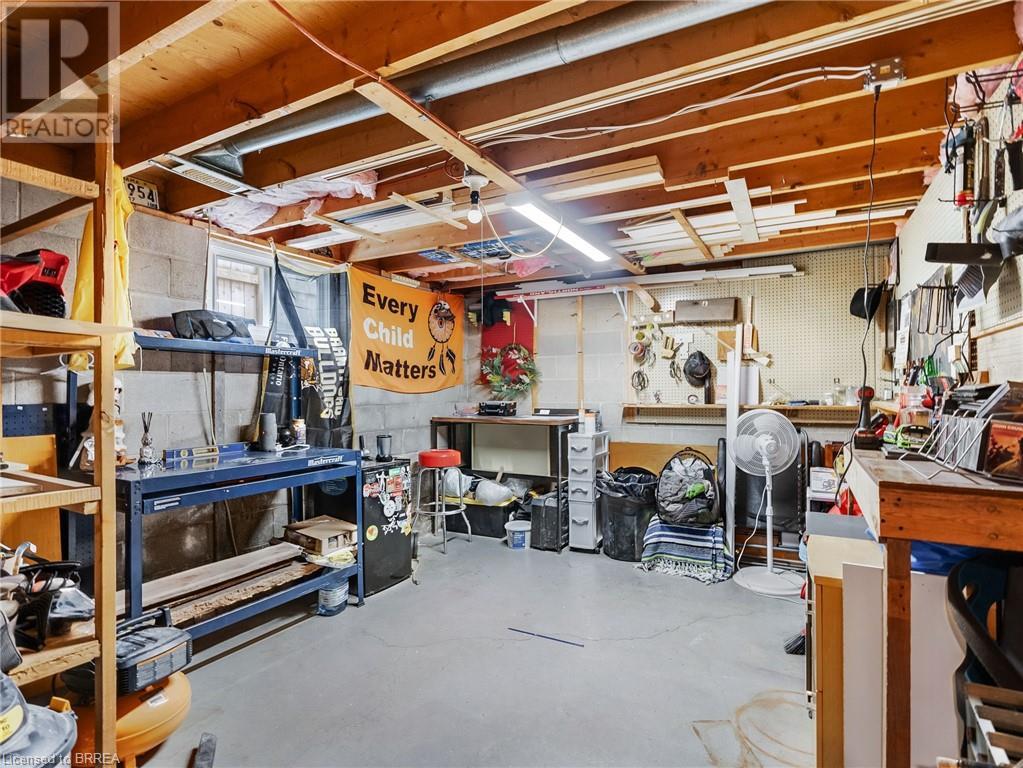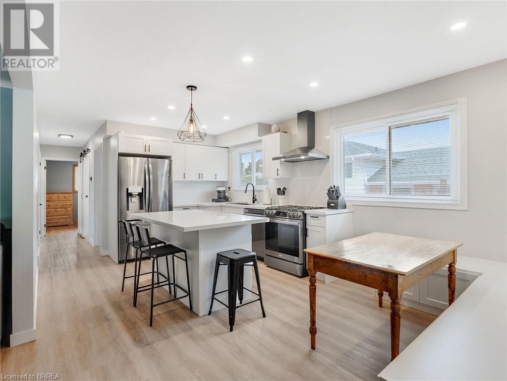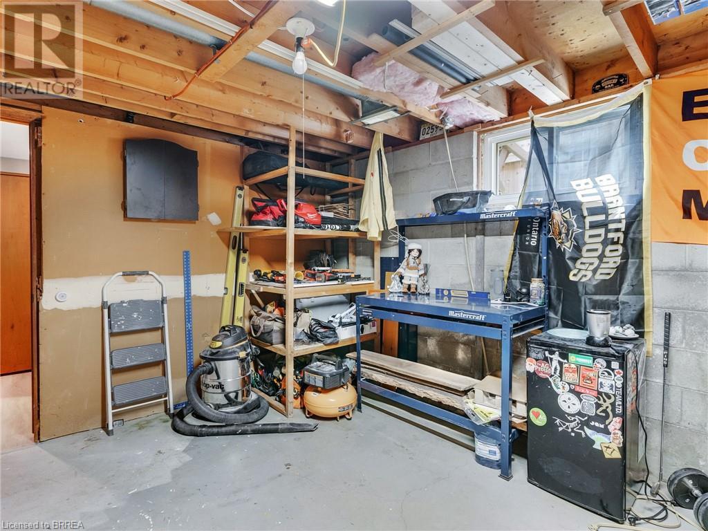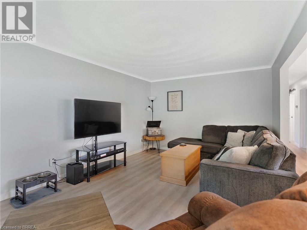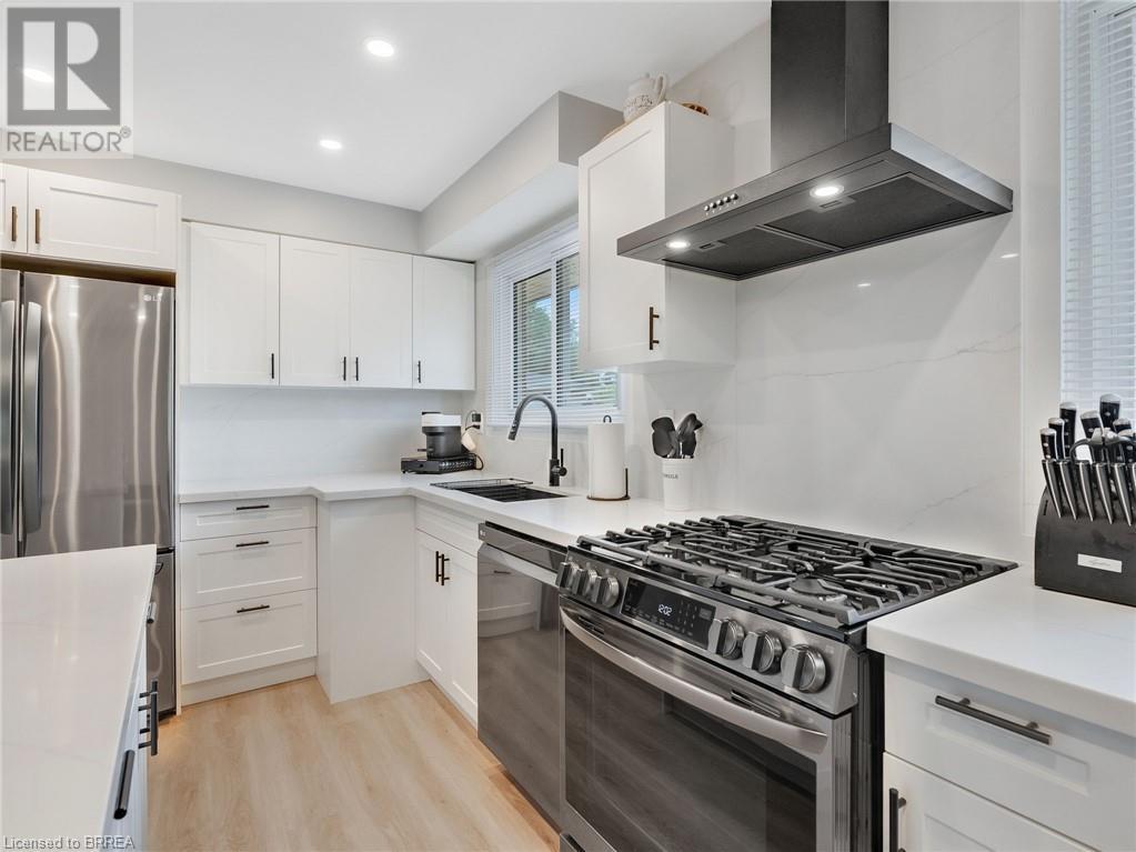 Welcome to this 3+1 bed, 2 bath bungalow that has been tastefully updated. Located in the north end of Brantford and extremely close to all amenities, the 403 Hwy, Golf Courses, great schools and more! Featuring a VERY SOUGHT AFTER SIDE ENTRANCE that leads into the basement. Perfect for potential rental income down the road if you wish. The main level is open and bright with a newly renovated kitchen that is the focal point of the home. Three good sized bedrooms and an updated bathroom make it ideal for families. The lower level is spacious and features a large recreation room and a 4th bedroom. This bungalow boasts several recent upgrades, including newer windows, a newer roof, a newer furnace, and a newer air conditioning system. Tons of storage space in the huge laundry room, and a workshop area that is perfect for the hobbyist. Fully fenced rear yard and massive driveway for 4 cars. Two big sheds as well for outdoor storage. Don't miss out! (id:55009)