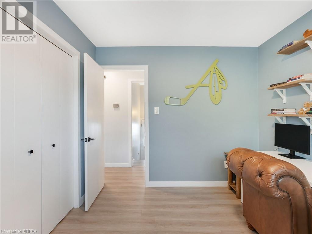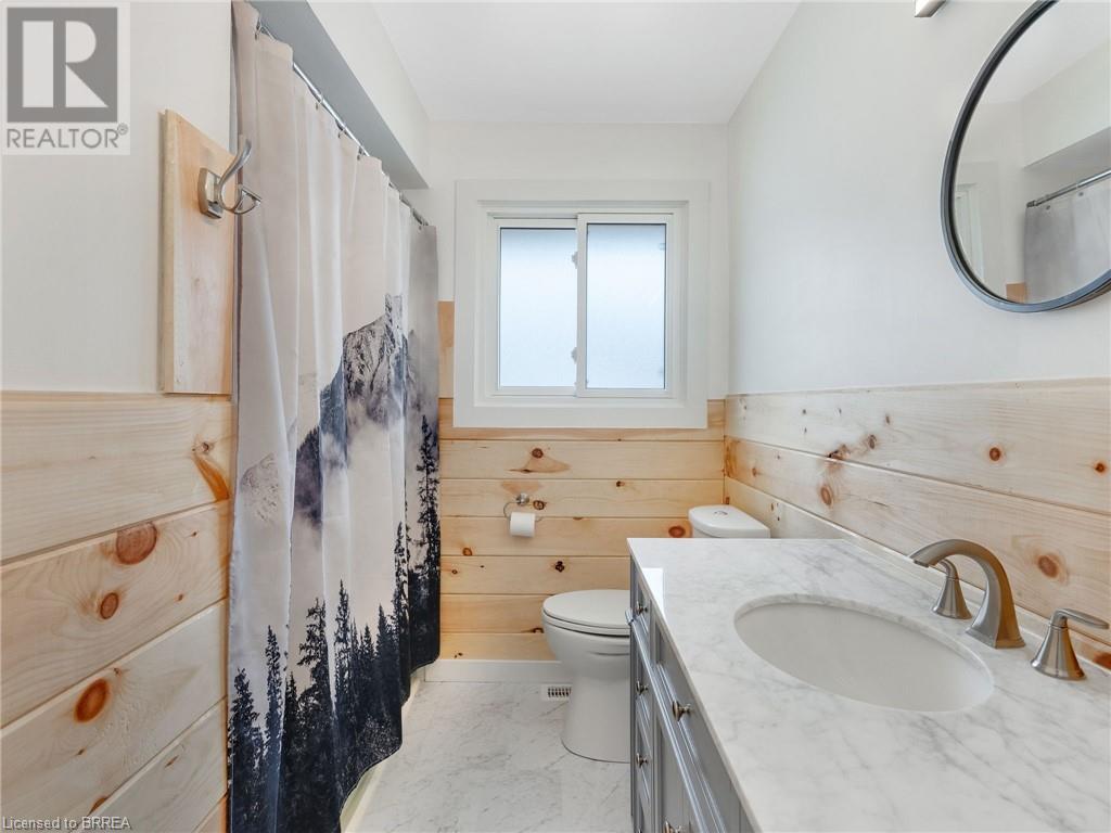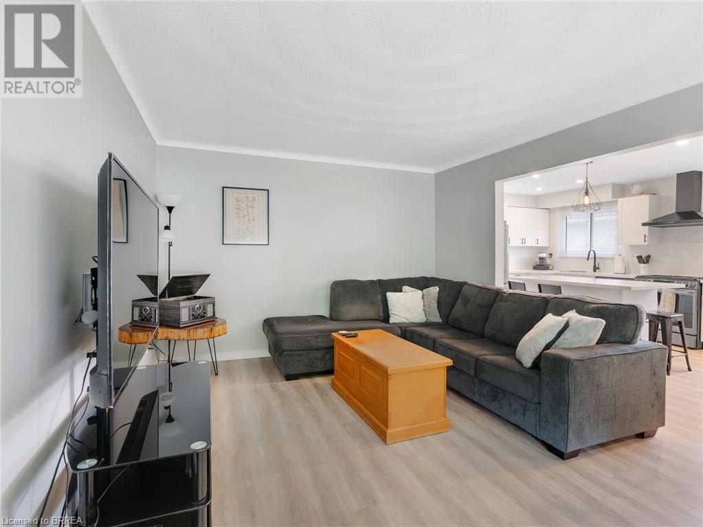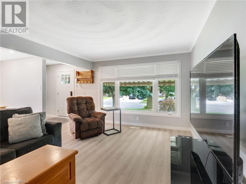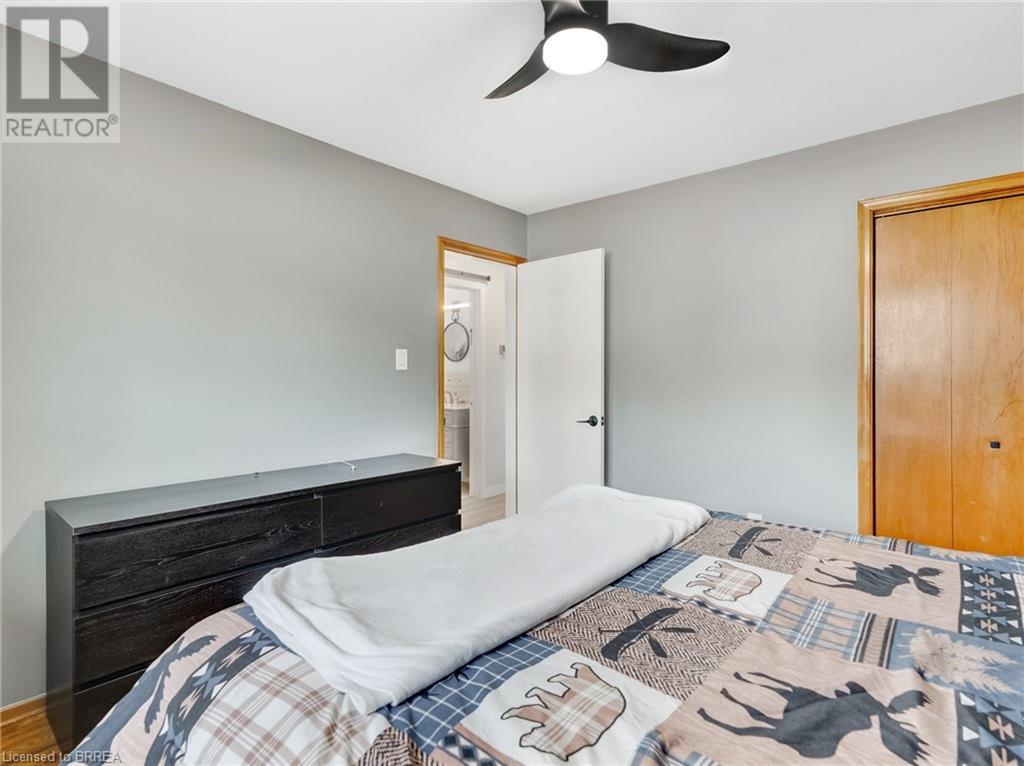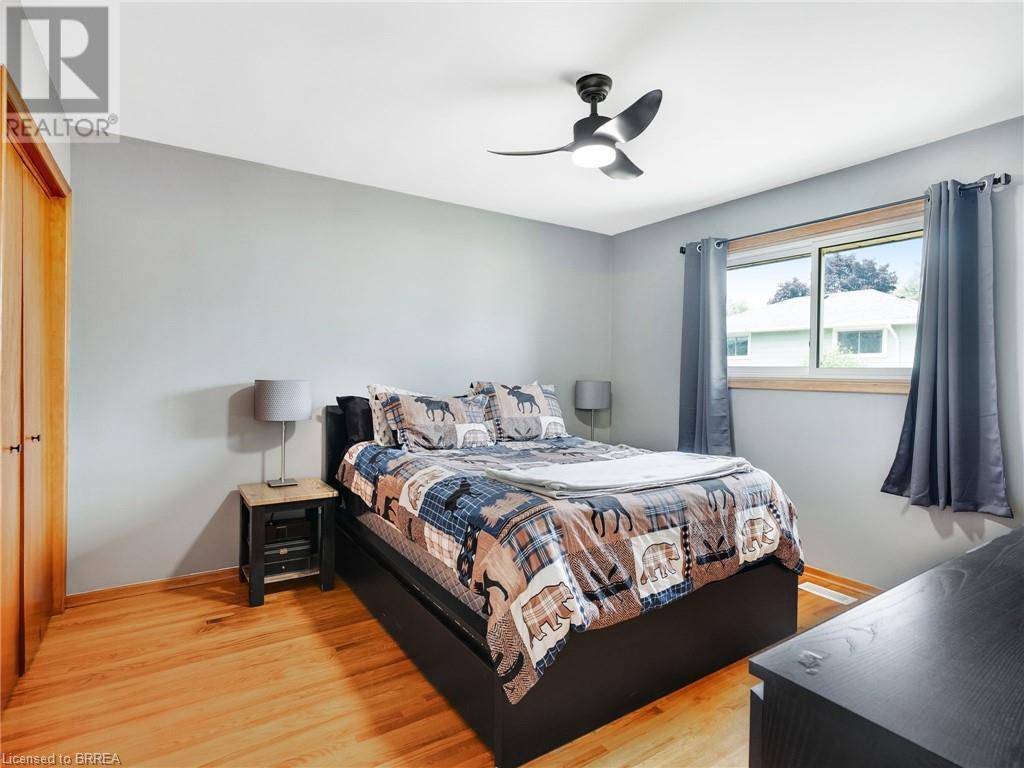 Welcome to this 3+1 bed, 2 bath bungalow that has been tastefully updated. Located in the north end of Brantford and extremely close to all amenities, the 403 Hwy, Golf Courses, great schools and more! Featuring a VERY SOUGHT AFTER SIDE ENTRANCE that leads into the basement. Perfect for potential rental income down the road if you wish. The main level is open and bright with a newly renovated kitchen that is the focal point of the home. Three good sized bedrooms and an updated bathroom make it ideal for families. The lower level is spacious and features a large recreation room and a 4th bedroom. This bungalow boasts several recent upgrades, including newer windows, a newer roof, a newer furnace, and a newer air conditioning system. Tons of storage space in the huge laundry room, and a workshop area that is perfect for the hobbyist. Fully fenced rear yard and massive driveway for 4 cars. Two big sheds as well for outdoor storage. Don't miss out! (id:55009)