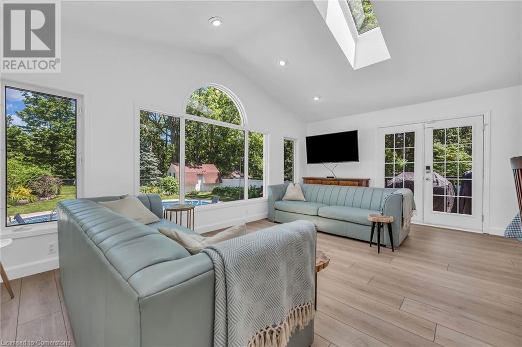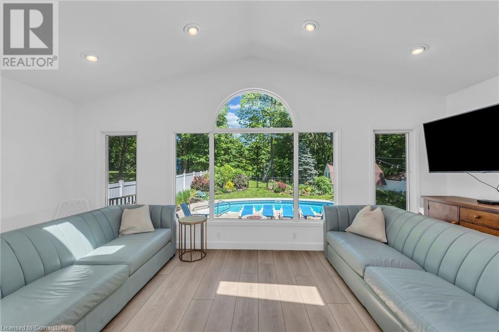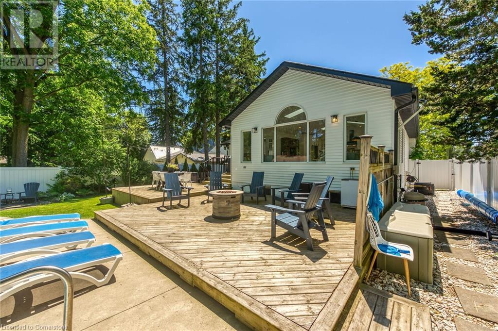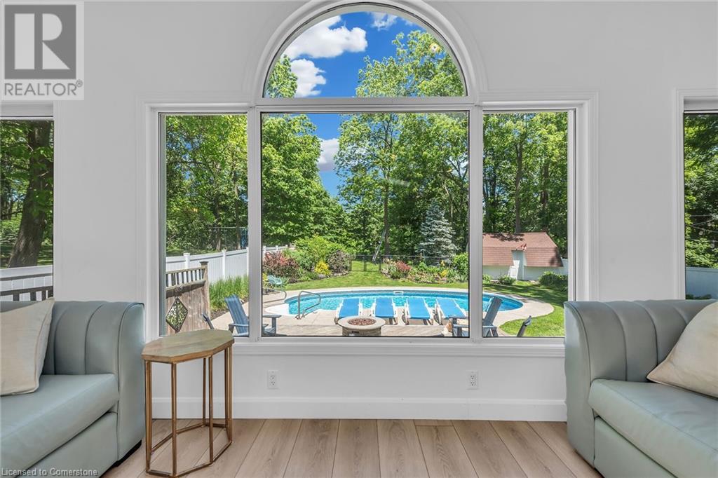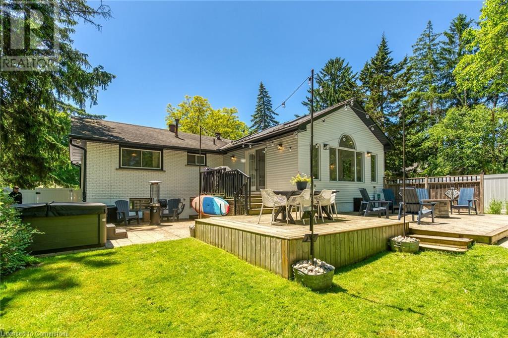 Newly renovated home on spectacular private fenced L-shaped lot. Inground heated salt water kidney shaped pool approx 14'x 30', w new heater, cement surround walkway & extensive decking. Beautifully landscaped w many shrubs, mature trees & perennials. Hip-style shed w lots of room for storage. New kitchen & appliances, new flooring throughout both levels, new vanity in bsmt bath, new skylights w high celings and sky views, new white privacy fence, all completed in 2023. Professionally painted exterior of home & shed, new furnace, new white barn style door, all completed in 2022. In-law suite potential in bsmt w kit, 3 bdrms, new roller blinds, 3pce bath w walk-in shower & private front & back entrance. 3 bdrms on main level & ensuite privilege bath. Cozy family rooms both with wood burning fireplaces. Sellers related to salesperson. (id:55009)