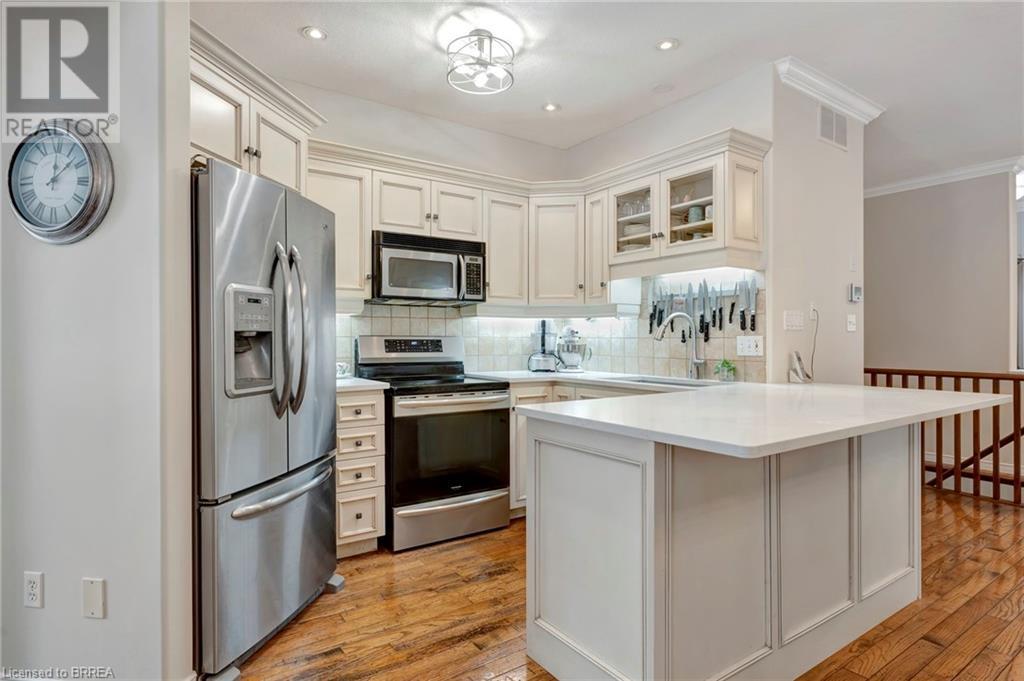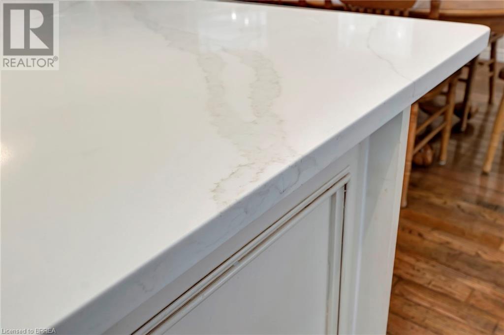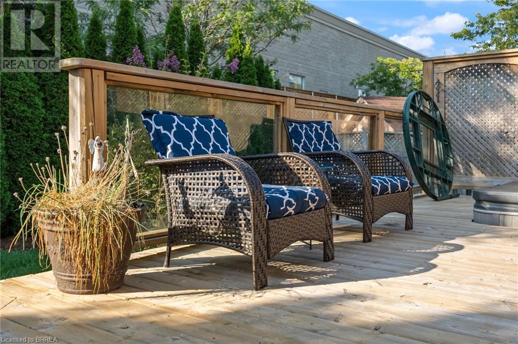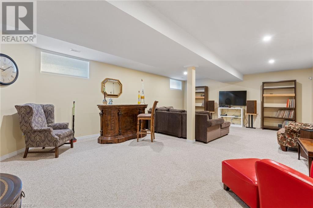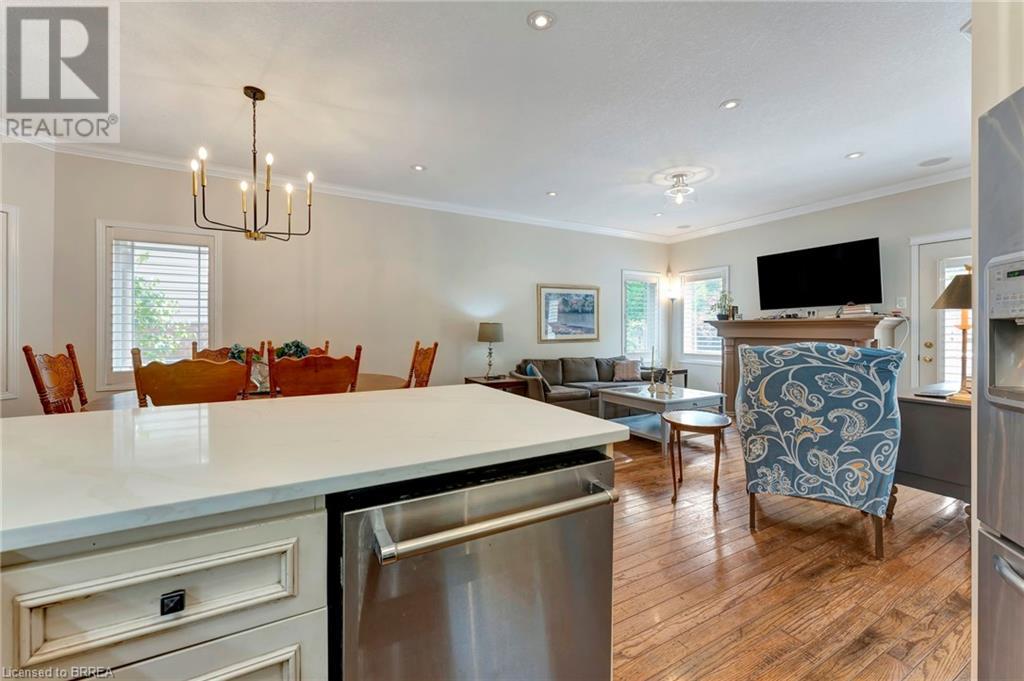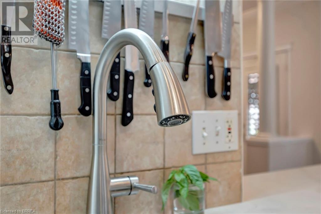 Wow! Check out the newest updates to this 3+1, 3 bath Paris home! The main floor living area has undergone an amazing transformation with fresh paint in a neutral tone, beautiful quartz counters, modern workstation sink in the kitchen and updated lighting in the kitchen, dining and living room. The primary bedroom ensuite has also been updated with fresh paint, quartz counter and new lighting. 3 bedrooms on the main floor, 4 pc ensuite and separate 4 pc bath provide lots of room for a growing family. The living room features a gas fireplace and walkout leading to a large private rear deck with hot tub and garden shed. As you make your way to the lower level, you'll discover a versatile space that includes a 2 pc. bath, and a nice sized bedroom with walk-in closet and a convenient walk-up entrance, making it ideal for guests or extended family members. The spacious finished rec room provides additional room for leisure and recreation, ensuring there's space for everyone to enjoy. Outside, the house boasts a unique copper cupola which adds a touch of character and sets the home apart from the others. The covered side porch is welcoming and is a great place to enjoy your morning coffee or just unwind in the evening. The double car garage with partial heating and A/C, has room for 2 cars plus storage and is finished with crown moulding. Some of the extra features that this former model home has are: in ceiling speakers (home, garage and porch), steel roof (2014) w/50 yr. warranty, California shutters, walk-up basement, underground sprinkler system. (id:55009)