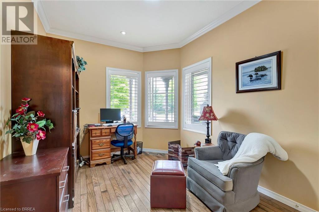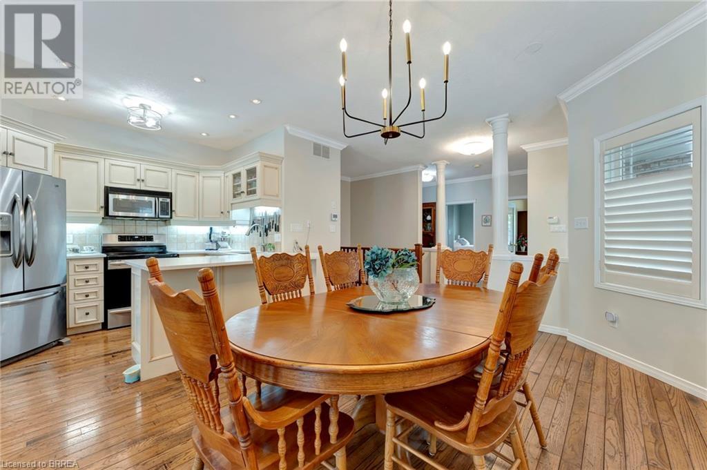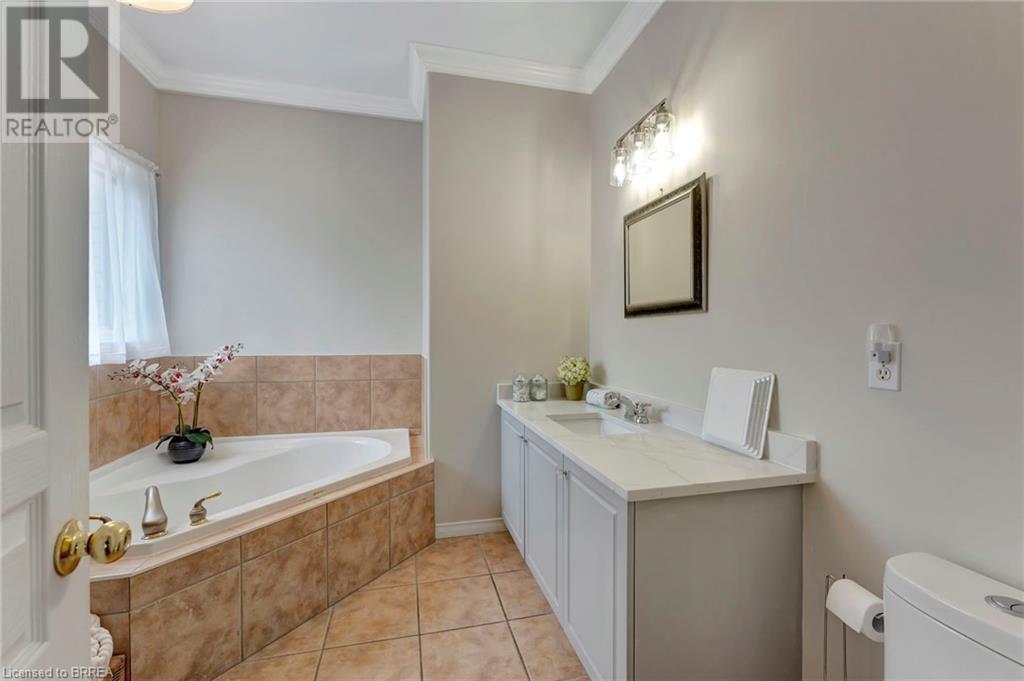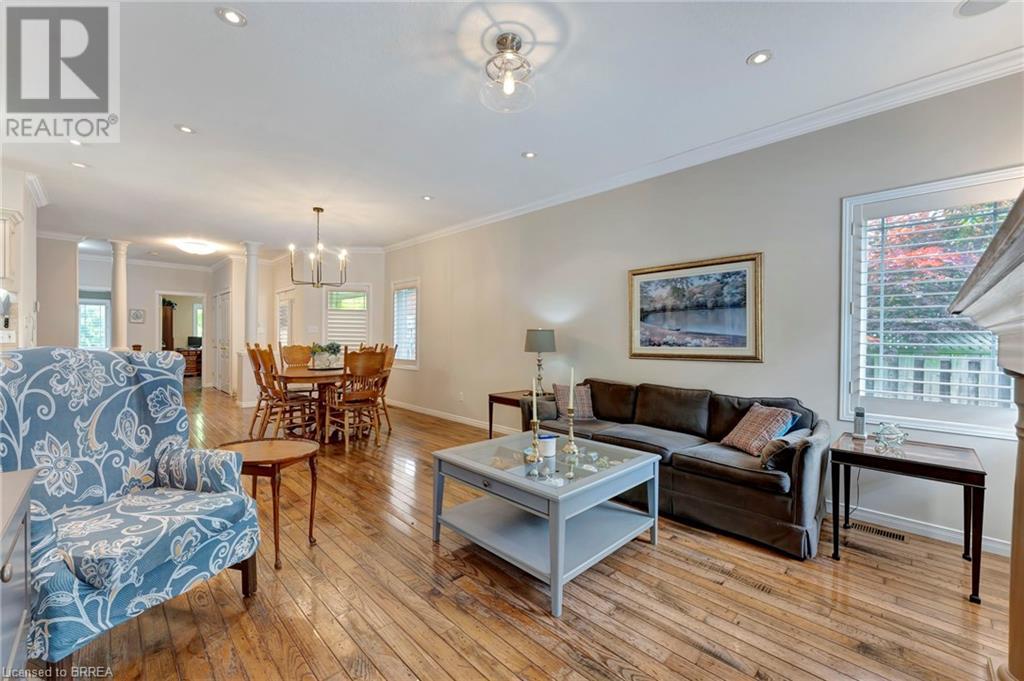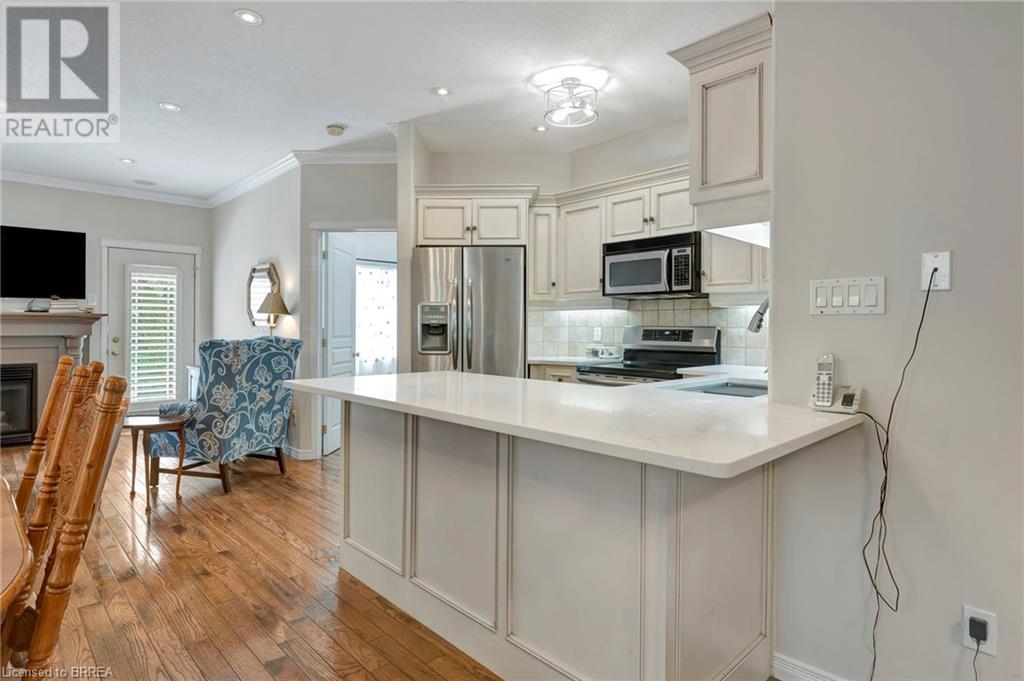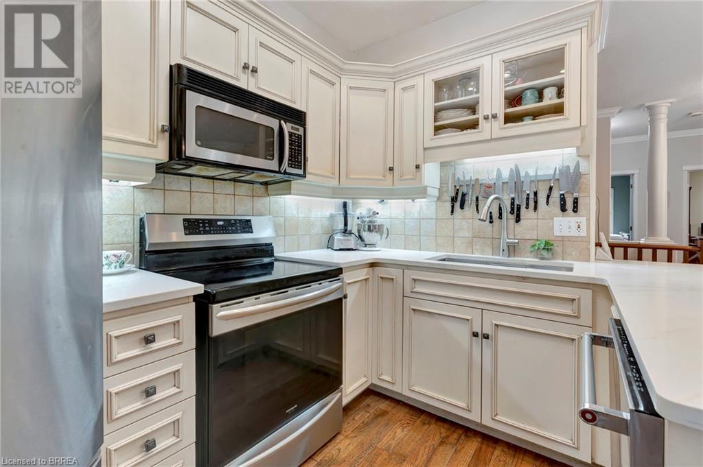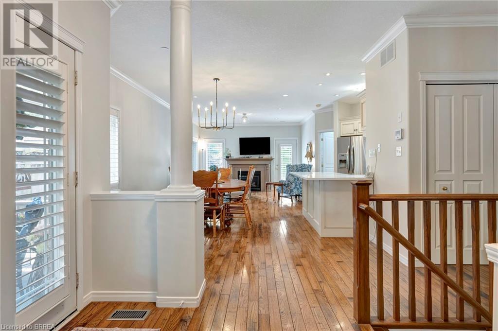 Wow! Check out the newest updates to this 3+1, 3 bath Paris home! The main floor living area has undergone an amazing transformation with fresh paint in a neutral tone, beautiful quartz counters, modern workstation sink in the kitchen and updated lighting in the kitchen, dining and living room. The primary bedroom ensuite has also been updated with fresh paint, quartz counter and new lighting. 3 bedrooms on the main floor, 4 pc ensuite and separate 4 pc bath provide lots of room for a growing family. The living room features a gas fireplace and walkout leading to a large private rear deck with hot tub and garden shed. As you make your way to the lower level, you'll discover a versatile space that includes a 2 pc. bath, and a nice sized bedroom with walk-in closet and a convenient walk-up entrance, making it ideal for guests or extended family members. The spacious finished rec room provides additional room for leisure and recreation, ensuring there's space for everyone to enjoy. Outside, the house boasts a unique copper cupola which adds a touch of character and sets the home apart from the others. The covered side porch is welcoming and is a great place to enjoy your morning coffee or just unwind in the evening. The double car garage with partial heating and A/C, has room for 2 cars plus storage and is finished with crown moulding. Some of the extra features that this former model home has are: in ceiling speakers (home, garage and porch), steel roof (2014) w/50 yr. warranty, California shutters, walk-up basement, underground sprinkler system. (id:55009)