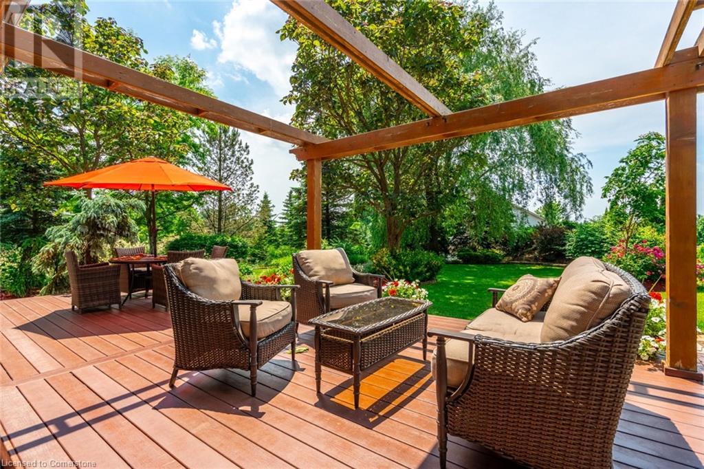 Welcome to 5 Maryheather Crescent in Bridal Ridge Estates. Are you looking to get away from the busy city life? This sprawling 4 bedroom home on half-acre sized estate lot could be your dream home. You’ll love having a 3-car garage! This western exposure estate home offers spectacular sunsets from soaring picturesque windows and outdoor sitting areas. Professionally built walkout basement (2017) features a self-contained in-law/rental suite with 9 foot ceilings, kitchen, laundry, bedroom and 3-piece bathroom -perfect for additional income! Enjoy the newly built maintenance-free composite deck with lifetime warranty -an extraordinary space for entertaining or simply relaxing on a hammock. Professionally landscaped and beautiful gardens adorned with perennials. Oversized master bedroom, with full ensuite & walk-in closet. The additional 3 bedrooms are large and spacious. This home is perfect for a family and has excellent schools, a park with baseball diamond, soccer pitch, play area, and refrigerated hockey rink that is literally seconds away. Fantastic location with easy highway access to the 401 and QEW. Roof 2014, Irrigation, Backup Generator. Don't be Too late* *TM (id:55009)