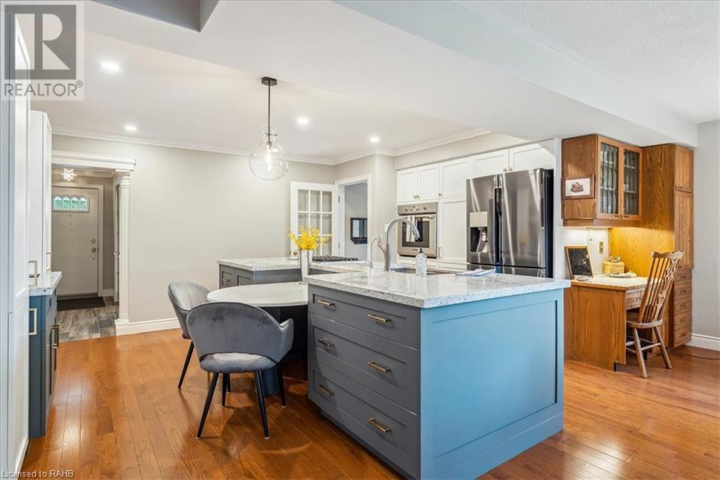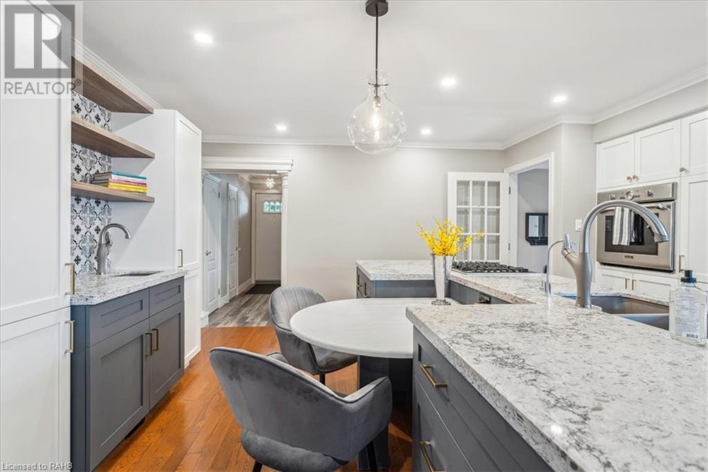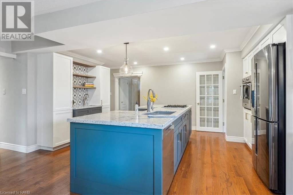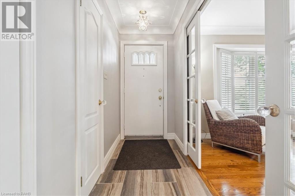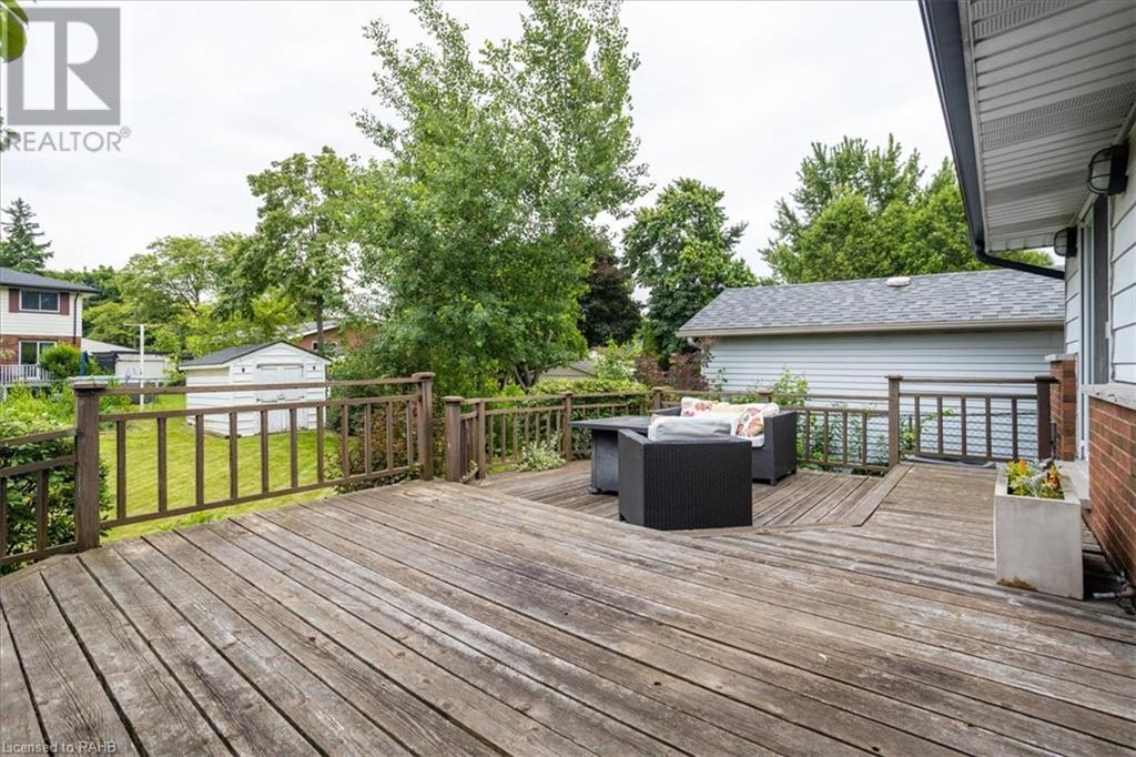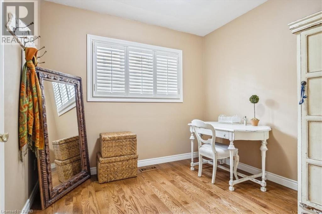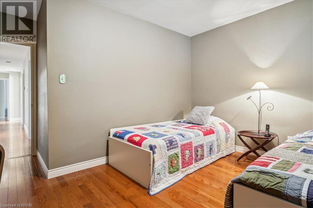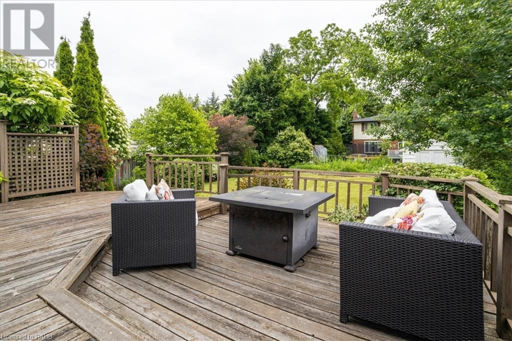 POTENTIAL RENTAL OPPORTUNITY! This elegant single-family home sits on a tree-lined property in the highly desirable West Mountain area. This updated bungalow with in-law potential is close to schools, churches, shopping & bus routes. A newly paved driveway and lush landscaped grounds lead you to the impressive stone steps inviting you to the front door. Upon entrance, you're warmly greeted by a beautiful family room with double glass pocket doors, hardwood floors t/out the main level, fresh paint & a bright & open floor plan connecting the kitchen to the living room and leading to the inviting, sunny backyard. Meticulous attention to detail is presented in the newly renovated chef's kitchen with new Corian countertops, a customized backsplash over the coffee station, custom cabinets, a built-in vacuum cleaner, water filtration system and top-of-the-line appliances. This home boasts 4 bedrooms, custom California closets, California shutters on Andersen windows and 1.5 washrooms on the main level. Glass sliding doors lead you out to the backyard, which is full of trees and a large deck that provides plentiful space for gardening and entertaining. The lower level is partially finished and is quite large, offering ample storage and entertainment space with new carpeting and built-in shelving units. Vast potential presents itself in the unfinished expansive space. The house boasts a new roof, eavestrough and leaf guard system. This home is a perfect blend of comfort and style. (id:55009)