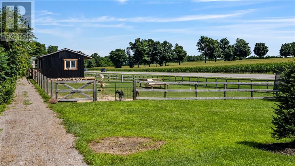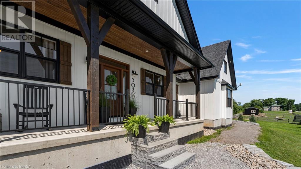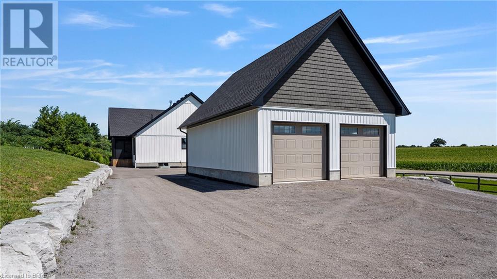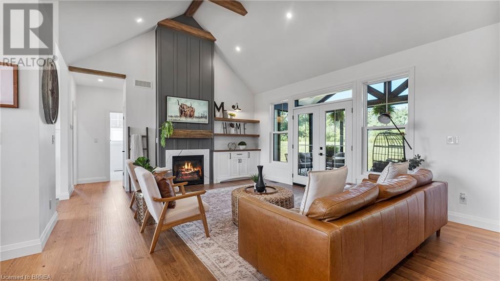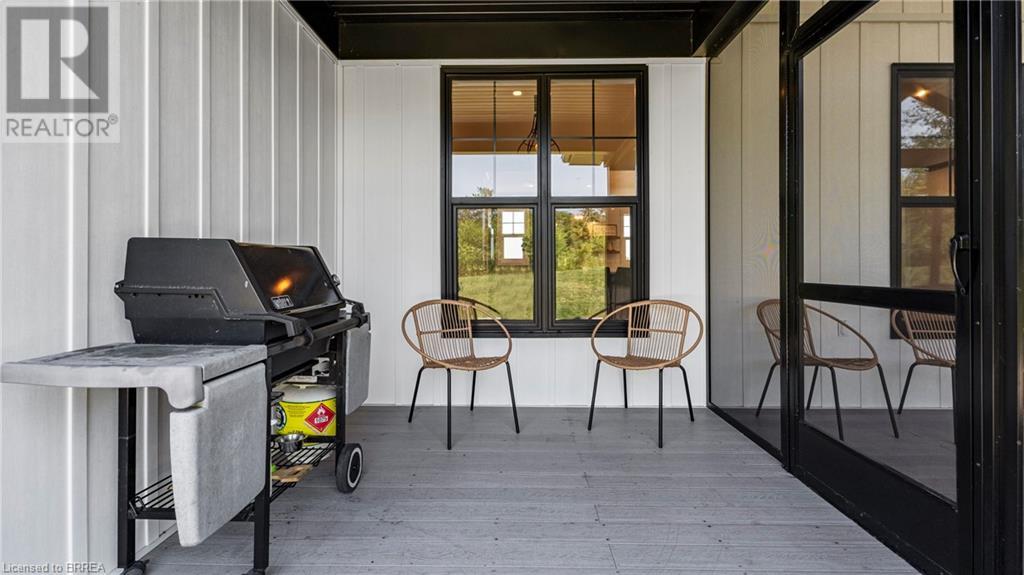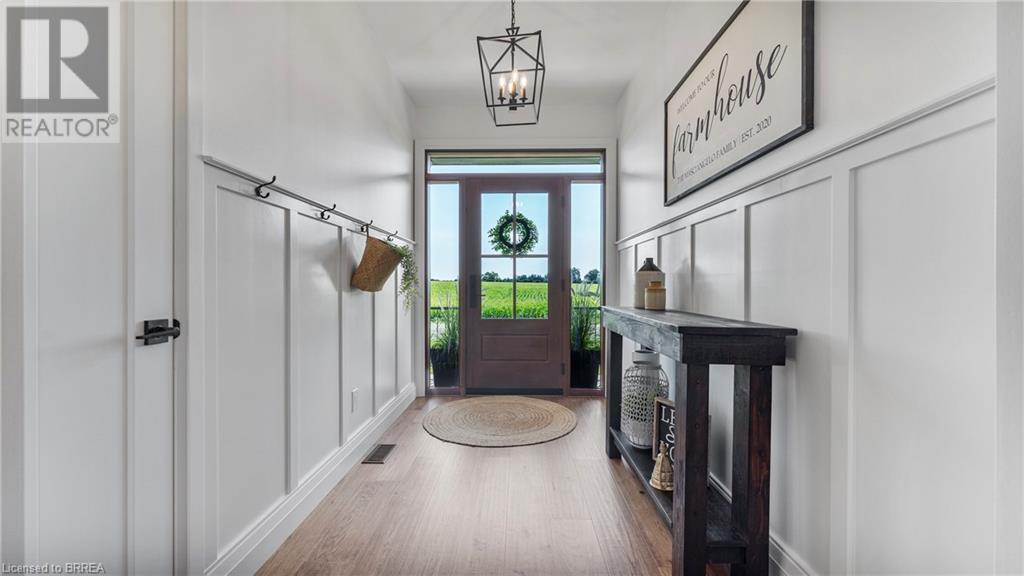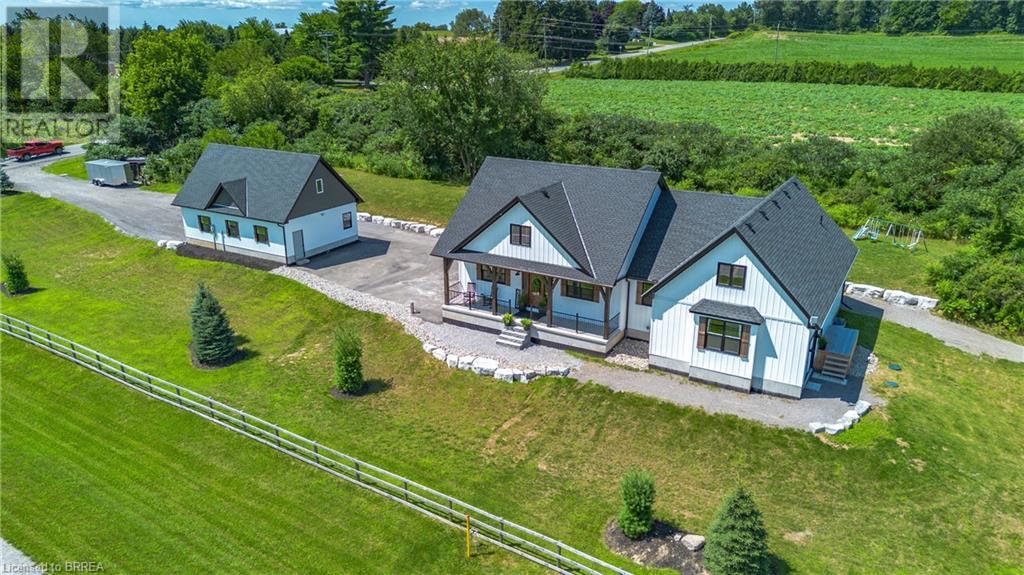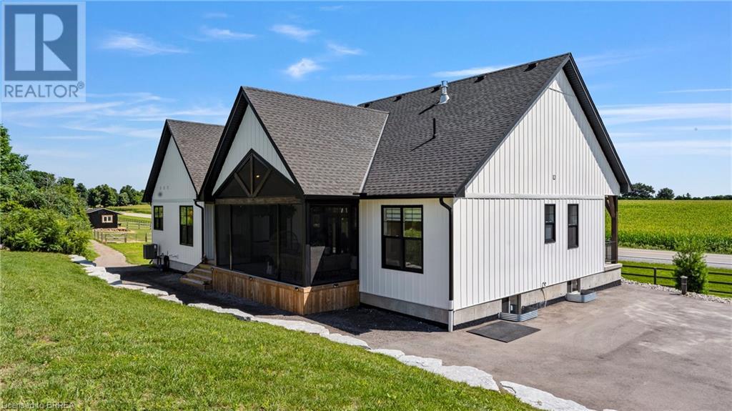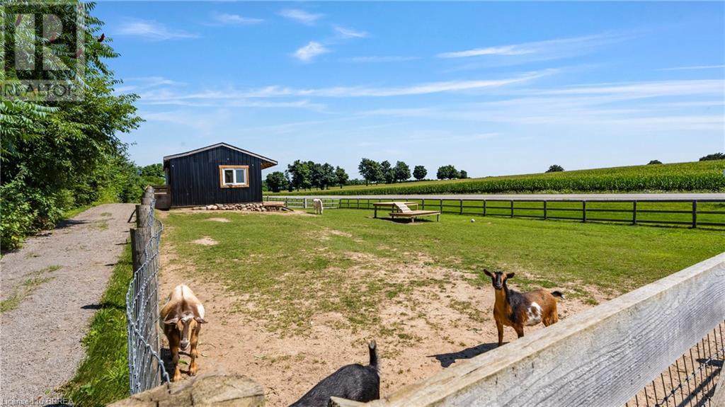 Country Living, guaranteed love at first sight. Welcome to this picture perfect 2210 sqft modern farmhouse w hobby farm, custom built in 2021, surrounded by farm fields, nestled on 1.7 ac. The exterior boasts advanced composite siding w pre cast stone steps embracing the beauty of a welcoming porch, illuminated w recessed lighting. Enter through the 7' custom entry door into the spacious foyer showcasing wainscoting carrying you through to the family/dining rm and kitchen. This marvelous open space debuts 14ft vaulted ceilings w exposed timber beams, gas fireplace w marble surround, hickory eng. hardwood flooring thru out w custom cabinets in the family rm. Elevate your cuisine in this profess designed kitchen incl a 10' island w quartz countertop featuring a viking hd range, blk ss appliances, wall mounted pot filler, One piece shaker cabinets and lighting show off the dovetail maple drawers and pullouts for easy access. Off the family rm features french doors leading to the 20x12 enclosed screened porch for family meals and that morning coffee. Make your way to the south side and find 2 bdrms and a 3 pc bthrm with quartz vanity top and imported porcelain tile. Each bdrm tastefully embellished with built-in custom cabinets and hardwood flooring. On the north wing you'll locate the primary bdrm, laundry rm and additional 4th bdrm. Primary bdrm flaunts 3/4 wall wainscotting, vaulted ceilings w exposed timber, walk-in closet, linen closet and a 5 pc ensuite. The stylish decor of the ensuite captures a poise doorless walk-in shower, freestanding soaker tub, quartz vanity top, modern porcelain tile. 4th bdrm could be converted to an office or in home business w separate entry. M/f laundry rm. Custom built in cubbies in mudroom area. The 16x16 barn is w in a fenced area w ample space for another dwelling or even a pool. Oversized dbl car detached garage (24x36) has a sep workshop and a second floor loft that could be converted into an ADU. (id:55009)