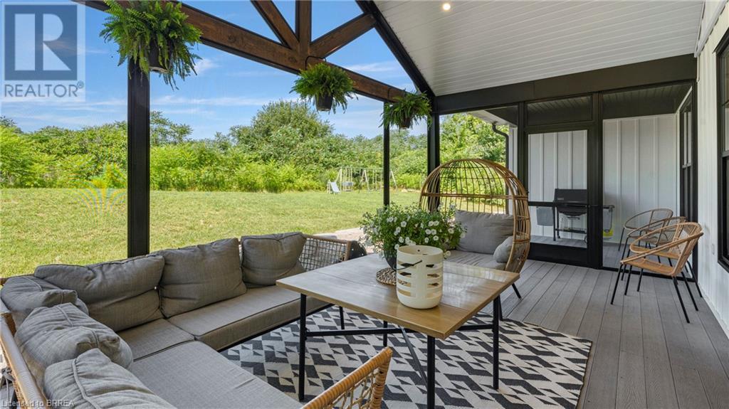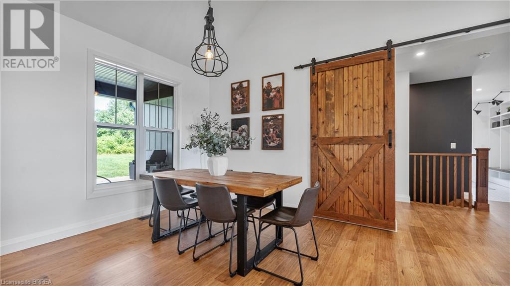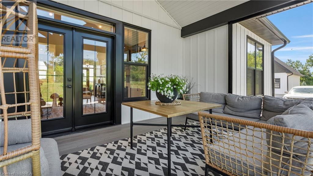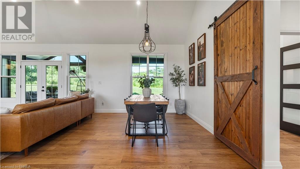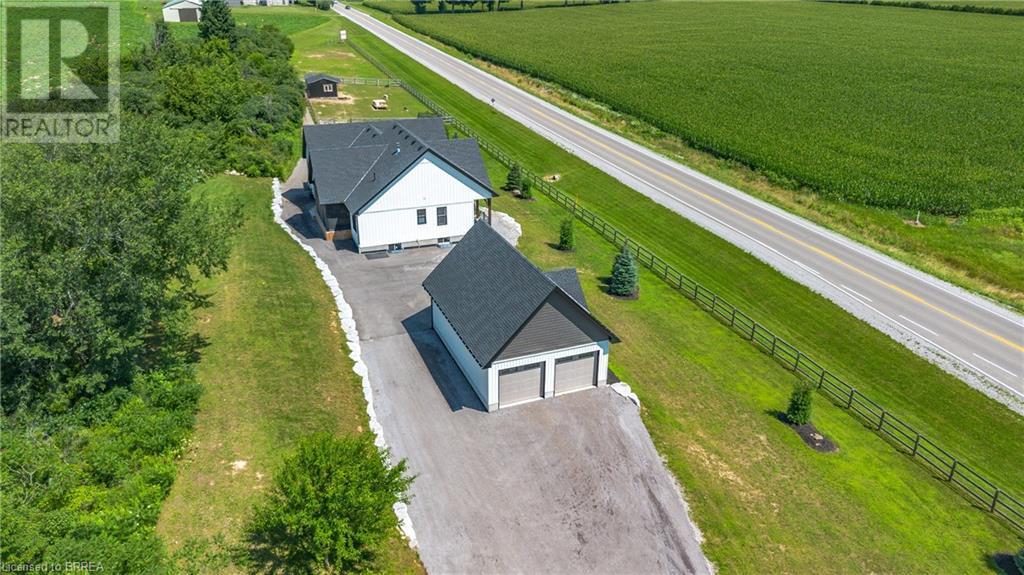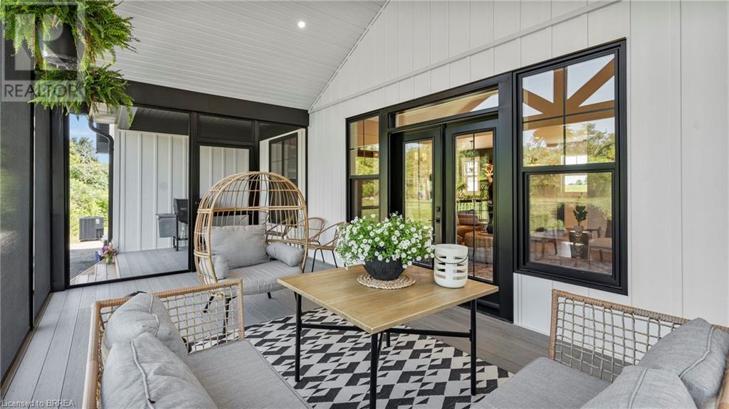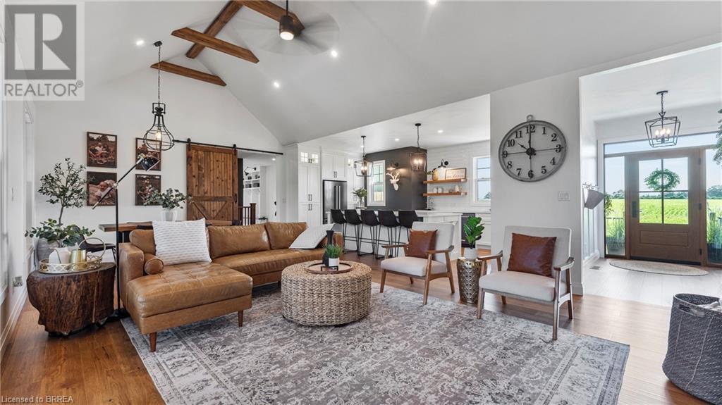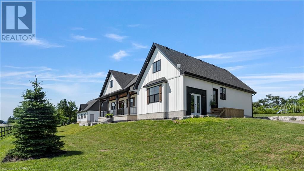 Country Living, guaranteed love at first sight. Welcome to this picture perfect 2210 sqft modern farmhouse w hobby farm, custom built in 2021, surrounded by farm fields, nestled on 1.7 ac. The exterior boasts advanced composite siding w pre cast stone steps embracing the beauty of a welcoming porch, illuminated w recessed lighting. Enter through the 7' custom entry door into the spacious foyer showcasing wainscoting carrying you through to the family/dining rm and kitchen. This marvelous open space debuts 14ft vaulted ceilings w exposed timber beams, gas fireplace w marble surround, hickory eng. hardwood flooring thru out w custom cabinets in the family rm. Elevate your cuisine in this profess designed kitchen incl a 10' island w quartz countertop featuring a viking hd range, blk ss appliances, wall mounted pot filler, One piece shaker cabinets and lighting show off the dovetail maple drawers and pullouts for easy access. Off the family rm features french doors leading to the 20x12 enclosed screened porch for family meals and that morning coffee. Make your way to the south side and find 2 bdrms and a 3 pc bthrm with quartz vanity top and imported porcelain tile. Each bdrm tastefully embellished with built-in custom cabinets and hardwood flooring. On the north wing you'll locate the primary bdrm, laundry rm and additional 4th bdrm. Primary bdrm flaunts 3/4 wall wainscotting, vaulted ceilings w exposed timber, walk-in closet, linen closet and a 5 pc ensuite. The stylish decor of the ensuite captures a poise doorless walk-in shower, freestanding soaker tub, quartz vanity top, modern porcelain tile. 4th bdrm could be converted to an office or in home business w separate entry. M/f laundry rm. Custom built in cubbies in mudroom area. The 16x16 barn is w in a fenced area w ample space for another dwelling or even a pool. Oversized dbl car detached garage (24x36) has a sep workshop and a second floor loft that could be converted into an ADU. (id:55009)
