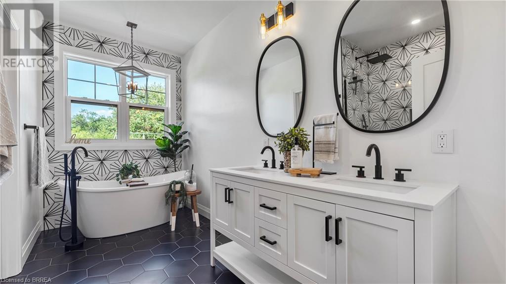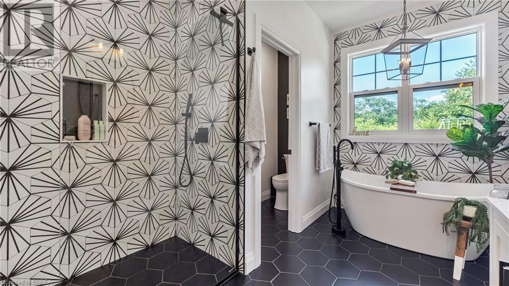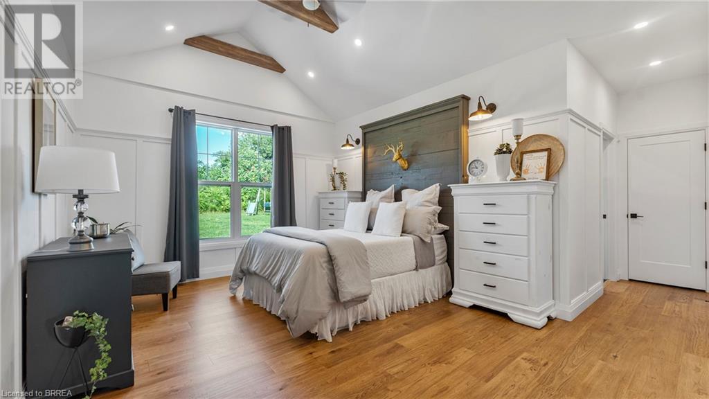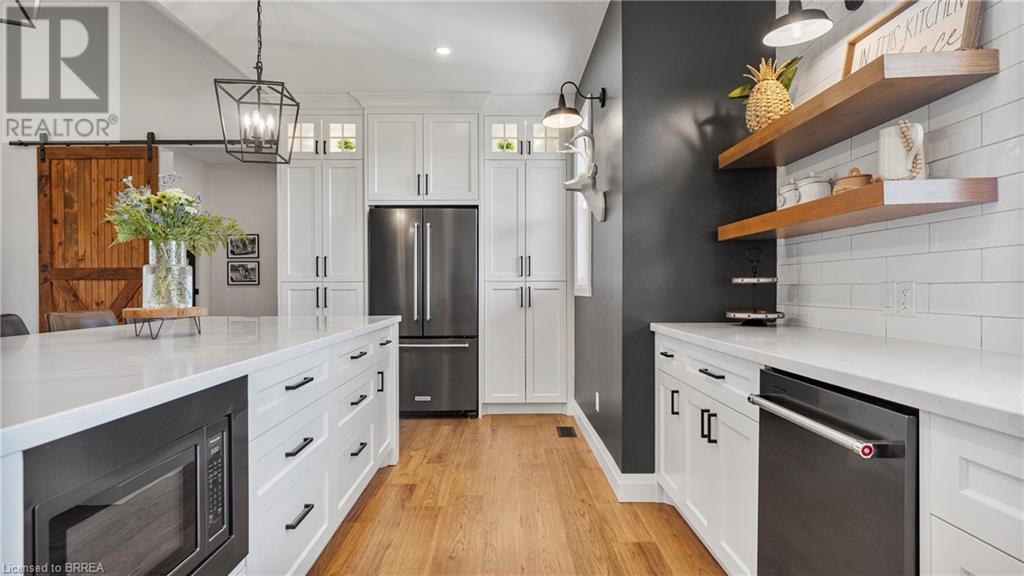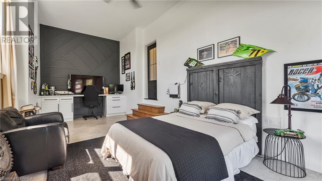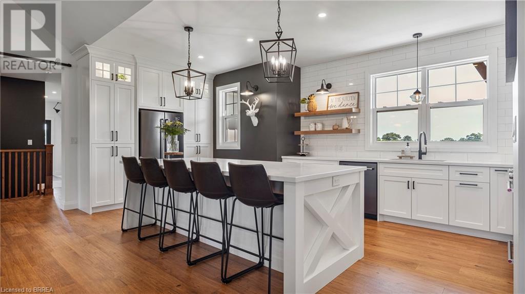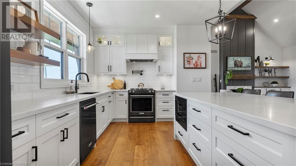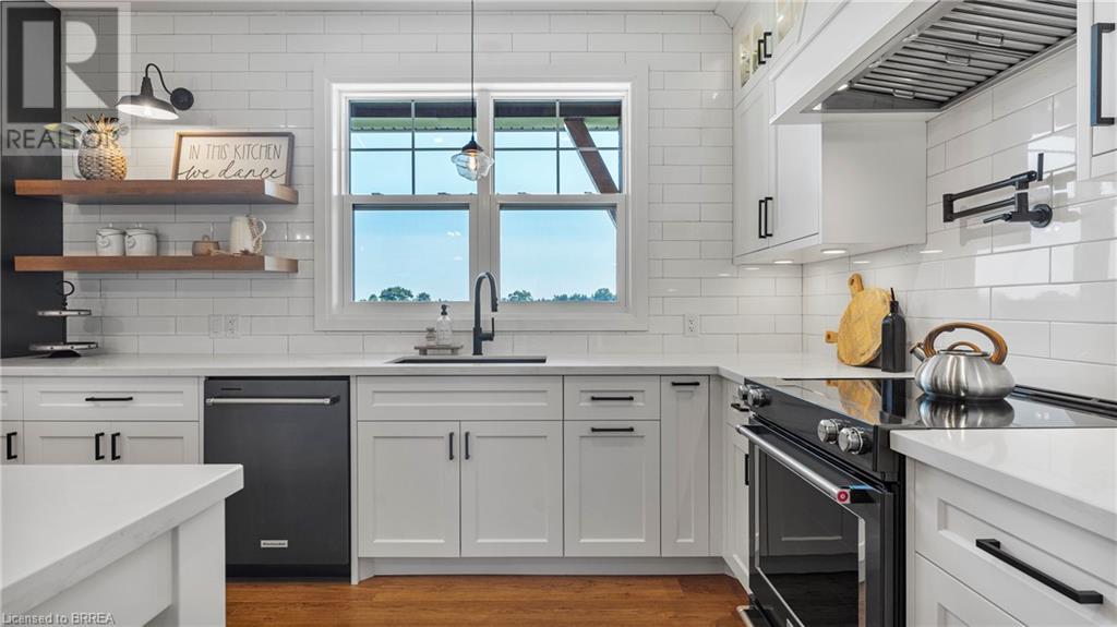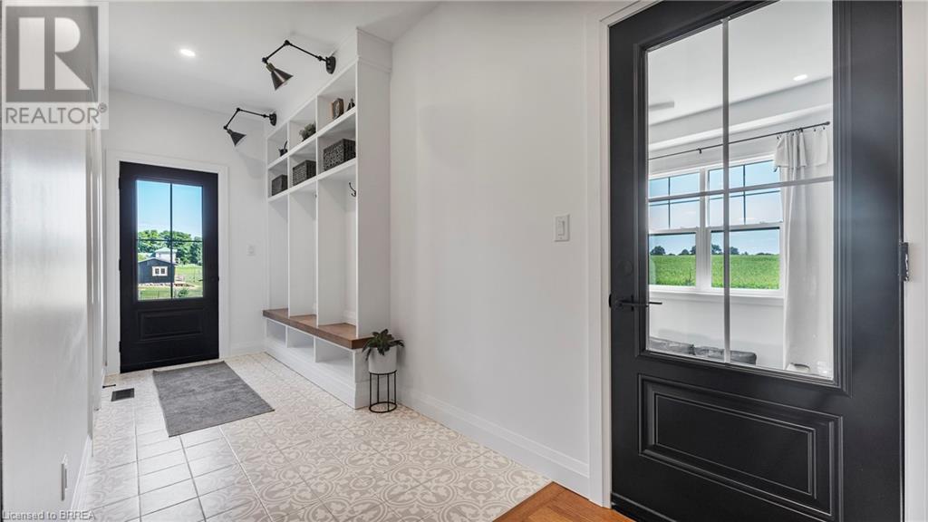 Country Living, guaranteed love at first sight. Welcome to this picture perfect 2210 sqft modern farmhouse w hobby farm, custom built in 2021, surrounded by farm fields, nestled on 1.7 ac. The exterior boasts advanced composite siding w pre cast stone steps embracing the beauty of a welcoming porch, illuminated w recessed lighting. Enter through the 7' custom entry door into the spacious foyer showcasing wainscoting carrying you through to the family/dining rm and kitchen. This marvelous open space debuts 14ft vaulted ceilings w exposed timber beams, gas fireplace w marble surround, hickory eng. hardwood flooring thru out w custom cabinets in the family rm. Elevate your cuisine in this profess designed kitchen incl a 10' island w quartz countertop featuring a viking hd range, blk ss appliances, wall mounted pot filler, One piece shaker cabinets and lighting show off the dovetail maple drawers and pullouts for easy access. Off the family rm features french doors leading to the 20x12 enclosed screened porch for family meals and that morning coffee. Make your way to the south side and find 2 bdrms and a 3 pc bthrm with quartz vanity top and imported porcelain tile. Each bdrm tastefully embellished with built-in custom cabinets and hardwood flooring. On the north wing you'll locate the primary bdrm, laundry rm and additional 4th bdrm. Primary bdrm flaunts 3/4 wall wainscotting, vaulted ceilings w exposed timber, walk-in closet, linen closet and a 5 pc ensuite. The stylish decor of the ensuite captures a poise doorless walk-in shower, freestanding soaker tub, quartz vanity top, modern porcelain tile. 4th bdrm could be converted to an office or in home business w separate entry. M/f laundry rm. Custom built in cubbies in mudroom area. The 16x16 barn is w in a fenced area w ample space for another dwelling or even a pool. Oversized dbl car detached garage (24x36) has a sep workshop and a second floor loft that could be converted into an ADU. (id:55009)
