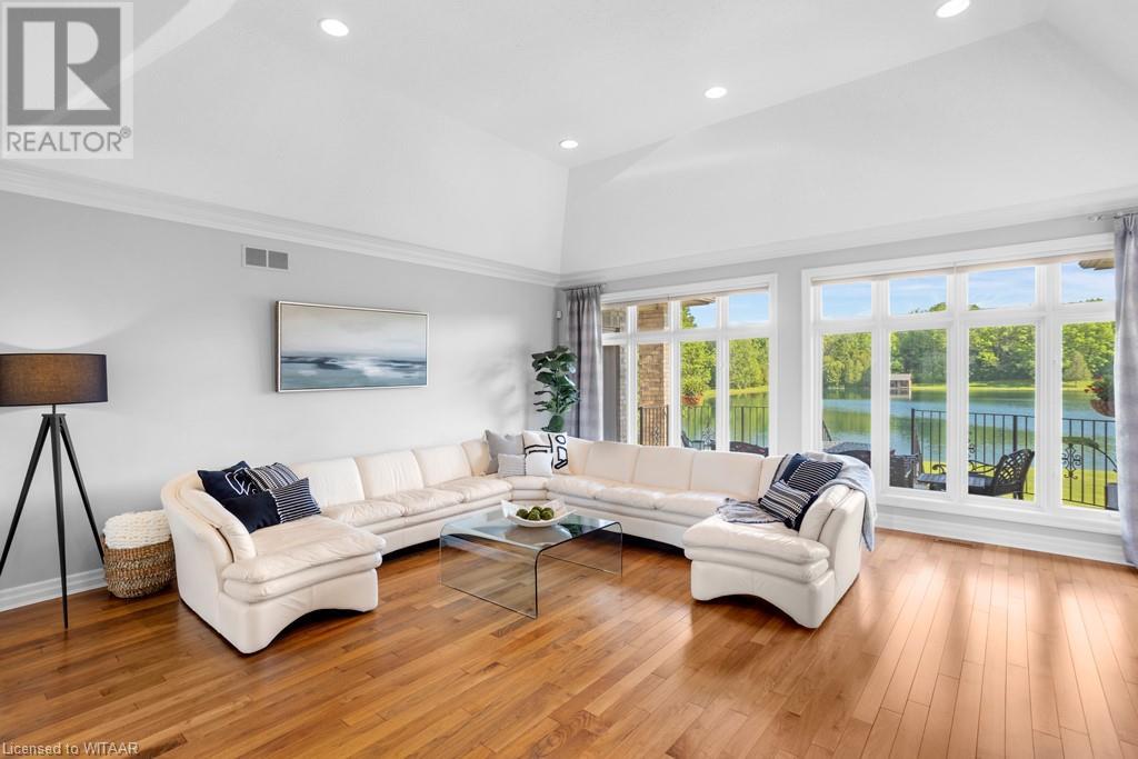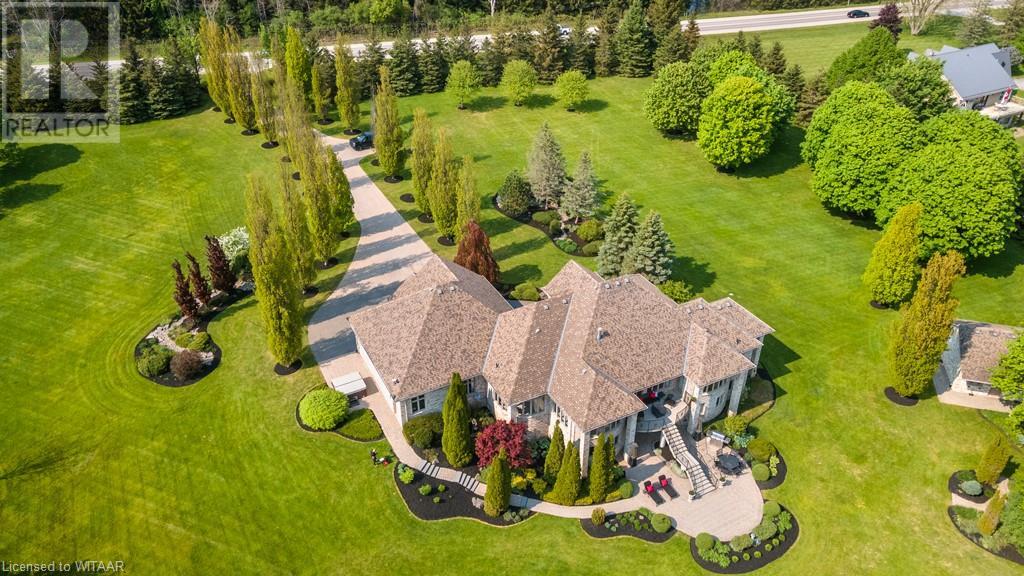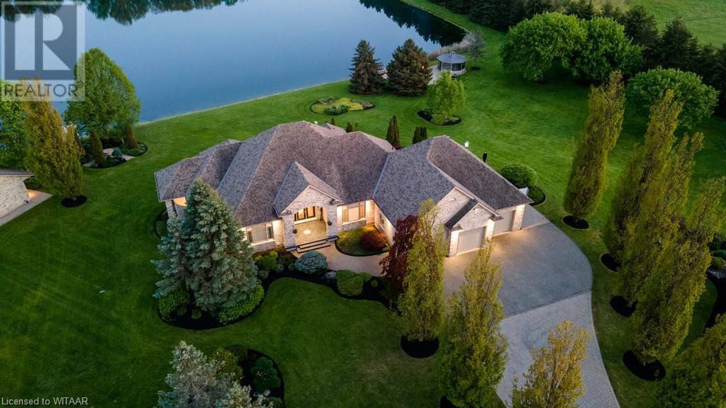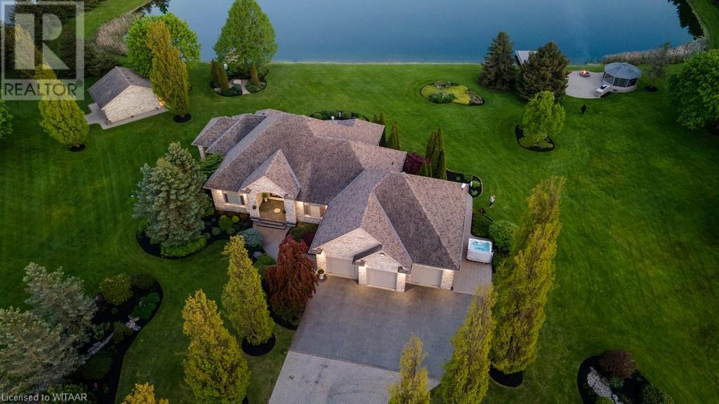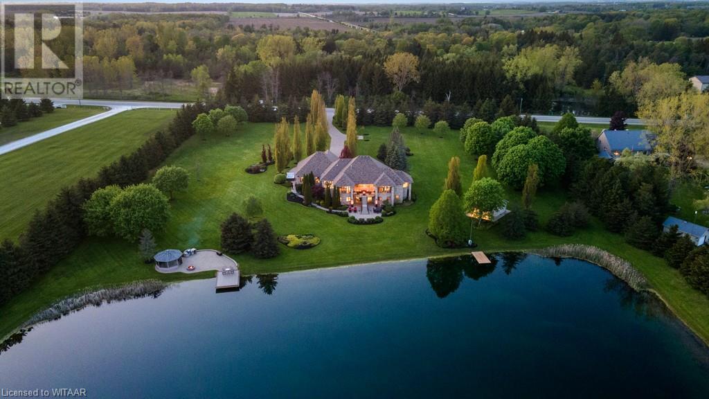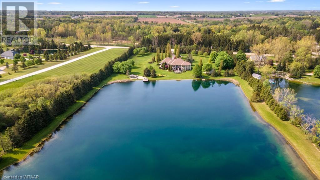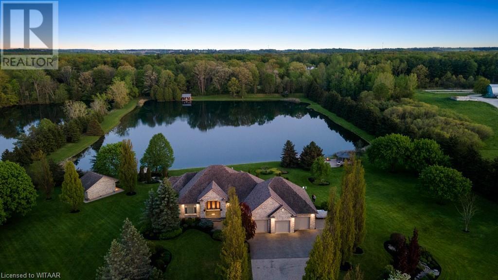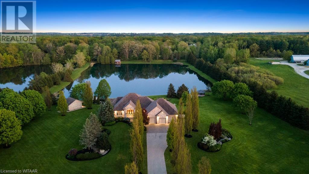 Welcome to this exquisite10 plus acre estate in desirable Dorchester. Opportunity for 3 family property, one sprawling ranch and 2 severed building lots ready for homes to add to this compound. Experience 'The Muskoka's' 15 min away from the City of London and Int'l Airport. Lakeside and forest views, felt through every expansive southern window. Be captivated by the grand back staircase, covered upper deck, & lower covered porch. Relax with a hot tub overlooking the professionally landscaped grounds. Delight in your very own 4.5-acre stocked lake w vibrant koi, trout, & perch. Two docks equipped with bubblers for boating, fishing, & swimming. Other amenities incl a 24x20 detached workshop/garage w heat & bay door, 18x12 storage shed/bunkie/boathouse w bay door, 16ft. 3-season Gazebo, & a firepit area with BBQ. Easy 14-zone irrigation and fertigation system. The 1500sq.ft. 3-car garage featuring in-floor heating, 2pc bath, Custom work benches & cabinets w full size fridge & freezer, epoxy floors, & 80TV is nothing short of awesome. Sonas Surround system, intercom system, 5-camera nighthawk alarm system, & 4 garage door openers provide comfort & security. The concrete driveway, walkway, & front porch are heated, w interlocking finishing the remaining part of the drive. The Lower level features an extravagant custom maple bar w quartz countertops, colour changing glass shelving, & 5 high-quality appliances. Boasting 4 bedrooms & 5 bathrooms, in-floor heating throughout the main house, traditional gas furnace, & central air, this estate is the pinnacle of comfort. The magnificent master suite & ensuite bathroom provide a sanctuary for rejuvenation. An elegant living room w walnut hardwood, double-sided fireplace, crown moulding, & decorative arches overlooks the serene private lake. Additional highlights; large formal dining room, massive kitchen with island and bistro area, & 2 laundry rooms. Transform your family's life by making this remarkable estate your own. (id:55009)