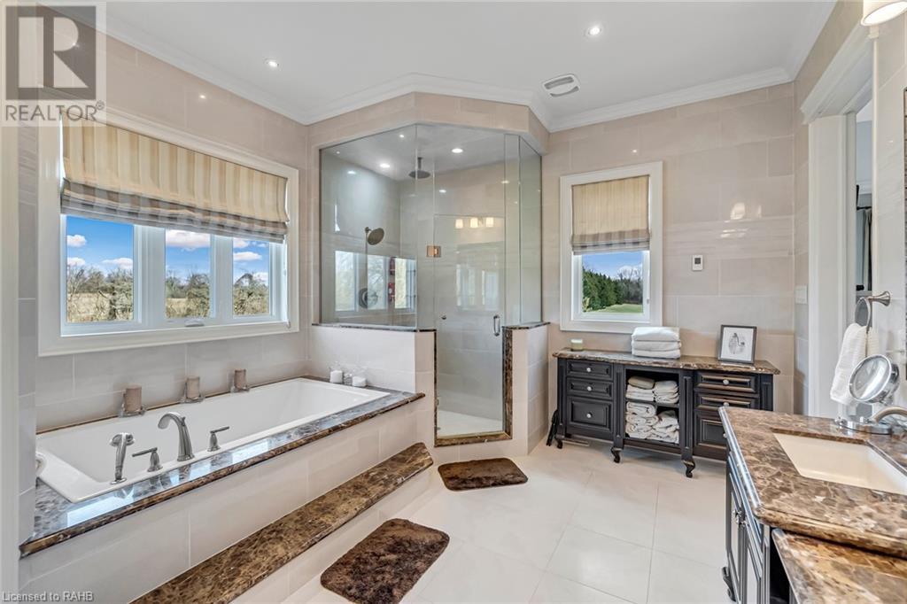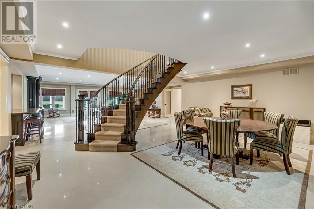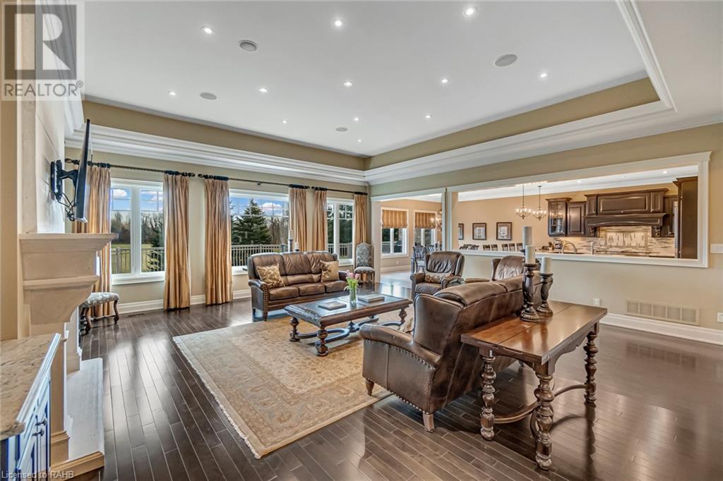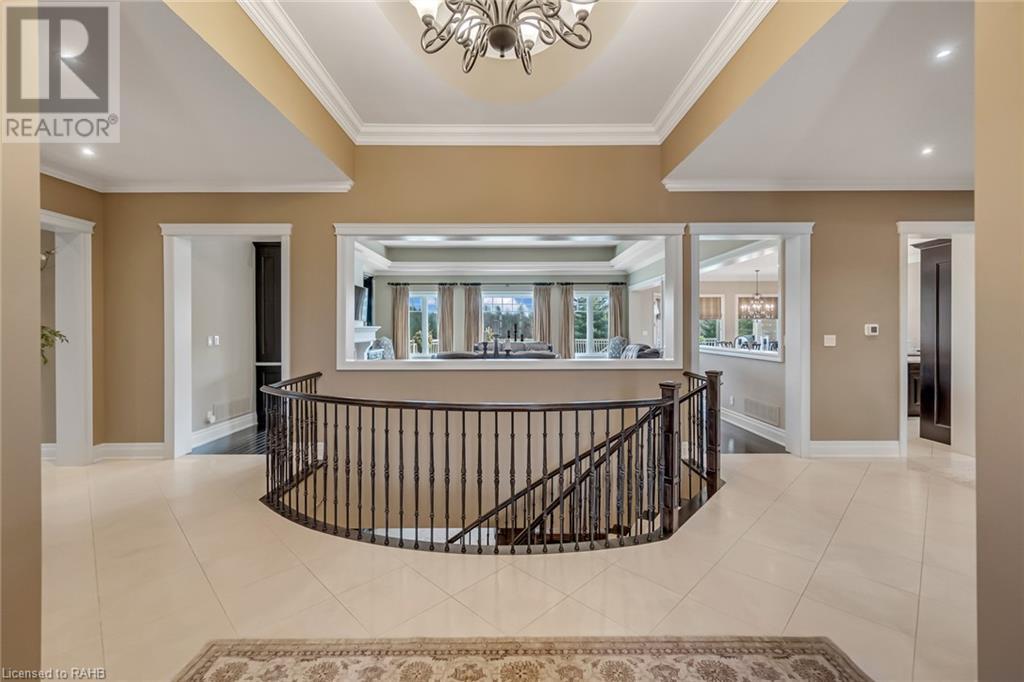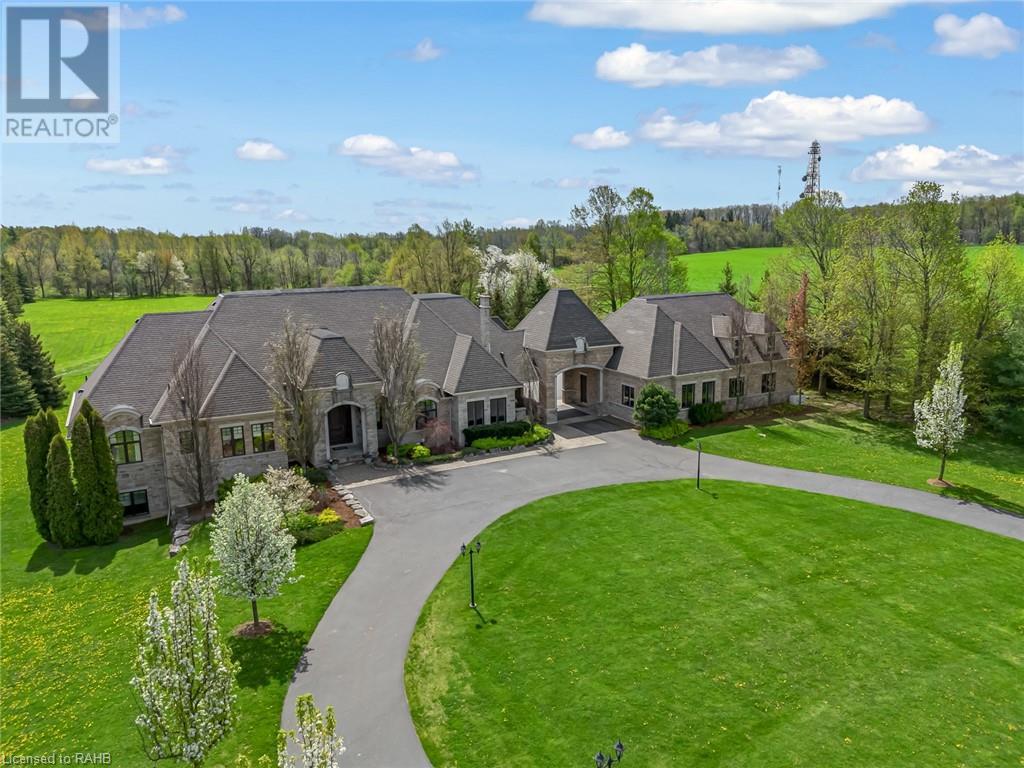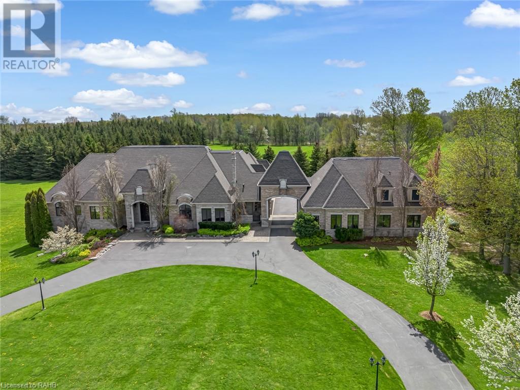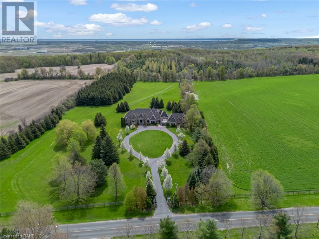 Experience luxury at 5100 14th Side Road in Milton – a home beyond bricks & mortar, a symphony of charm & luxury. Over 8,000 square feet of luxury between the main and lower floors, this isn't just a home; it's your kingdom. On a 28-acre lot with a ravine leading to Rattle Snake Point, this property offers nature's grandeur. The gated driveway extends towards the home leading to the roundabout. It's not just a path; it's your personal red carpet. The foyer welcomes you with a grand dome ceiling, setting a stage not just meant to be lived in, but experienced. The oversized family room is a sanctuary with the cast stone fireplace for cozy evenings. In the dining room you are seated beneath coffered ceilings, elevating every meal. The kitchen, a foodie's playground, boasts a Viking stove, Miele dishwasher, and a large island. Move to the 6 generously sized bedrooms, ensuring a slice of comfort for all. Step onto the terrace, an extension of your living space, perfect for morning coffee or breathtaking evening sunsets. The basement surprises with heated flooring, a custom wine room, and dual staircases for a grand entrance. The walkout exit to the backyard seamlessly connects indoors and outdoors. The security alarm system with cameras ensures peace of mind. The 6-car garage, 2 attached and 4 separated by a carport, caters to automotive enthusiasts with space for a car lift. Make memories at 5100 14th Side Road – where every room is a chapter waiting to be written. (id:55009)