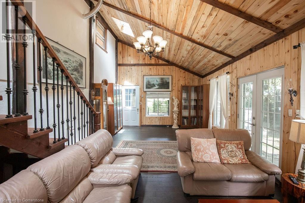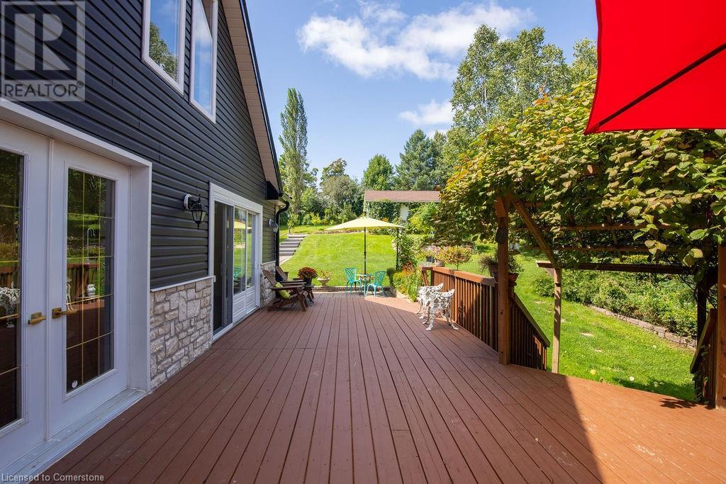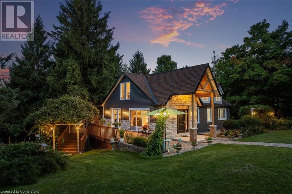 Opportunity to own 7.18 acres of seclusion, a rural sanctuary with City of Guelph conveniences-Private gated entry. Updated paved parking & turnaround parking for 20 vehicles- oversized double detached garage/workshop- space for RVs & Trailer parking-Country views, stunning botanical gardens,water features-Grape farm to make 100 bottles of wine & 1 mile walking trails through thick forest'-Impressive curb appeal- Custom 2 Storey Stone Façade,covered porch & wraparound decks,2 ponds, gazebos, walking trails, and outdoor Gazebo/BBQ area-Welcoming foyer leads to formal living room w/gas fireplace with Stone Surround-Kitchen with Stone Counters & Breakfast Bar boasts a Formal Dining Room overlooking 2 storey Family Room, soaring Vault Ceiling, remote control Skylights, wood stairs- Garden Doors to patio- Main Floor Principal Bedroom, Updated Ensuite Bathroom, Den/ Office with Additional 4 pce Ensuite Bath plus a Cozy Sunroom. 2nd Storey boasts 2 more Bedrooms- a large office and bedroom space with views of the Gardens & Ponds, 4th bedroom has Walk in closet-3 pce Bath-Claw foot tub-Fully finished lower level for extra living space with double door walk out- Thoughtful Bi level is above grade thru out with in-law suite potential for the extended family, +1 bedroom & storage-Newer Smart Home HVAC System with Energy Certification- Rare chance to own a piece of rural property at the City’s edge-“Work from Home” goals can be Reality-If you need large vehicle parking & Storage, this is the perfect place (id:55009)