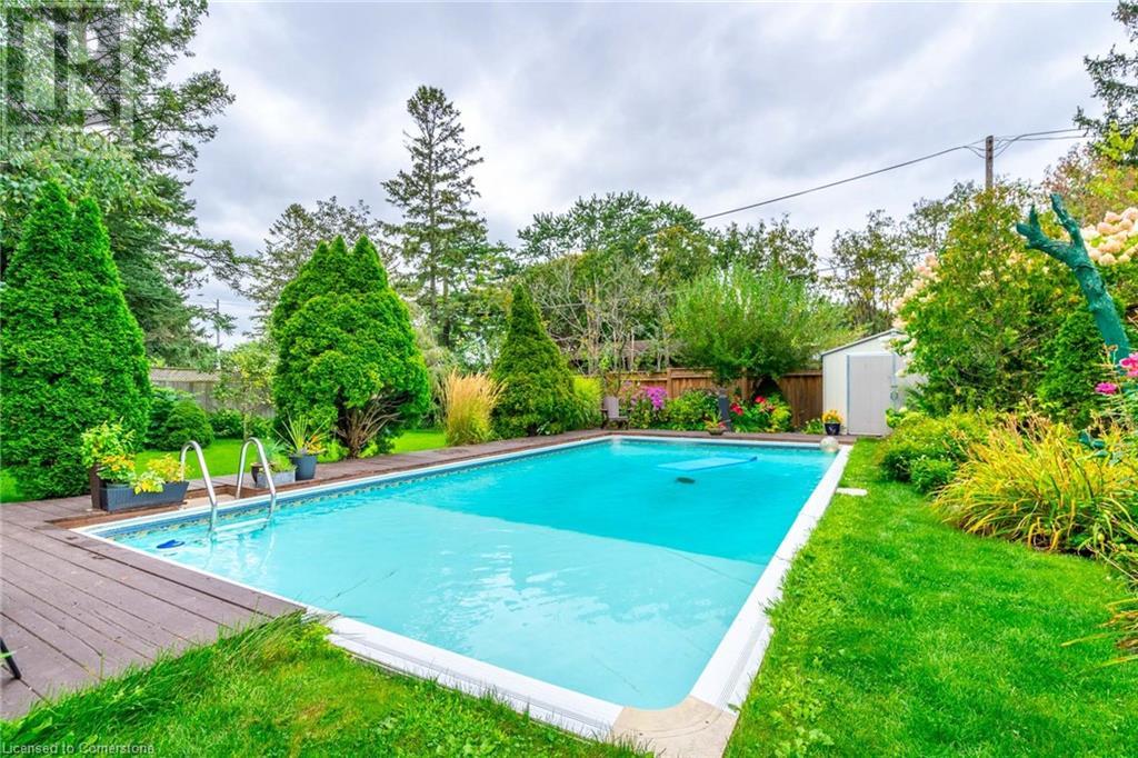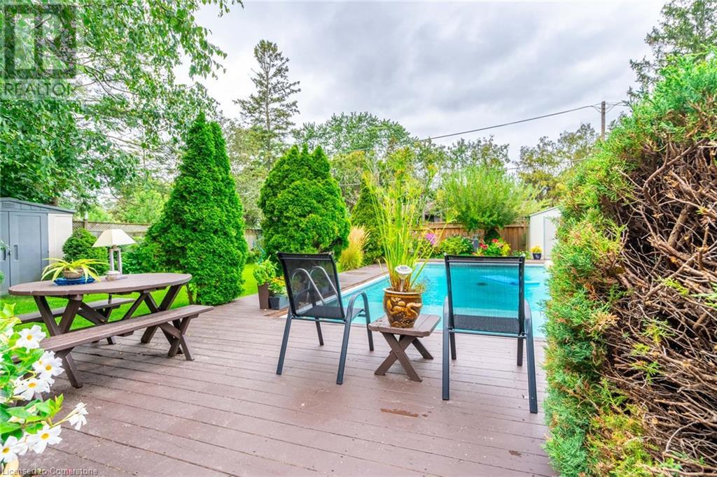 What a wonderful family home in the sought after Elizabeth Gardens! This three level side split is situated on a premium 60' x 120' private lot with a gorgeous inground pool. This home features a large living room with a huge bay window that floods the living room with natural light. The cozy kitchen with white and grey cabinetry has large windows and seating for two at the breakfast bar. The upper level showcases three good size bedrooms along with a four-piece bathroom. The finished lower level has over-sized windows which allow for natural light to stream in. A large utility room, laundry and ample storage are in the crawl space. This lower level also has a walk up to the fully fenced/hedged backyard oasis. Great location just blocks from the lake and steps to great schools, parks, shopping, and dining and minutes to highways, the GO and endless other great amenities. Pride of ownership is evident throughout this meticulously maintained home. Hurry before you're TOO LATE*! *REG TM. RSA. (id:55009)