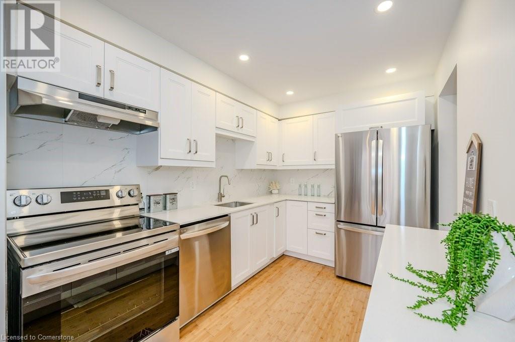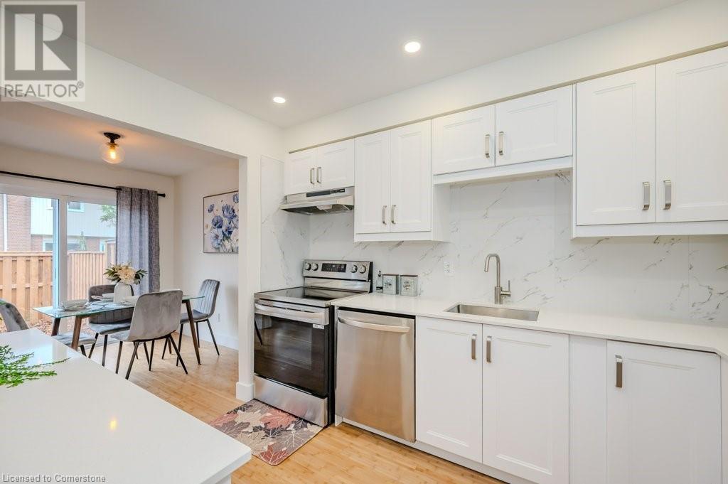$463.81 MonthlyWelcome Home ! A Recently Renovated two-story 4-bedroom townhouse tucked away on a quiet cul-de-sac in the heart of South East Burlington. Just steps away from the serene lakefront parks, top-tier schools, shopping & convenient bus route's + Coming soon a Brand New Rec Centre. Some of The Major updates are a new Gourmet kitchen & S/S Appliances, beautiful main floor flooring+ upper hallway ,Fully Professionally Painted House,New 4 Piece Main Bathroom. New Carpet in the Bedrooms, New Windows, New exterior doors and Patio sliding Door, New Fence. This is great home for anyone looking to downsize and first time buyers looking for Great Value in Burlington. Great management company with very low fee's ! Come view this home and make it Yours , OFFERS ANYTIME (id:55009)