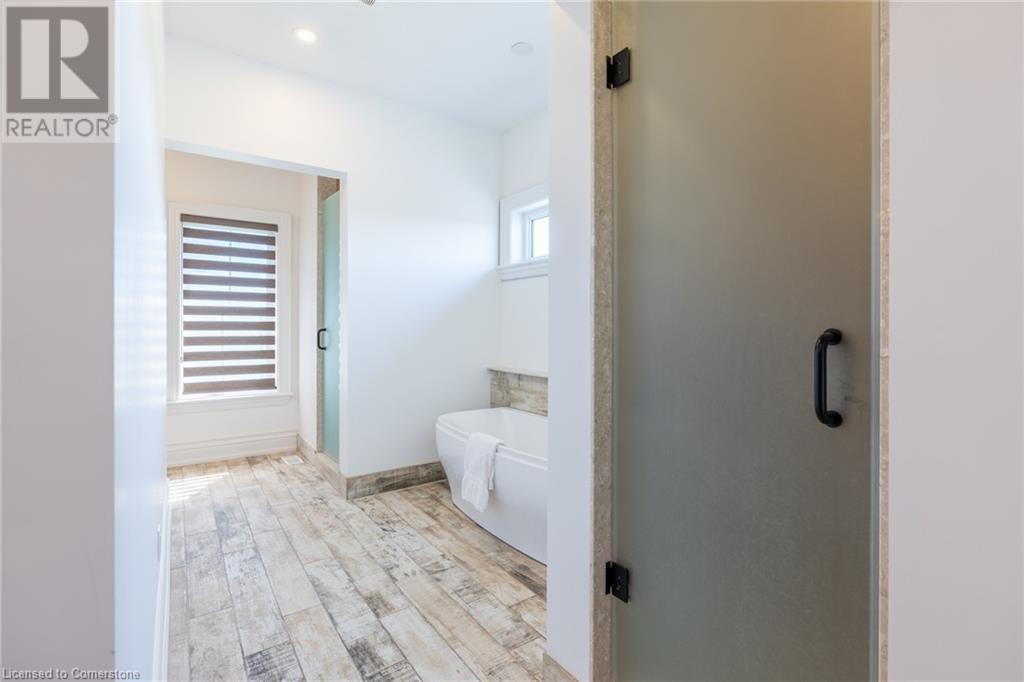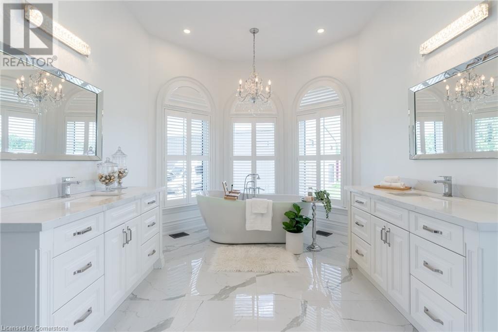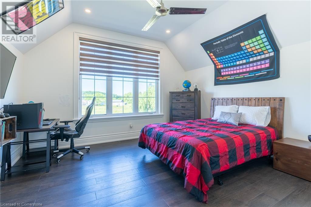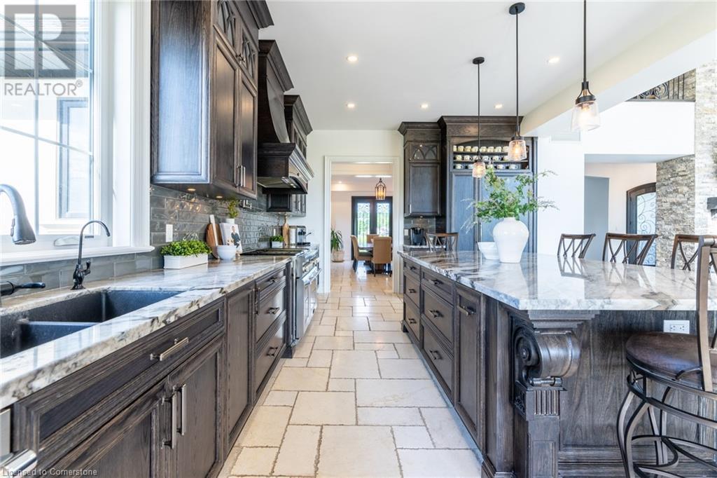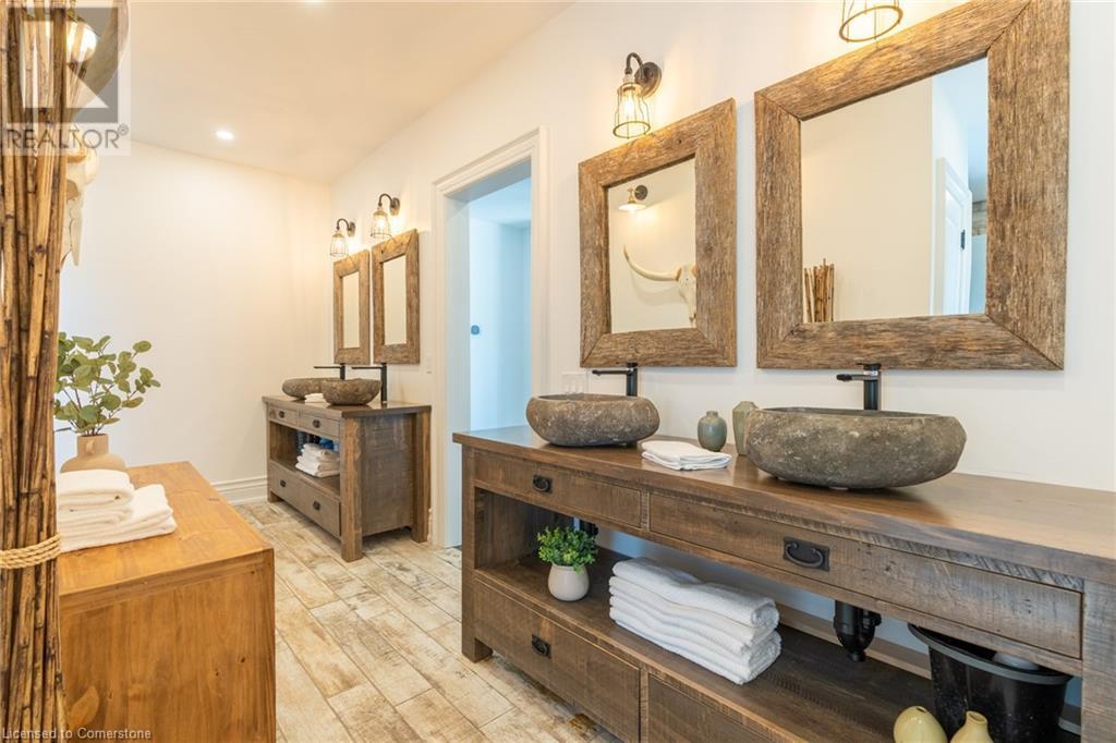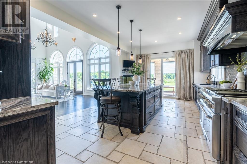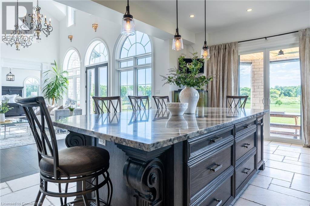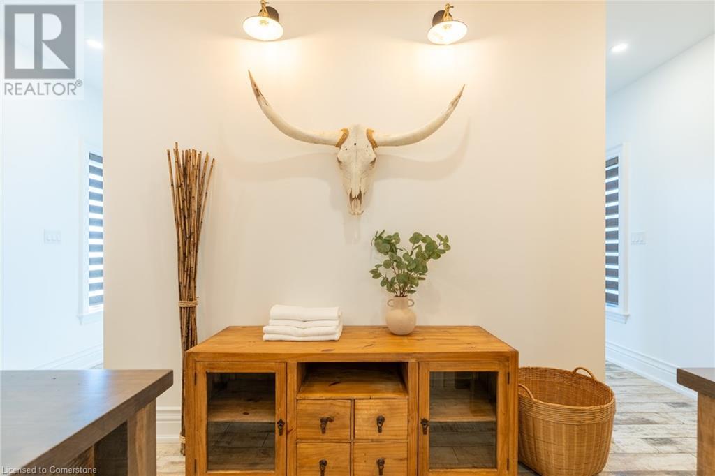 Welcome to your idyllic retreat at this stunning 10-acre property conveniently located just 4 minutes from the QEW highway making country living easier then ever! Outdoor enthusiasts will appreciate being just a 5-minute walk from the Bruce Trail and having award-winning wineries less than a kilometer away. The 2400 sqft insulated steel outbuilding with hydro provides ample space for recreational vehicle storage or hobbies. Walking in you'll be in awe of the two storey living room with stunning windows that flood the main floor with natural light and the impressive stone fireplace draws your eye up to the open second level. Indulge in the main level principal suite featuring a dressing room and ensuite with luxurious marble floors while upstairs, the 4 bedrooms share a remarkable 9-piece bathroom complete with 2 showers, 2 water closets, and 2 double vanities, ideal for large families or guests. A concrete balcony off the bedroom boasts expansive views of the picturesque surroundings. Enjoy the convenience of a geothermal heating system with 3-zone temperature control, ensuring comfort and efficiency year-round. The unspoiled lower level with a walk-up entrance is roughed in for a kitchen, 5-piece bathroom, laundry, and a 2-piece powder room, offering endless possibilities for customization. This property seamlessly blends luxury, functionality, and natural beauty, offering a serene retreat with modern conveniences and endless potential for your dream lifestyle. (id:55009)